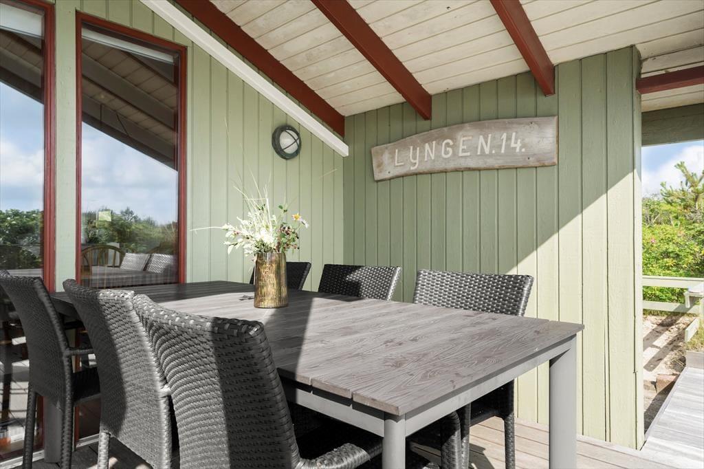 Sie wohnen friedvoll in der schönen Natur am Ende der Sackgasse Lyngen. Innerhalb von ungefähr fünf Minuten schlendern Sie zum anderen Ende des Weges, von wo Sie weiter über die Dünen bis an den Søndervig Strand spazieren. Am Strand können Sie nach Herzenslust baden, mit Ihren Kindern im Sand spielen und zu ausgedehnten Strandspaziergängen aufbrechen. Ein wenig weiter nördlich erwartet Sie der Ortskern des Badeortes Søndervig, in die mehrere Geschäfte und Lokalitäten zum Bummeln und Verweilen einladen. Der Ort bietet darüber hinaus verschiedenste Aktivitätsmöglichkeiten, beispielsweise in Form einer Minigolfanlage, eines Badelands, eines Golfplatzes und unterhaltsamer Segway-Touren. Mit Ihren eigenen oder mit gemieteten Fahrrädern brechen Sie zu schönen Radtouren durch die herrliche Umgebung auf, die für ihre guten Fahrradrouten bekannt ist. Empfehlenswert sind in diesem Zusammenhang Radtouren gen Süden, wo Sie auf der Nehrung Holmsland Klit unter anderem der Fischereihafenort Hvide Sande und der Leuchtturm Lyngvig Fyr erwarten.
