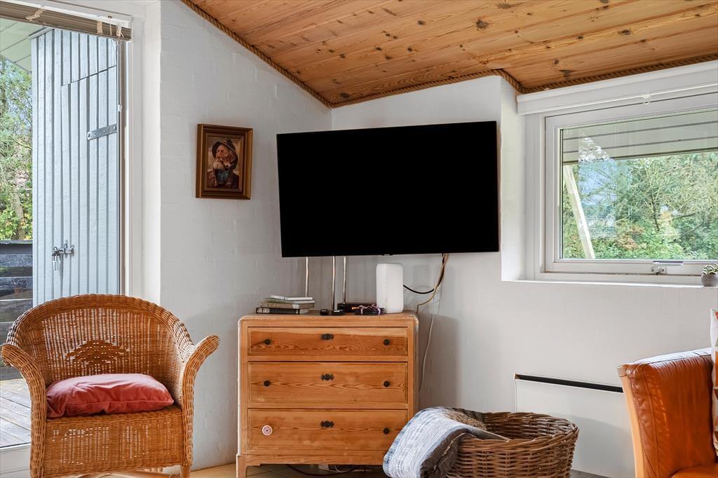 Schon im Eingang werdet ihr von einer hellen und einladenden Einrichtung empfangen, in der Wohnzimmer und Küche zu einer gemütlichen Einheit verschmelzen. Der offene Wohnbereich macht das Beisammensein leicht – ob ihr gemeinsam in der Küche kocht oder euch auf dem Sofa entspannt und dabei durch die großen Fenster den Blick ins Freie genießt. Selbst im Haus habt ihr das Gefühl, mitten in der Natur zu verweilen. Das Ferienhaus ist sehr gepflegt und dieses spiegelt sich deutlich in der angenehmen Atmosphäre wider. Hier ist zu Ruhe und Ferienstimmung eingeladen.