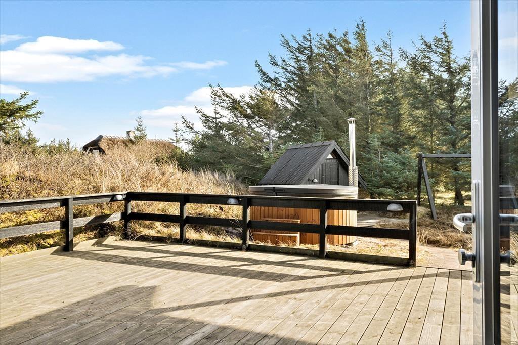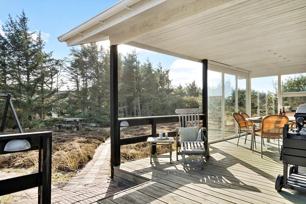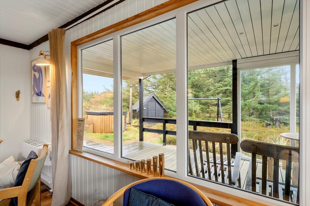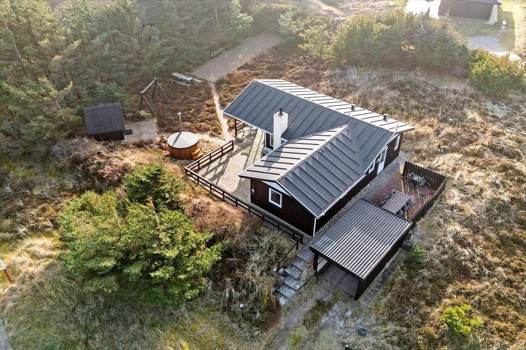 Das Sommerhaus liegt völlig ungestört am Ende einer gesperrten Straße und ist somit der perfekte Ort, um neue Kraft zu tanken und völlige Freiheit zu genießen. Wenn Sie auf einen Spaziergang Lust haben, sind es nur wenige hundert Meter bis zum Strand von Søndervig und der Nordsee. Wenn Sie Fahrräder mitgebracht oder gemietet haben, können Sie sich auf die Erkundung der kleinen Straßen und Radwege auf dem gesamten Holmsland Klit freuen. Auch Surfen gehört zu den beliebten Aktivitäten in unserer Gegeng, und wenn das Wetter zu Indoor-Spaß einlädt, gibt es in Søndervig einen großen Wasserpark.