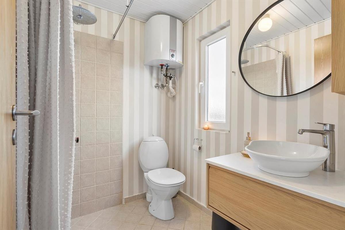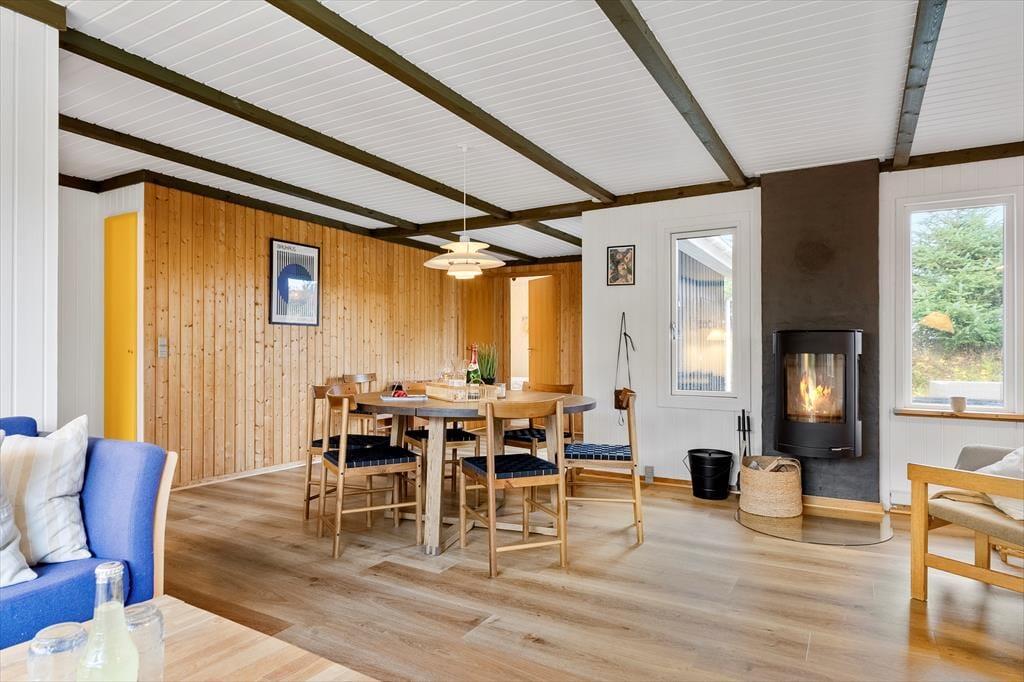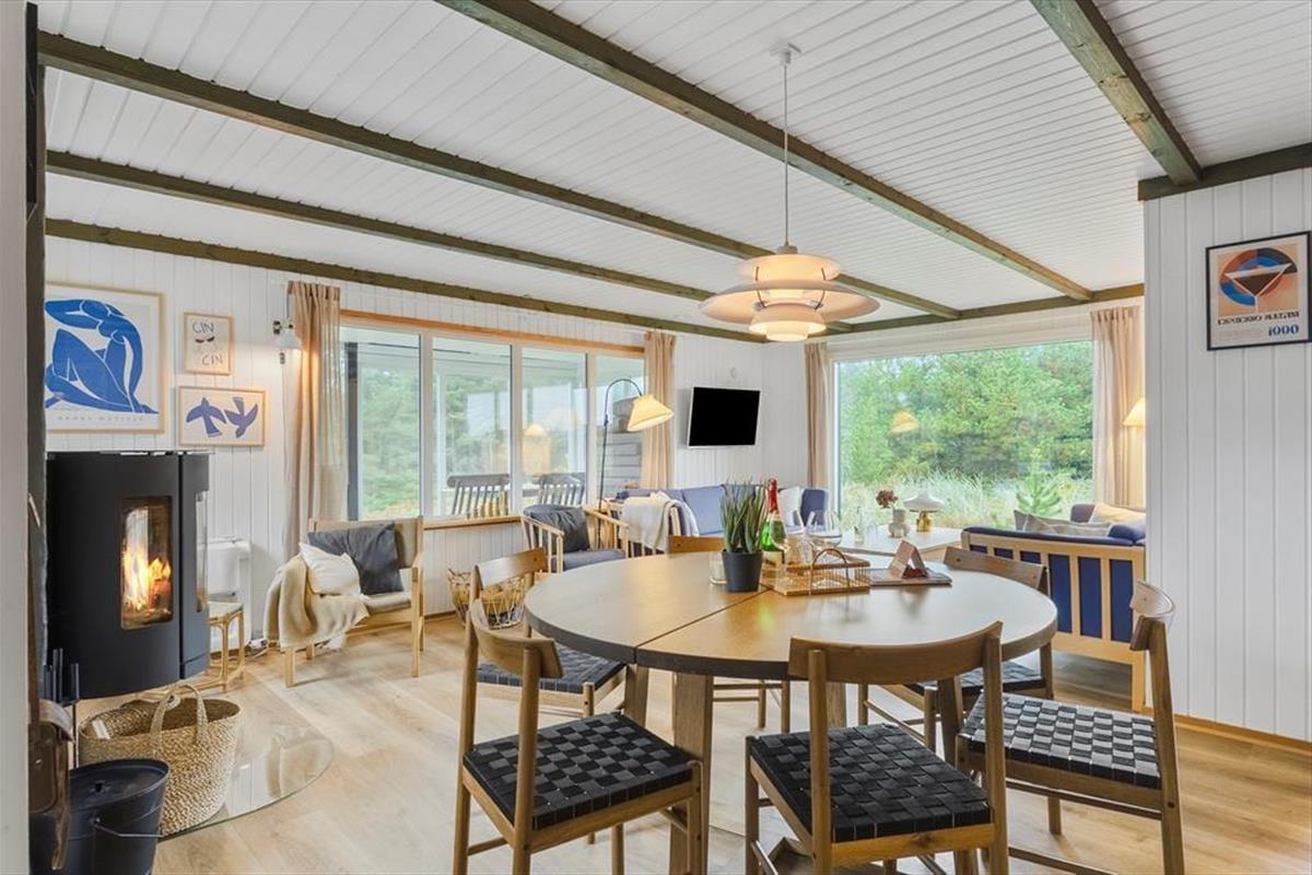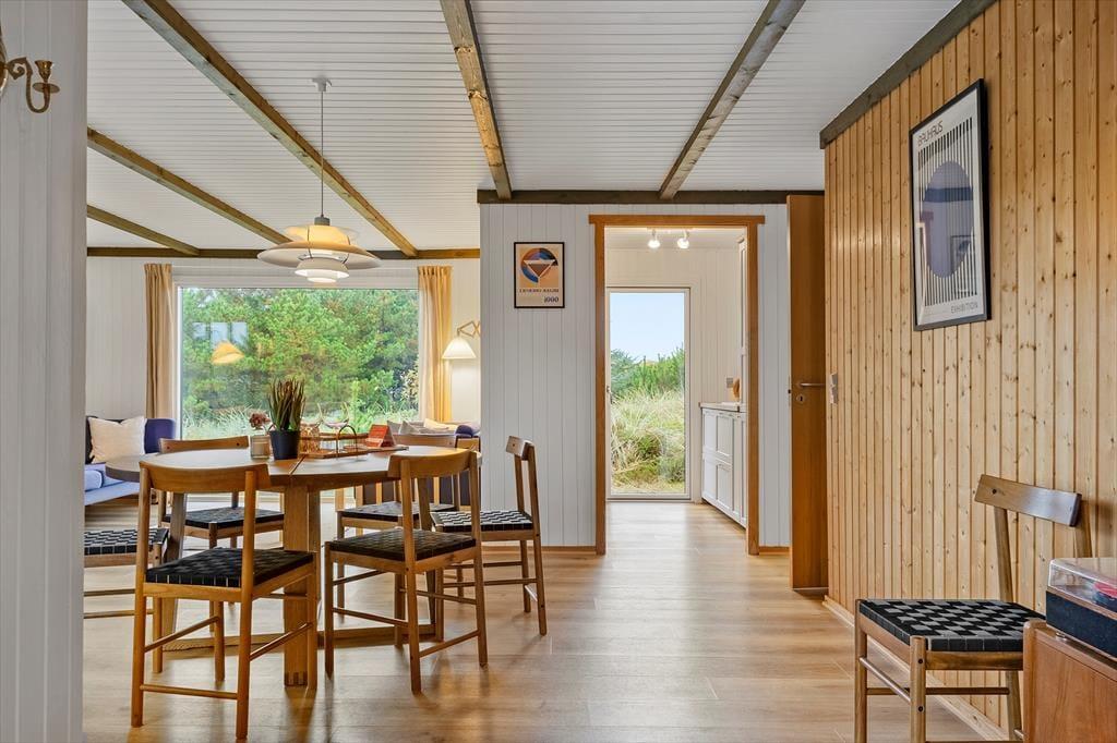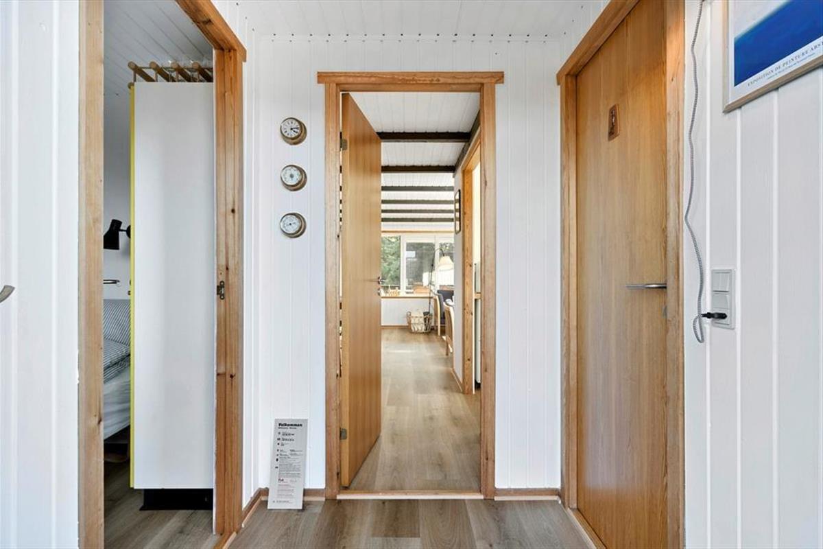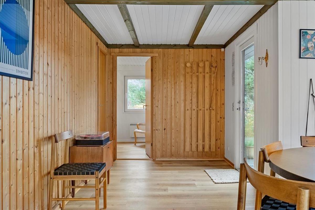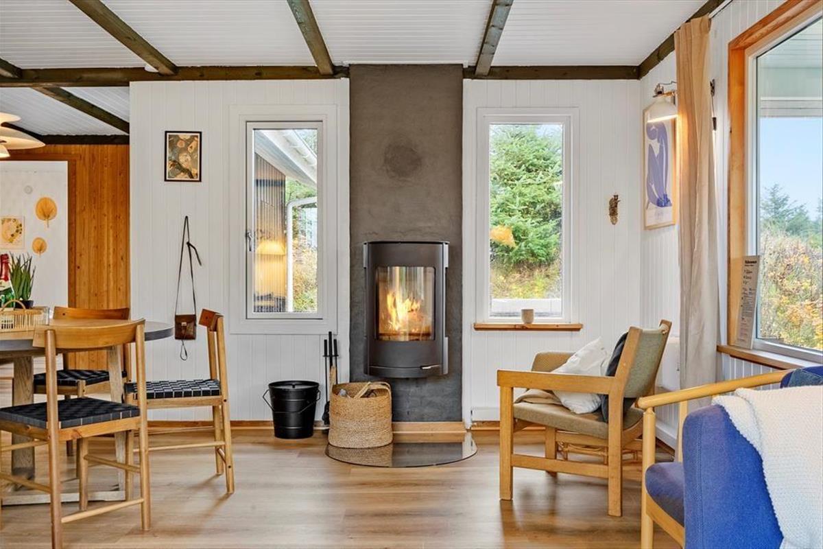 Das Sommerhaus, ein klassisches Sommerhaus aus Holz aus dem Jahre 1977, wurde noch nie zuvor zur Vermietung genutzt, und es ist deutlich zu erkennen, dass die Eigentümer sich gut um das Haus gekümmert haben. Eine gründliche Renovierung im Jahre 2023 umfasst neu-gestrichene Wände und Decken. Dazu sorgen neue Möbel dafür, dass Sie sich im Haus wohlfühlen. In der neuen Küche können Sie sich auf das Kochen köstlicher Speisen freuen. Dank der offenen Verbindung zum Wohnzimmer müssen Sie auch dann nicht auf das gemütliche Gespräch verzichten, wenn in den Töpfen gerührt werden muss. Im Wohnzimmer gibt es sowohl einen Holzofen als auch eine Wärmepumpe, falls Sie an kühlen Tagen und Abenden zusätzliche Wärme benötigen. Drei gute Schlafzimmer befinden sich in der Nordecke vom Haus, und vom Eingang aus haben Sie Zugang zum schönen Duschbad des Hauses.