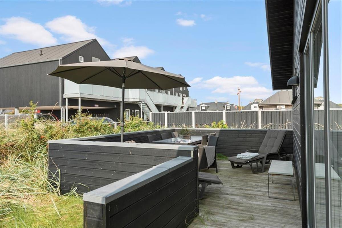 Hinter deinem Ferienhaus befindet sich ein Holzzaun mit einem Tor, durch das du nach wenigen Metern das Zentrum des beliebten Badeortes erreichst. Trotz der ruhigen Lage trennen dich beispielsweise nur ein paar Schritte vom sogenannten Sandpladsen, dem Sandplatz, auf dem in der Sommersaison regelmäßig Aktivitäten angeboten werden. Die nächstgelegenen Lokalitäten liegen ebenfalls direkt um die Ecke. Deine täglichen Einkäufe erledigst du problemlos zu Fuß. Mit einer Entfernung von nur 300 Metern zu Strand und Nordsee spricht nichts gegen gleich mehrere tägliche Bäder in den Wellen. Abends solltest du mit deinen Lieben an den Strand schlendern und dort die herrlichen Sonnenuntergänge beobachten. In Søndervig sorgen außerdem ein Badeland, ein Golfplatz und das alljährlich stattfindende Sandskulpturenfestival für Unterhaltung und Abwechslung bei Groß und Klein. Die wunderschöne Natur ringsum bietet beste Bedingungen für lange Spaziergänge, zum Surfen, zum Angeln und für diverse andere schöne Urlaubsaktivitäten.