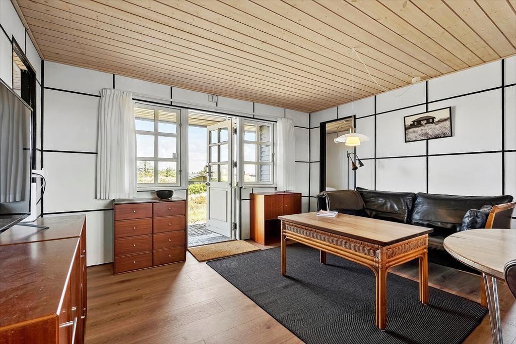 Im Gegensatz zu heute befanden sich in den 1930er Jahren nur wenige Ferienhäuser in dem hügeligen Dünengebiet. Die Aussicht hat sich daher grundlegend verändert. Dennoch erinnert vieles an das alte Ferienhaus: nah an der schwarzen Holzfassade triffst du noch immer auf eine alte Wasserpumpe und im Wohnraum ziehen die charakteristischen Wände damaliger Zeit deinen Blick auf sich. Das Haus wurde selbstverständlich mit einer zeitgemäßen Isolierung versehen. Dennoch genießt du im Inneren bis heute die Klänge der Natur - den auf das Dach prasselnden Regen und den Wind, der durch den Strandhafer fegt. Die Verbundenheit mit der Natur wurde glücklicherweise bewahrt und verleiht deinem Aufenthalt das gewisse Etwas. In früheren Zeiten beherbergten die beiden Eigentümerinnen bis zu 17 übernachtende Familienmitglieder im Haus. Die Raumaufteilung wurde inzwischen an den Standard unserer heutigen Zeit angepasst, sodass sich das Ferienhaus gut für eine Belegung mit bis zu vier Personen eignet. Die Räumlichkeiten wurden mit liebevoller Hand renoviert. Dies erkennst du unter anderem am schönen Holzfußboden im Wohnraum, an der ansprechenden Küche, an der schnellen WiFi-Verbindung und am Flachbild-TV mit 300 deutschsprachigen Sendern. Die Betten wurden größtmöglich ausgewählt und passen genau in die Schlafräume. Um Platz zu sparen, verfügen das Badezimmer und die Küche über Schiebetüren. Heutzutage holst du das Wasser nicht mehr aus dem Brunnen. Das neue Duschbadezimmer ist nicht sonderlich groß, dafür aber praktisch. Zusammenfassend gesagt erwartet dich eine tolle Mischung aus authentischem Ferienhauscharme und modernen Annehmlichkeiten, die dir ein unvergessliches Urlaubserlebnis garantiert.