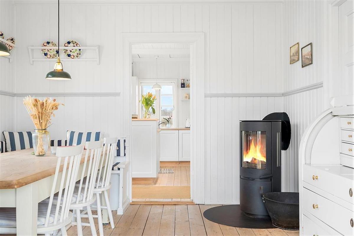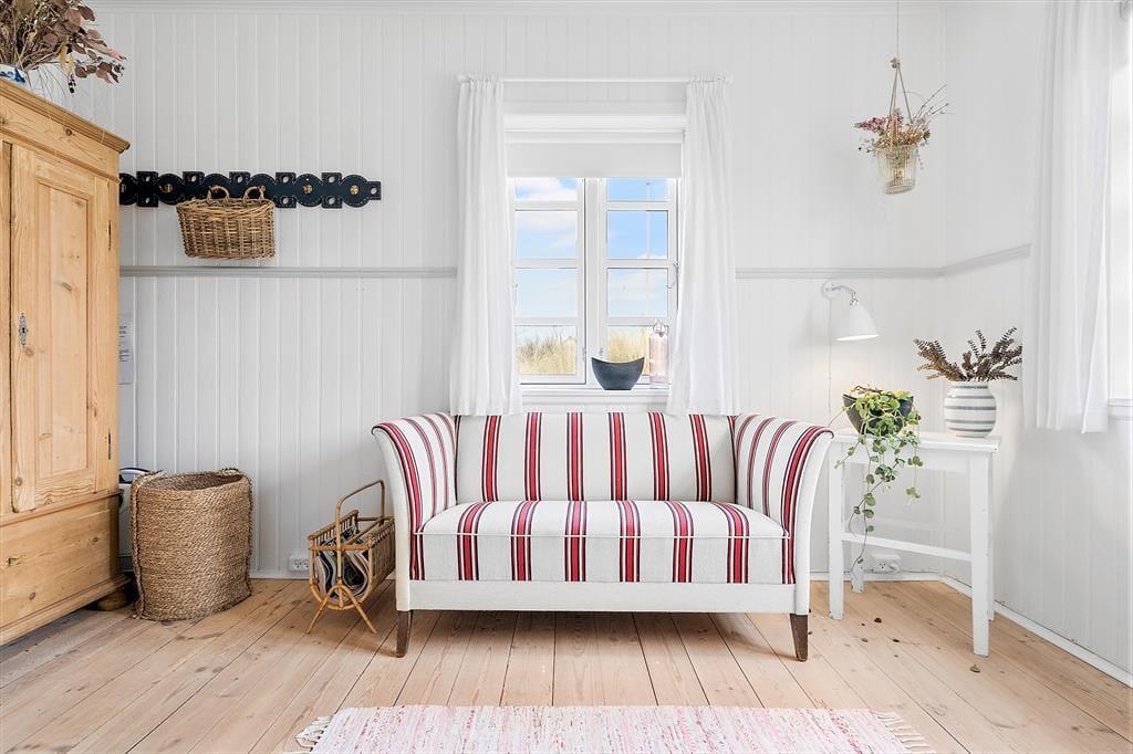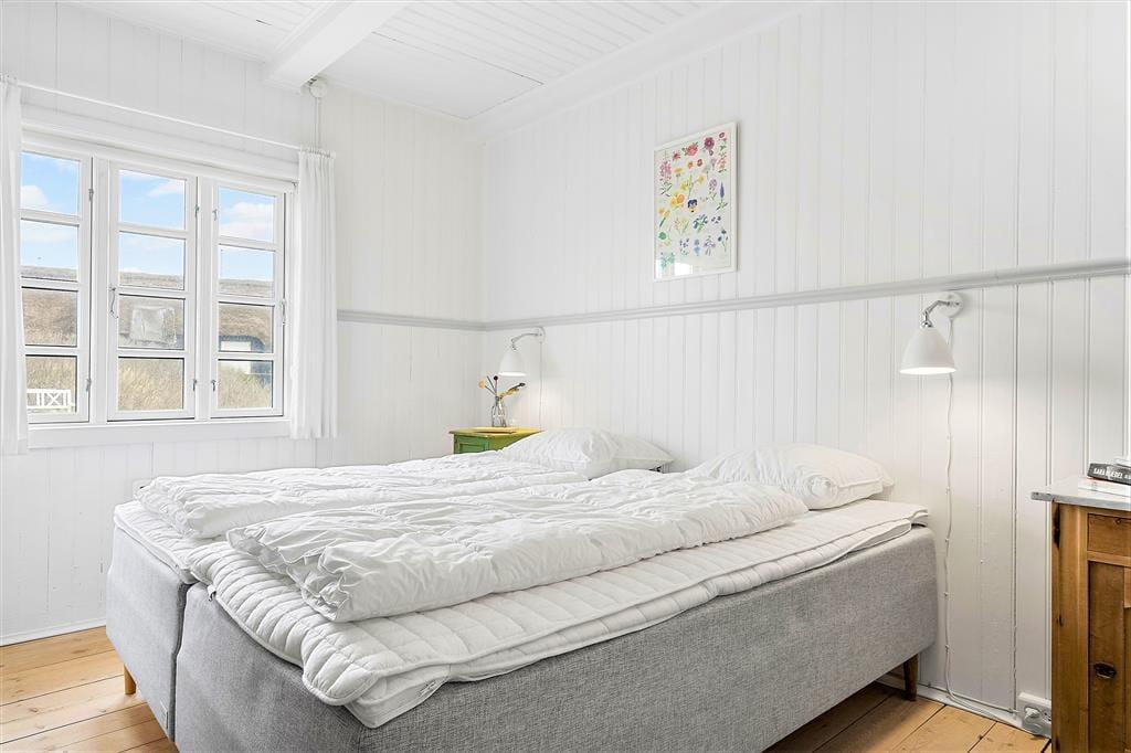 Die Geschichte des reetgedeckten Holzhauses reicht bis ins Jahr 1925 zurück. Schon damals war Søndervig im Sommer ein beliebtes Ziel für Strandgänger, doch heute sind nicht mehr viele der damaligen Ferienhäuser erhalten. Dieses besonders schöne Beispiel wurde im Jahre 2020 erfolgreich komplett renoviert: Die hellen Zimmer haben klassischen Charme und ein Interieur, das einem stilvollen Strandhotel würdig ist, und verfügen gleichzeitig über alle modernen Annehmlichkeiten, von denen Sie und die Familie träumen können. Drinnen können Sie sich unter anderem darauf freuen, in der schönen Küche zu kochen. Sie können sich dann zum Abendessen am Esstisch neben dem Holzofen setzen, wenn nicht der Wintergarten den Rahmen für die gemütlichen Momente bildet.