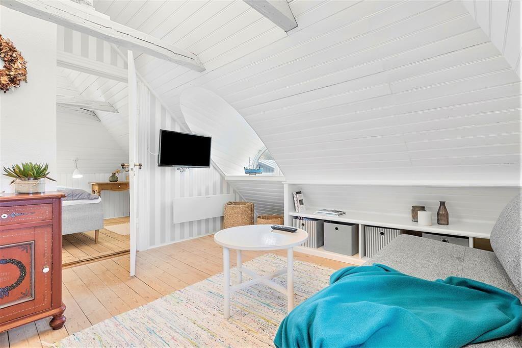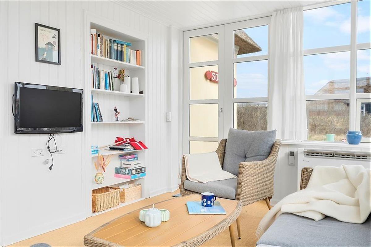 Dieses gelbgestrichene, reetgedeckte Häuschen trägt den poetisch klingenden Namen „Solsiden“ = die Sonnenseite – und es ist leicht zu verstehen, denn hier im Haus an Nordsøvej 50 finden Sie die besten Voraussetzungen für ein schönes Urlaubsleben. Das Haus verfügt über ein helles und unglaublich einladendes Interieur, und die Lage ist aufgrund der kurzen Entfernung zur Nordsee und zum Stadtzentrum von Søndervig besonders attraktiv.