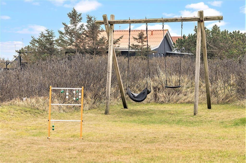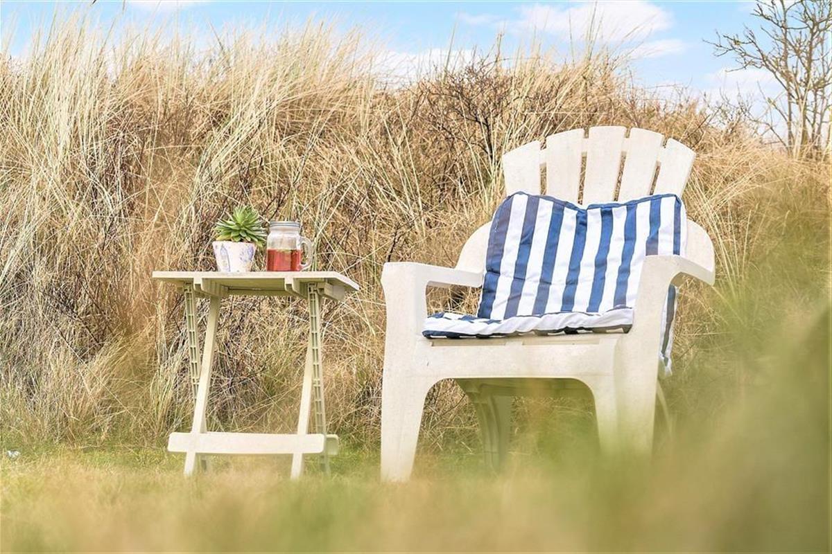 Rund um das malerische und nur leicht hügelige Gelände lässt sich leicht ein verlockender Platz zum Verweilen in der Sonne finden. Am Haus können Sie sich auf eine Bank setzen oder eine Nische wählen – zum Beispiel gibt es eine komplett umzäunte Terrasse, die durch Mauerwerk abgeschirmt ist und bei Bedarf sogar über einen überdachten Bereich verfügt. Sie können auch in einem Gartenstuhl in der Nähe der duftenden Rosen der Hagebutte und der kleinen Dünengipfel des Geländes sitzen. Wenn Sie im Urlaub mit Kindern unterwegs sind, können Sie ihnen eine Schaukel geben oder sie zu Wikingerspielen auf der Wiese herausfordern.