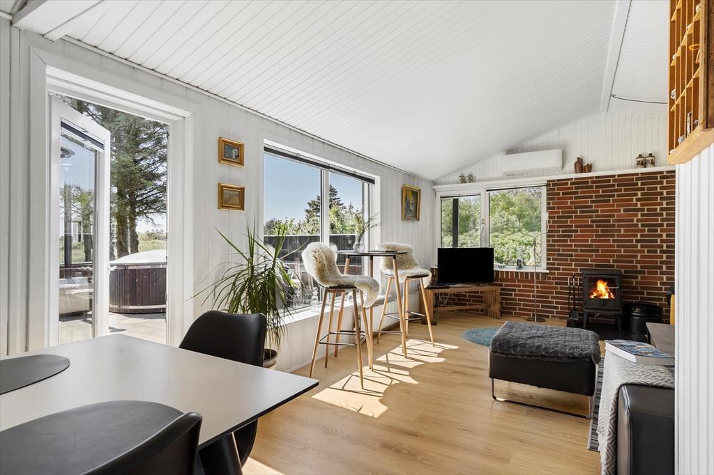 Wildnisbad - Der gute Sessel neben dem Ofen - Oder der Gartenpavillon mit Blick auf Felder und Fjord? Es könnte schwierig werden, Ihren Lieblingsplatz in diesem gemütlichen Ferienhaus zu wählen, denn hier im Fyrrekrat 2 in Søndervig gibt es viele schöne gemütliche Ecken und sonnige Plätze zur Auswahl.