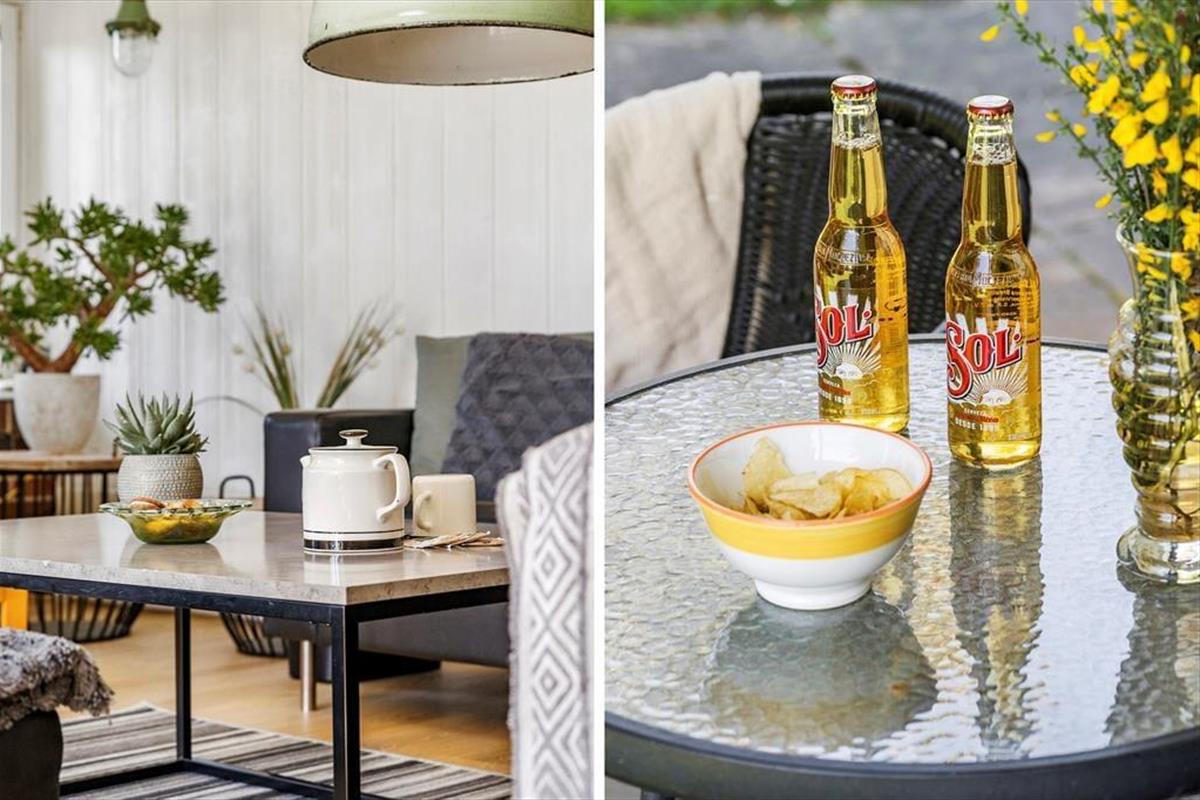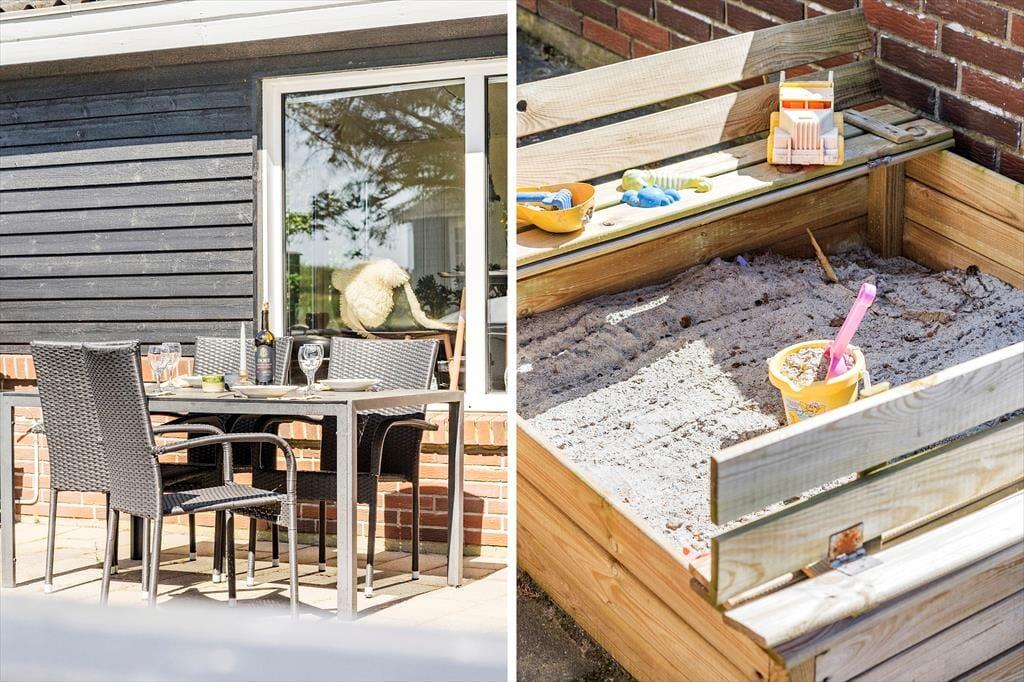 Das Gelände ist nicht nur groß, sondern auch wunderschön angelegt und verfügt über mehrere schöne Bereiche im Garten. Einladend zu einer Erkundungstour für die ganze Familie oder einfach nur zum Verweilen in der ruhigen Umgebung. Der Gartenpavillon steht am südlichen Ende des Grundstücks – direkt an der offenen Feldlandschaft und mit Blick auf den Fjord. Auf der Rasenfläche haben die Jüngsten viel Platz zum Spielen und Ballspielen und auch der Sandkasten auf der eingezäunten Terrasse dürfte ein Hit sein, denn hier können es sich die Erwachsenen bei einer heißen Tasse Kaffee ganz in der Nähe gemütlich machen. Auf der Terrasse gibt es außerdem ein Wildnisbad, ein Beitrag, das Leben im Freien in der Nebensaison zu verlängern und die Sommerabende unterm Sternenhimmel absolut magisch zu machen.