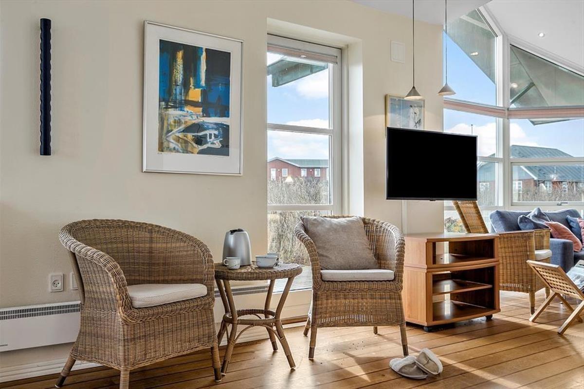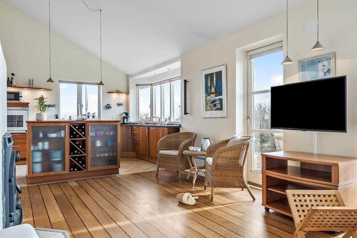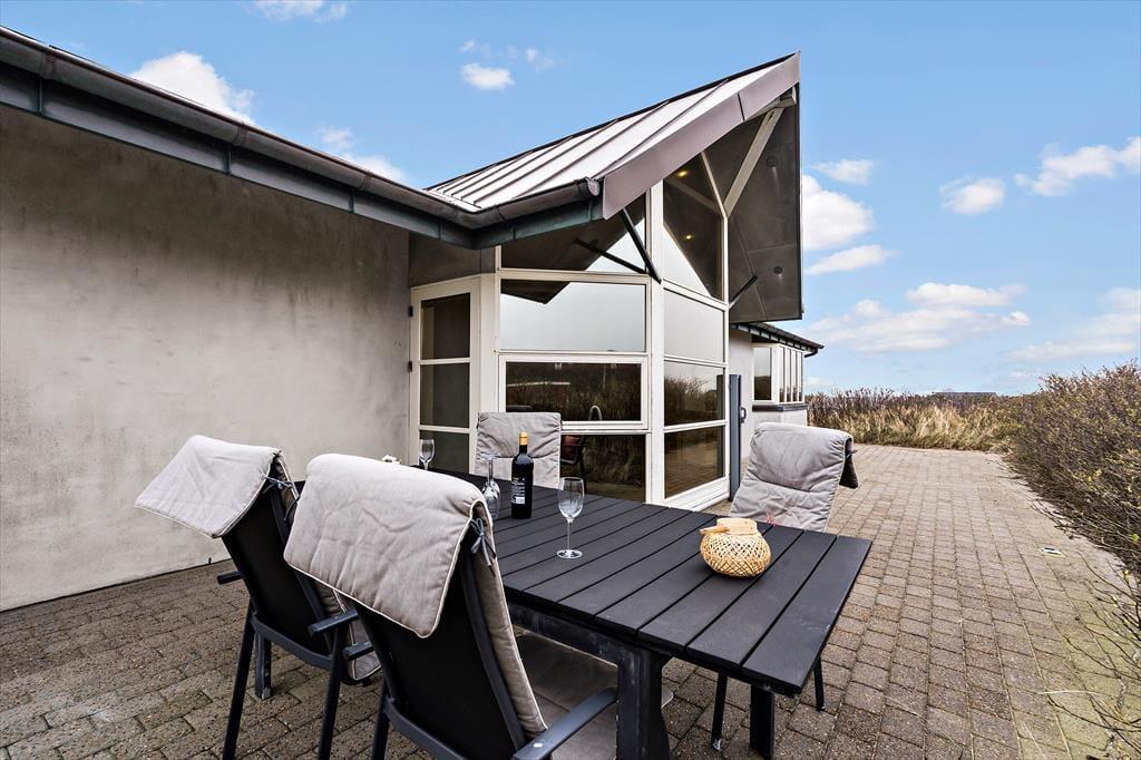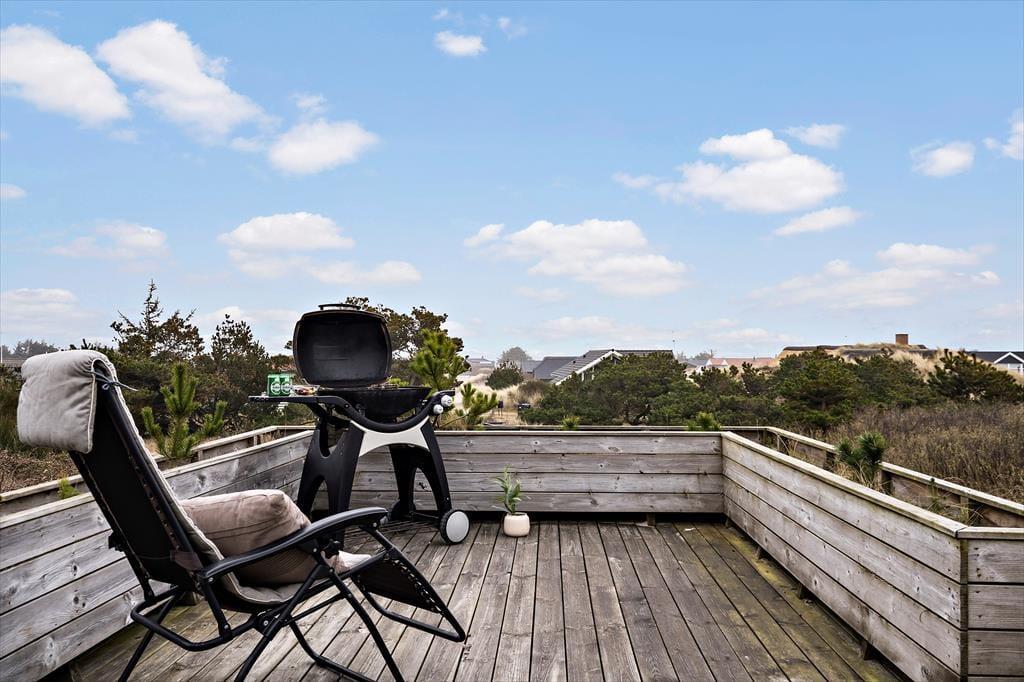Das Ferienhaus am Anders Juhls Vej 10 verfügt über eine schöne Terrasse, die sich rund um das ganze Haus erstreckt. Hier kannst du den ganzen Tag die Sonne genießen und gemütliche Eckchen finden – ob zum Bücher lesen oder einfach zum entspannten Kaffeetrinken. Da das Haus in einer Endstraße liegt, herrscht nur wenig Verkehr - ihr könnt die Ruhe und frische Luft also ohne Störungen pur genießen. Egal, ob ihr draußen essen, ein Nickerchen in der Sonne machen oder einfach die Aussicht bewundern möchtet – der Terrassenbereich bietet den perfekten Platz. Die wunderschöne Lage auf der Anhöhe gibt einen Panoramaausblick auf die Natur rund um das Haus und in dieser entspannenden Atmosphäre fühlt man sich schnell wie zuhause.