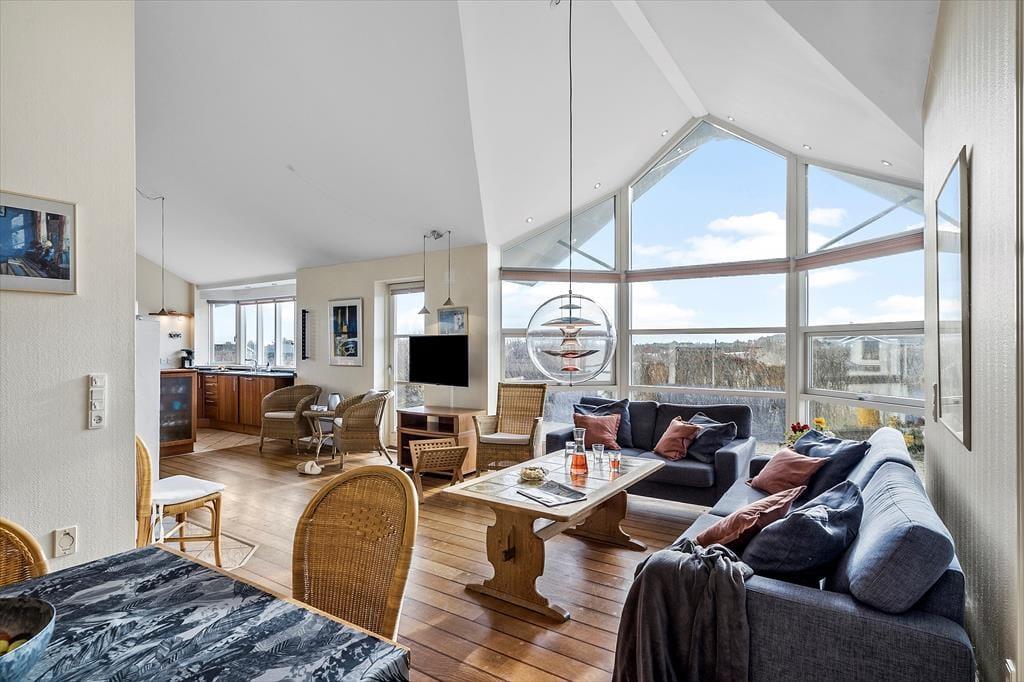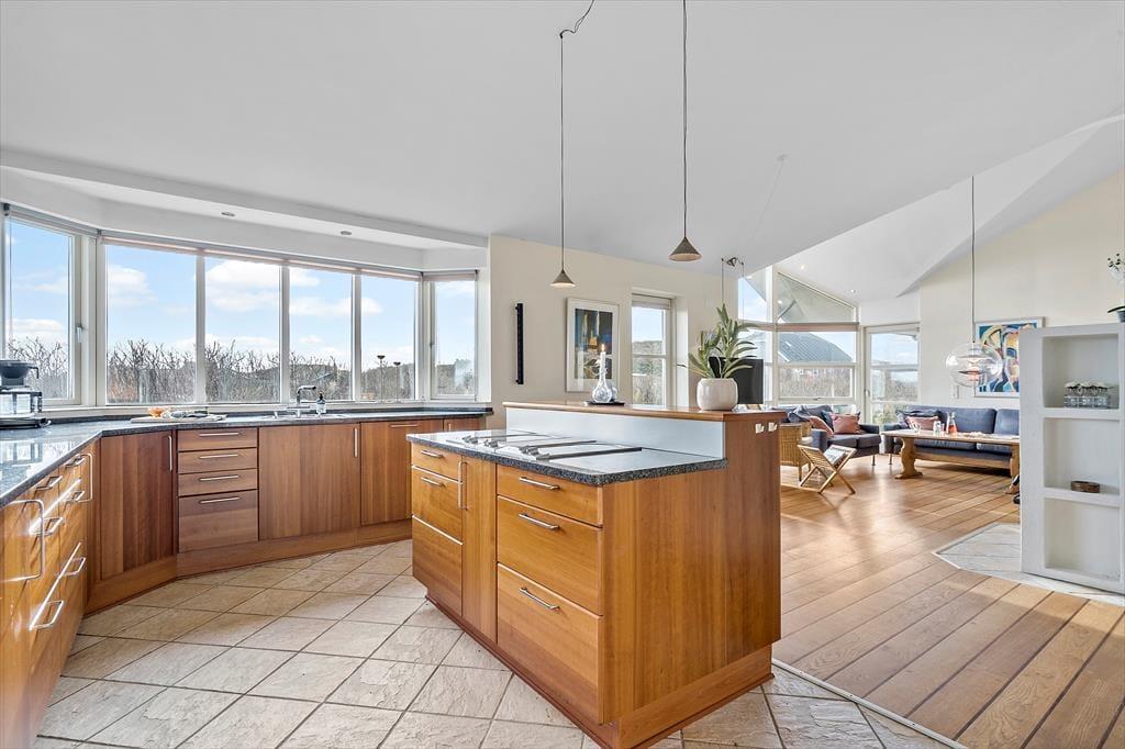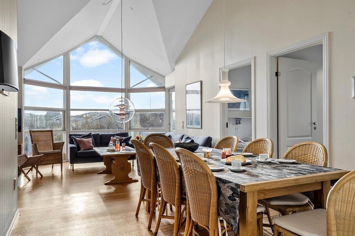 Schon beim Eintreten wirst du von dieser wunderbaren Atmosphäre begrüßt, die nur ein Haus mit weiten Fensterflächen und einer fantastischen Aussicht bieten kann. Die geräumige Küche und das Wohnzimmer sind durchflutet vom Licht – und dieses dank der großen „von Boden bis Decke“-Fenstern, die auch den Blick auf die beeindruckende Natur rund um das Haus freigeben. Hier könnt ihr sogar beim Zubereiten der Mahlzeiten mit Familie oder Freunden die atemberaubende Aussicht auf die Landschaft genießen. Wenn der Abend hereinbricht, verbreitet der Kaminofen eine angenehme Wärme und eine gemütliche Atmosphäre, die zu Entspannung mit einem guten Buch oder einer Tasse heißem Kakao einlädt.Die offenen Räume vermitteln ein Gefühl der Freiheit und machen das Haus perfekt für geselliges Beisammensein. Und mit vier geräumigen Schlafzimmern kann jeder seinen eigenen, komfortablen Rückzugsort einnehmen – es gibt genügend Platz.