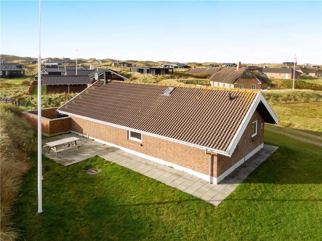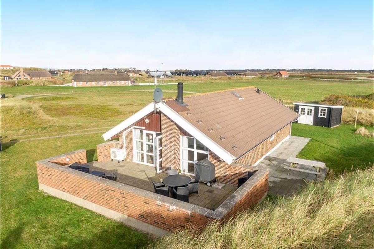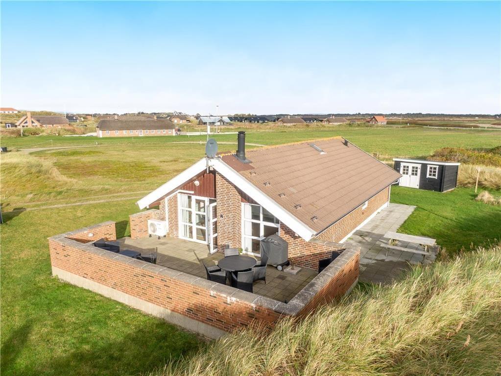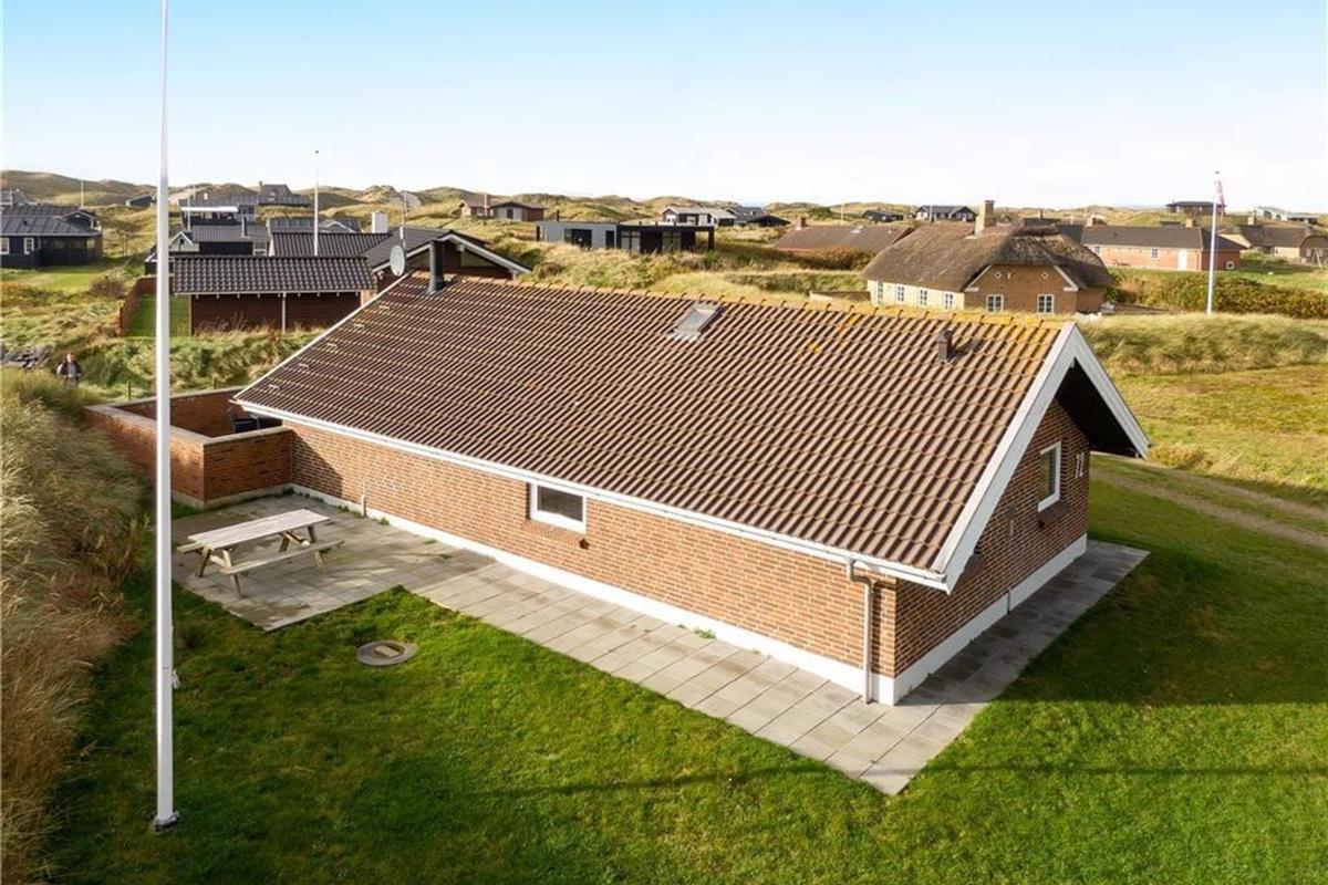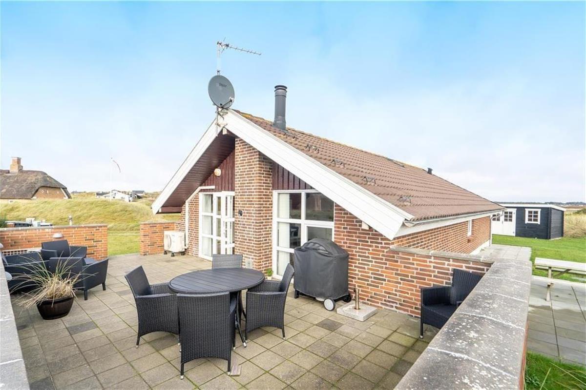 Rund um das Grundstück in Richtung der Nachbarhäuser verläuft eine Düne, so dass Sie sich ungestört im Haus aufhalten können. Eine große Liegewiese mit Platz für Ballspiele und Spiel. Das Haus hat eine große geflieste Terrasse nach Südwesten mit Gartenmöbeln, Sonnenliegen und einem Grill. Nach Nordosten können Sie die Aussicht über die Grünanlage und weiter zum Golfplatz Søndervig genießen, wo Sie das Spiel live verfolgen können.
