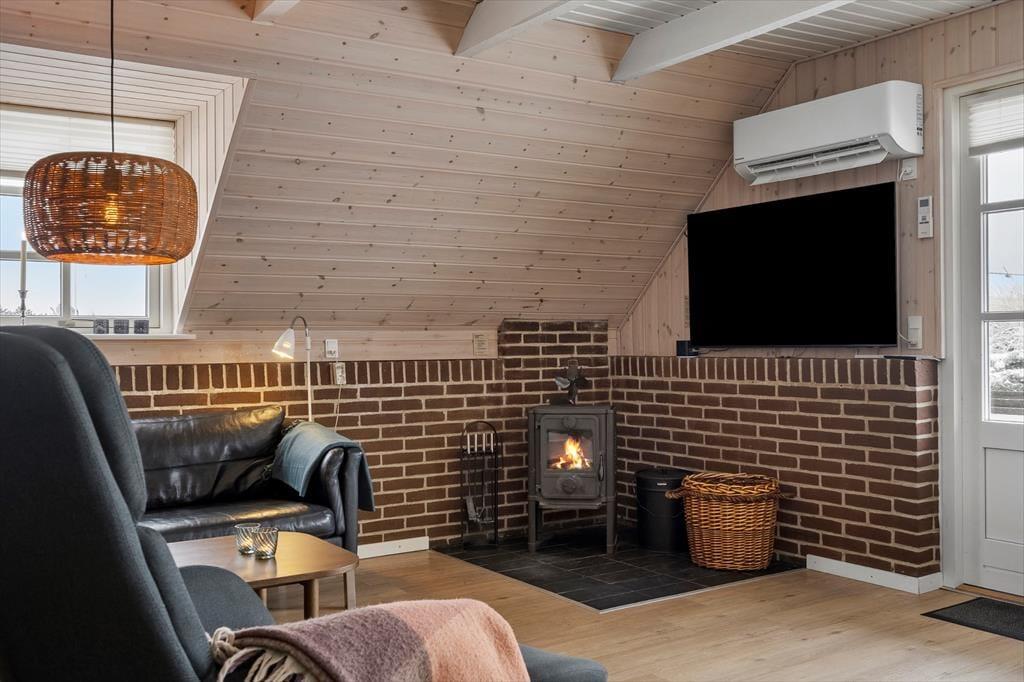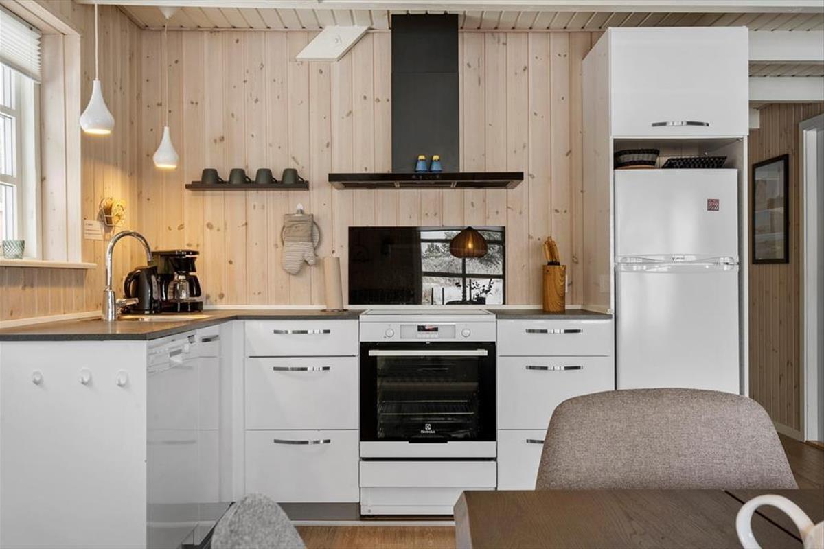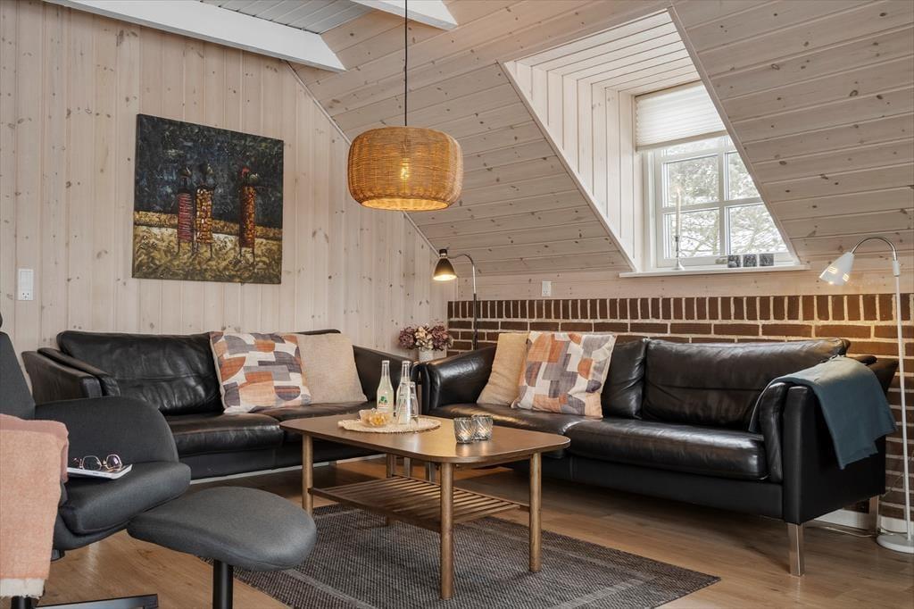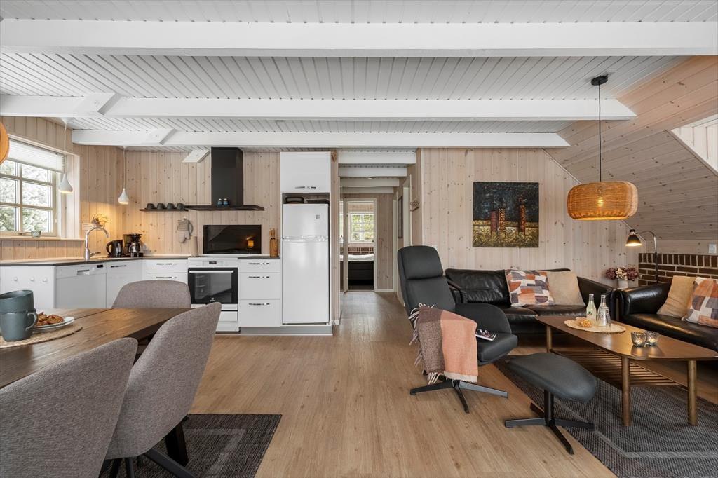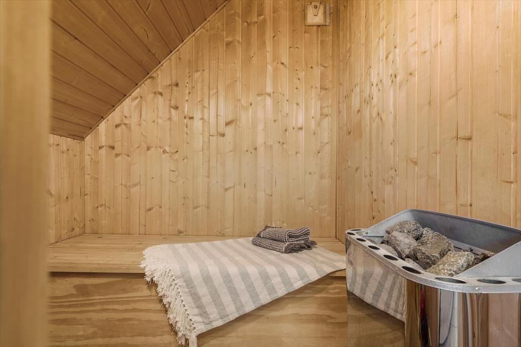 Eine helle und moderne Küche, ein Kaminofen im Wohnzimmer und ein Whirlpool sowie eine Sauna im großen Badezimmer - das sind einige der attraktiven Details, die Ihren Urlaub in diesem 86 m² großen Ferienhaus besonders angenehm machen werden. Die Küche ist praktischerweise in das Wohnzimmer integriert. Wenn Sie also nur Ihre Kaffeetasse auffüllen oder ein Mittagessen zubereiten wollen, ist die Sofaecke nur ein paar Schritte entfernt. Wenn Sie Filme oder Serien streamen möchten, ist Chromecast an den Flachbildschirm im Wohnzimmer angeschlossen, und die Wi-Fi-Verbindung macht es einfach, die Nachrichten auf den mitgebrachten Geräten zu verfolgen. Neben dem Whirlpool und der Sauna verfügt das Badezimmer über eine Dusche, eine Waschmaschine und eine Fußbodenheizung. Die drei Schlafzimmer des Ferienhauses sind mit bequemen Betten für sechs Personen ausgestattet.
