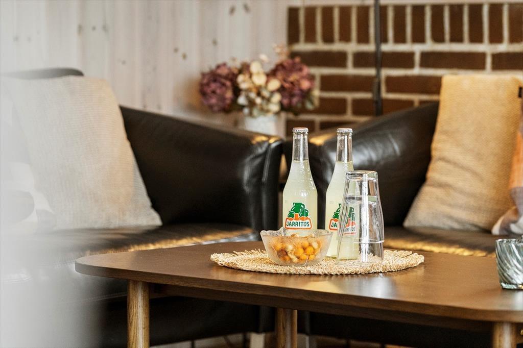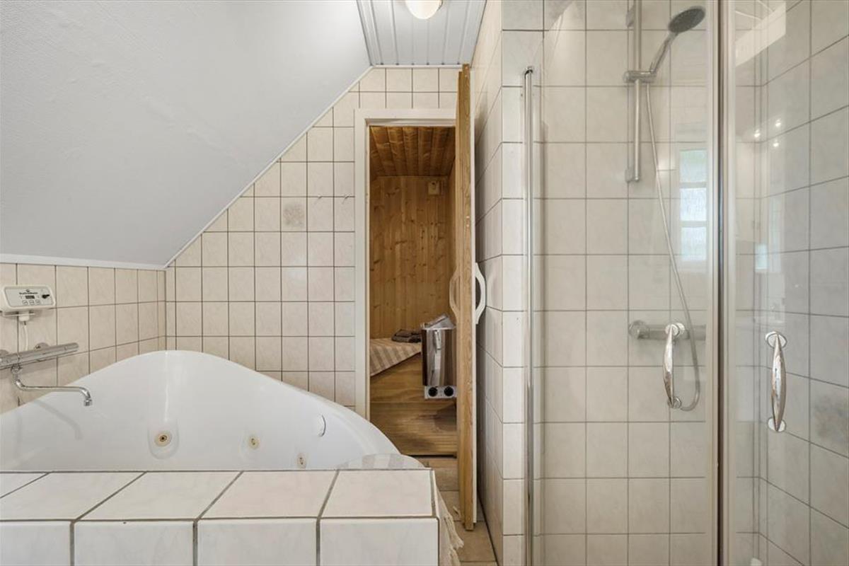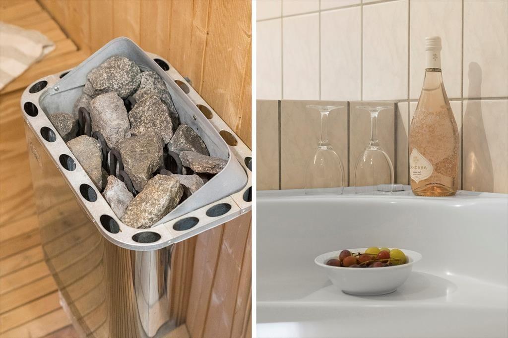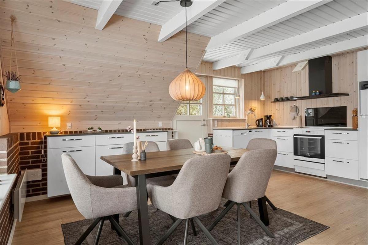 Eine helle und moderne Küche, ein Kaminofen im Wohnzimmer und ein Whirlpool sowie eine Sauna im großen Badezimmer - das sind einige der attraktiven Details, die Ihren Urlaub in diesem 86 m² großen Ferienhaus besonders angenehm machen werden. Die Küche ist praktischerweise in das Wohnzimmer integriert. Wenn Sie also nur Ihre Kaffeetasse auffüllen oder ein Mittagessen zubereiten wollen, ist die Sofaecke nur ein paar Schritte entfernt. Wenn Sie Filme oder Serien streamen möchten, ist Chromecast an den Flachbildschirm im Wohnzimmer angeschlossen, und die Wi-Fi-Verbindung macht es einfach, die Nachrichten auf den mitgebrachten Geräten zu verfolgen. Neben dem Whirlpool und der Sauna verfügt das Badezimmer über eine Dusche, eine Waschmaschine und eine Fußbodenheizung. Die drei Schlafzimmer des Ferienhauses sind mit bequemen Betten für sechs Personen ausgestattet.