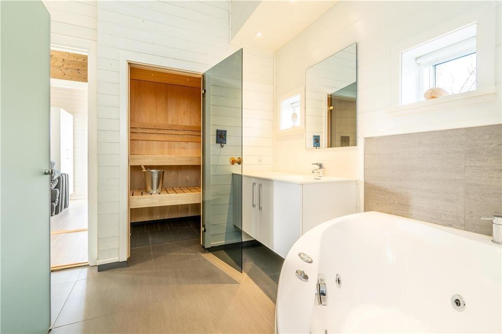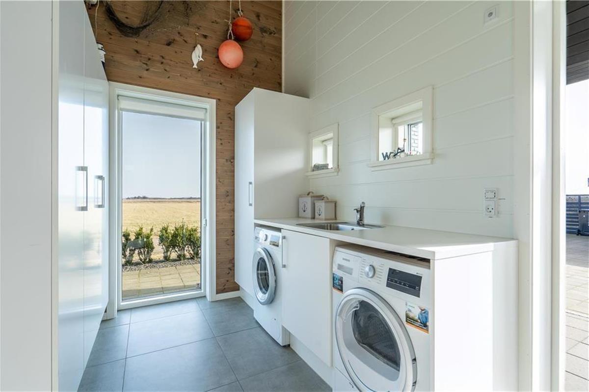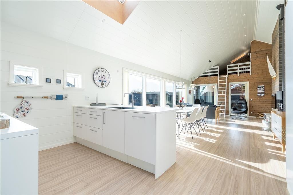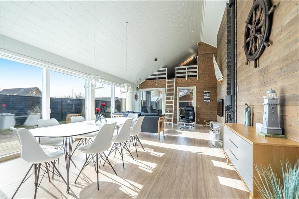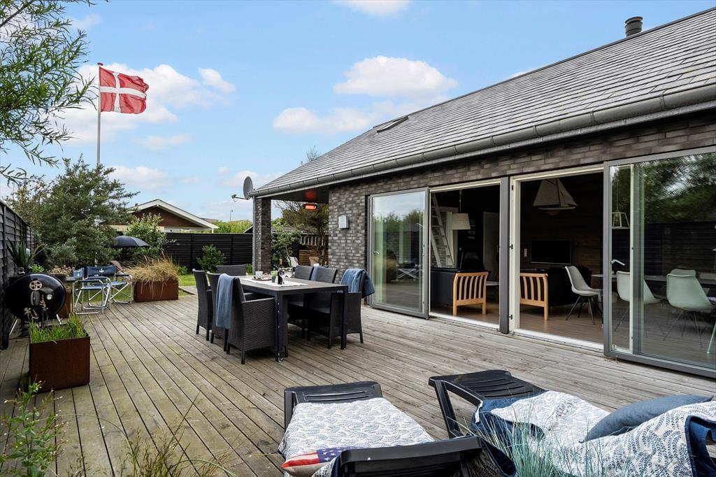 Das 2017 neu erbaute und durchweg aus qualitativ hochwertigen Materialien errichtete Ferienhaus besticht sowohl innen als auch außen durch seine geschmackvolle Gestaltung.Das Herzstück dieses prachtvollen Hauses bildet der offen miteinander kombinierte Wohn- und Küchenbereich. Die hellen Holzwände und die hohen und ebenfalls hellen Holzdecken, lassen den Wohnbereich wunderbar freundlich und luftig wirken. Die tolle, sehr gut ausgestattete Küche verfügt über sämtliche modernen Hilfsmittel wie beispielsweise einen Geschirrspüler und ist gut ausgestattet, so dass das Kochen einfach wird. Im Wohnzimmer können Sie es sich vor dem Holzofen gemütlich machen und das Flammenspiel hinter der Glasscheibe genießen. Ein großer Flachbildfernseher mit Satellitenschüssel sorgt für Unterhaltung und auch an einem windigen Tag ist ein gutes Buch in den bequemen Ledermöbeln schön. Hinzu gesellen sich der moderne Essplatz und ein kleiner Tresenbereich, der sich hervorragend für Arbeiten am Laptop oder dergleichen eignet. Die großen Fenster gewährleisten nicht nur einen wunderbaren Lichteinfall, sondern bieten Ihnen auch einen fantastischen Ausblick über die hügelige Umgebung und die Dünen. Ihnen stehen in diesem herrlichen Haus zwei komplette Bäder mit Dusche, WC und Fliesenboden mit Fußbodenheizung zur Verfügung. Eines der Bäder versprüht mit seinem Whirlpool und der Sauna einen Hauch von Luxus und verspricht entspannte Stunden nach einem langen Urlaubstag. Das 130 m2 große, stilvolle Backsteingebäude kann problemlos acht Erwachsene und zwei Kinder beherbergen, da es vier große Schlafzimmer und einen großen Schlafboden gibt. Neben dem Kamin sorgt auch eine energiesparende Wärmepumpe für ein behagliches Wohnklima. Im Hauswirtschaftsbereich steht Ihnen eine Waschmaschine zur Verfügung.Damit Sie auch im Urlaub auf dem Laufenden bleiben, erwartet Sie im Ferienhaus kostenloses WLAN.