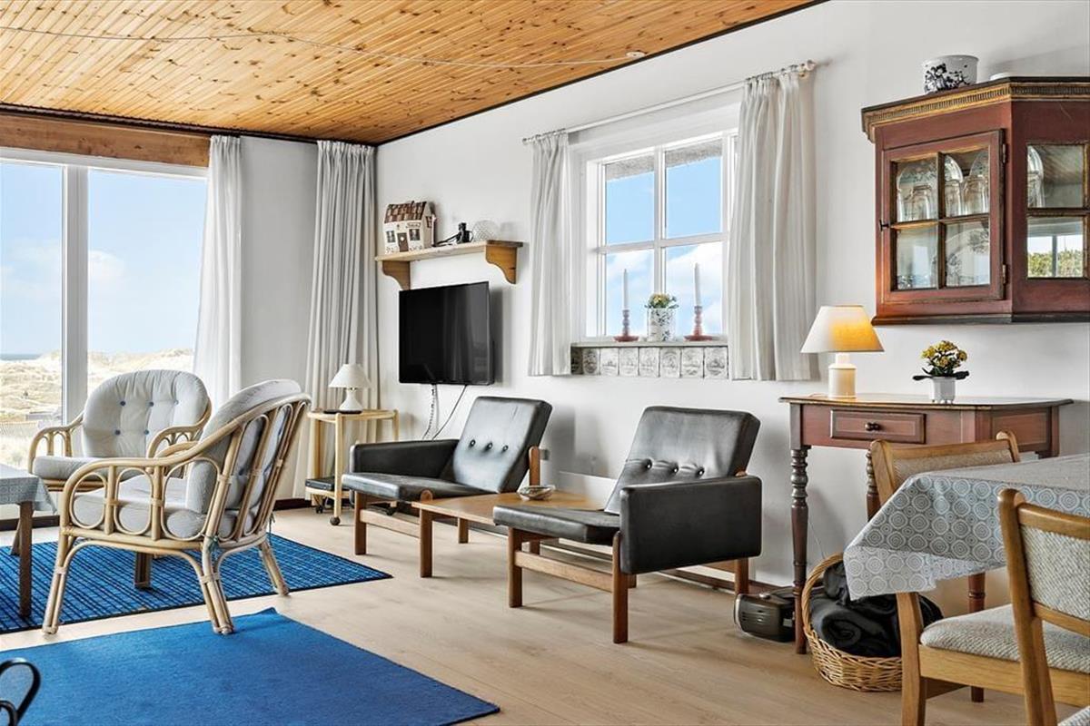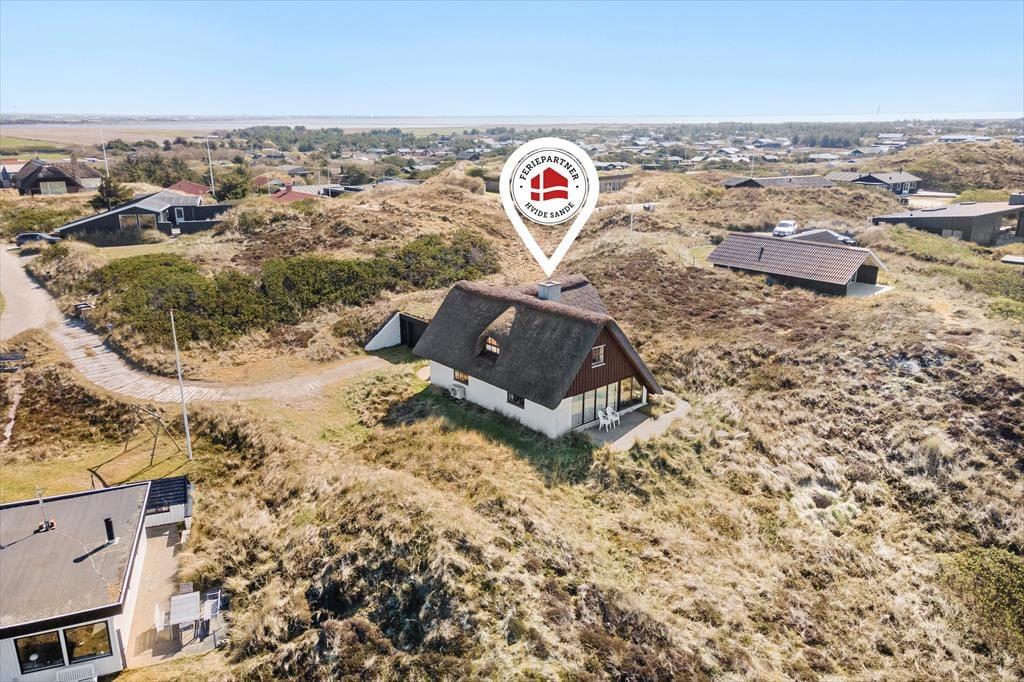 Auf Ihrem hoch gelegenen Dünengrundstück haben Sie das Gefühl, dass Ihnen ganz Holmsland Klit zu Füßen liegt. Es ist einfach wunderschön, hier in aller Ruhe zu sitzen und den Ausblick zu genießen. Innerhalb weniger Minuten spazieren Sie von der Sackgasse, in der das Haus liegt, an den Strand, wo Sie in den Wellen baden und mit den Kindern an der Wasserkante spielen können. Wanderungen und Radtouren zählen in dieser Gegend zu den beliebtesten Urlaubsaktivitäten. Anglern, Surfern und anderen Wassersportlern bieten sich gute Bedingungen. Knapp einen Kilometer entfernt freut sich der Ortskern Søndervigs auf Ihren Besuch. Hier treffen Sie auf Restaurants, Einkaufsmöglichkeiten, Geschäfte und Aktivitätsmöglichkeiten. Per Auto erreichen Sie zudem innerhalb von 10 Minuten den interessanten und populären Fischereihafenort Hvide Sande.