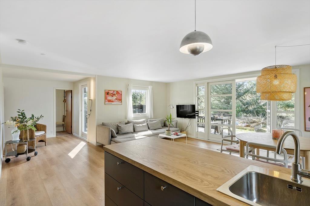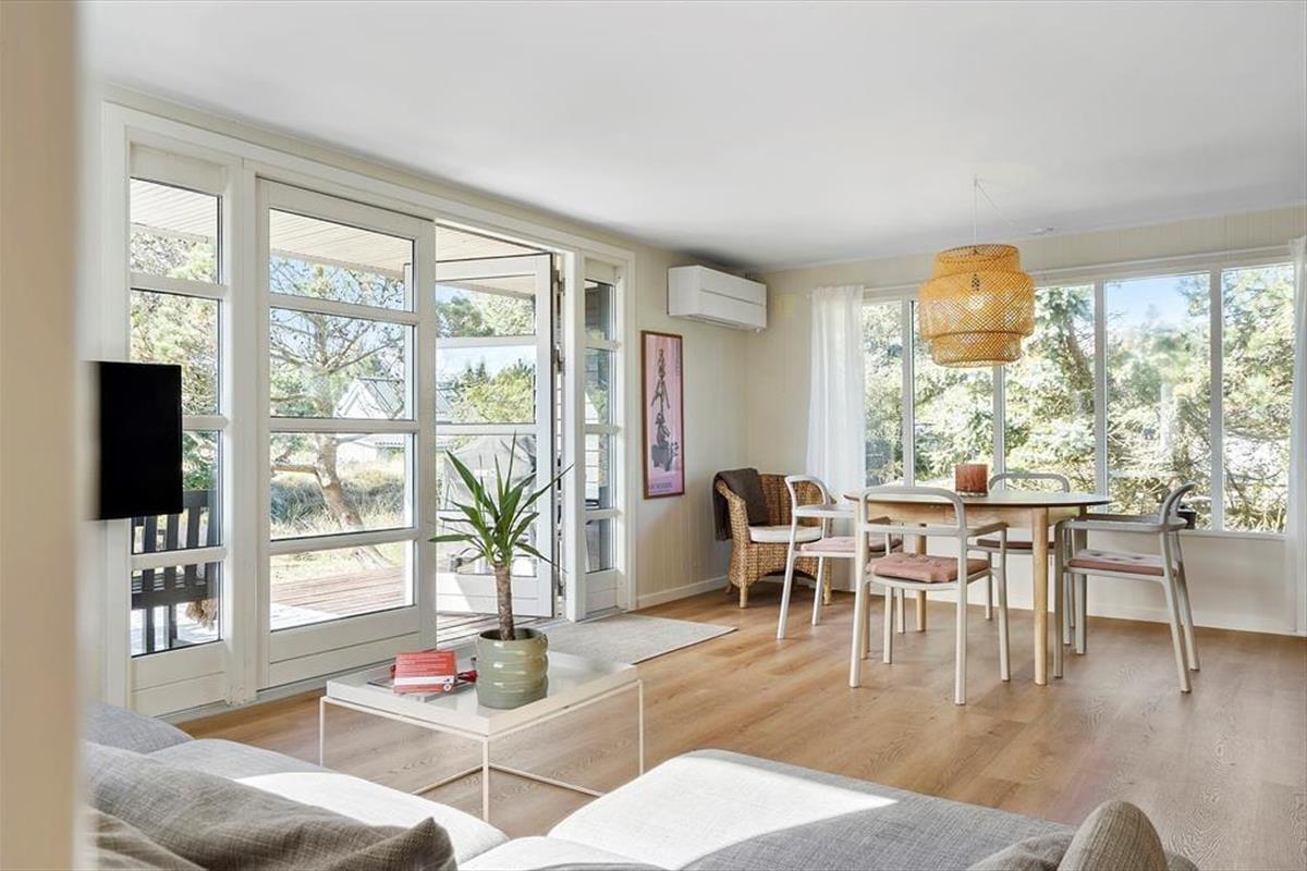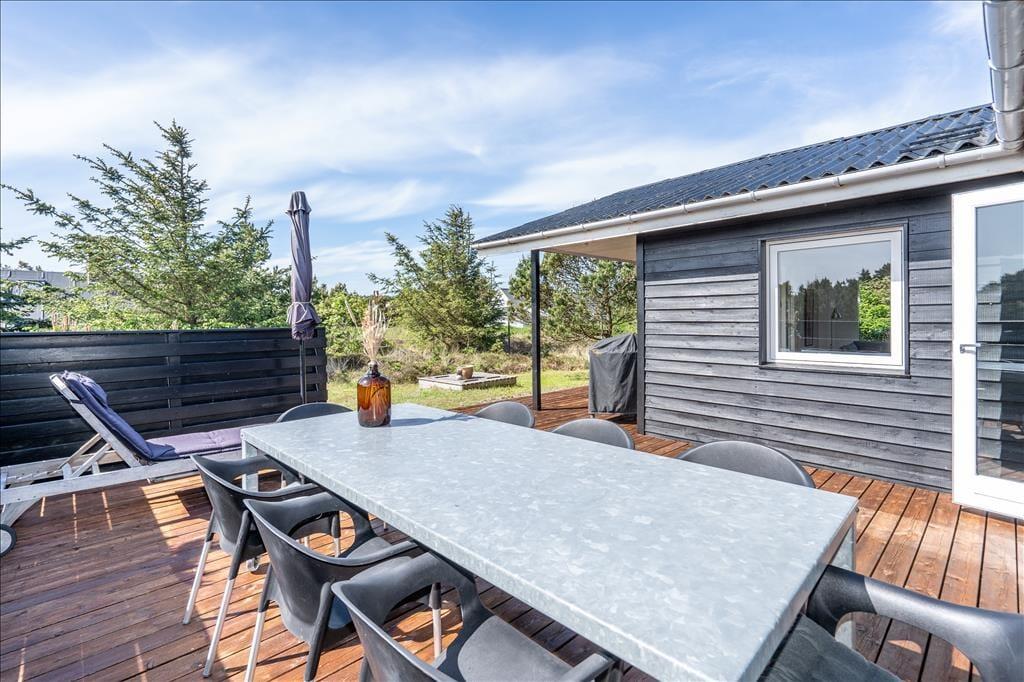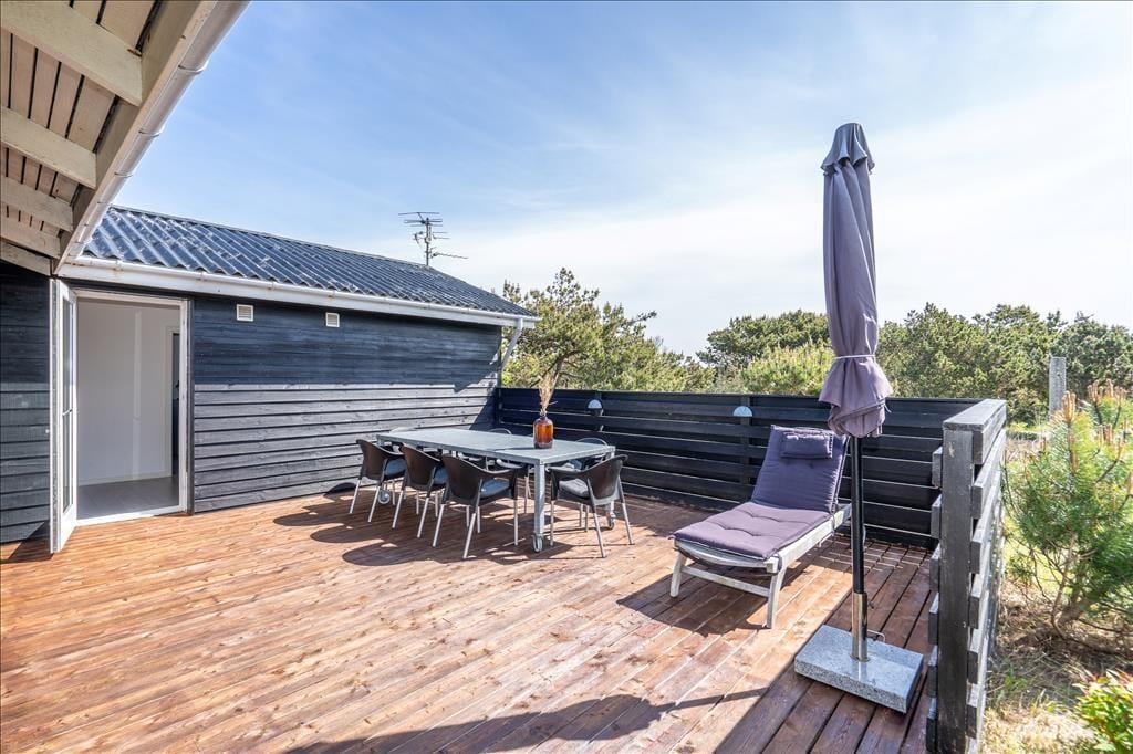 Nur ein kurzer Spaziergang trennt das ungestörte Grundstück vom Strand, an dem Sie an warmen Tagen baden und an kühlen Nebensaisontagen lange Strandwanderungen unternehmen können. Wind- und Kitesurfer schätzen die Gegend, da der Ringkøbing Fjord und die Nordsee vielfältige Möglichkeiten zur Ausübung des Sports bieten. Angler erfreuen sich an mehreren Angelteichen und an den guten Fangplätzen an der großen Schleuse des Hafenortes Hvide Sande. Hier muss der Fang allerdings hin und wieder mit hungrigen Seehunden geteilt werden. Mit Ihren Kindern sollten Sie einen Tag im großen Tropenbadeland Søndervigs verbringen. Der lebendige Badeort bietet darüber hinaus unter anderem einen Golfplatz, Geschäfte und Lokalitäten.