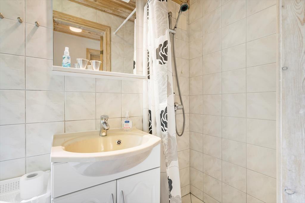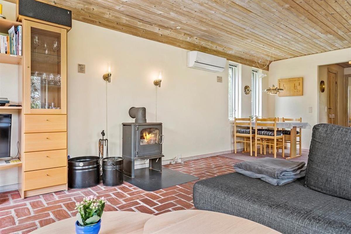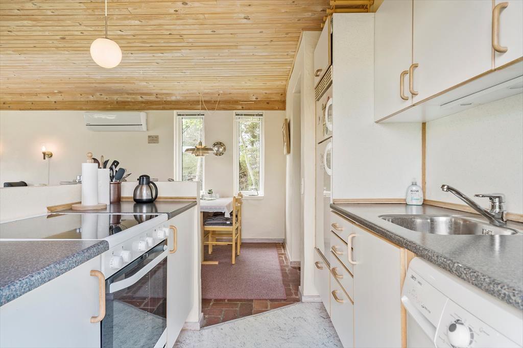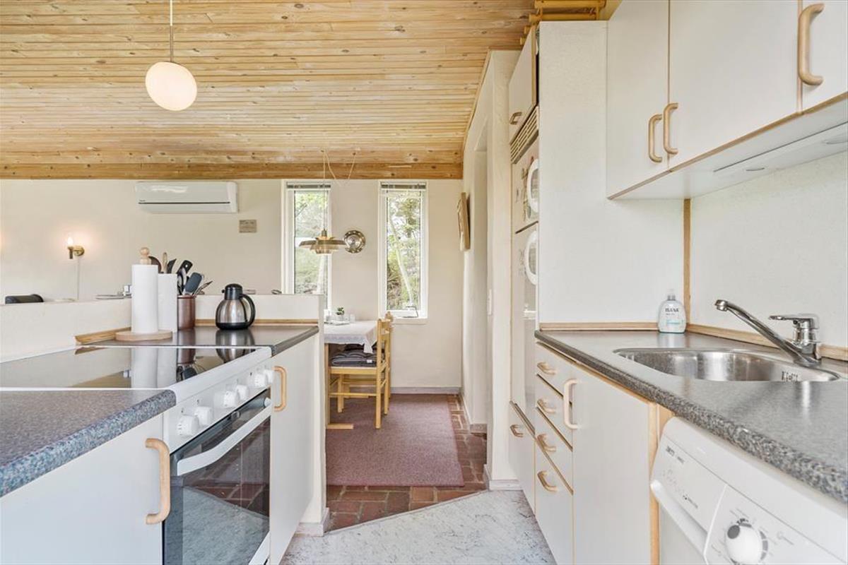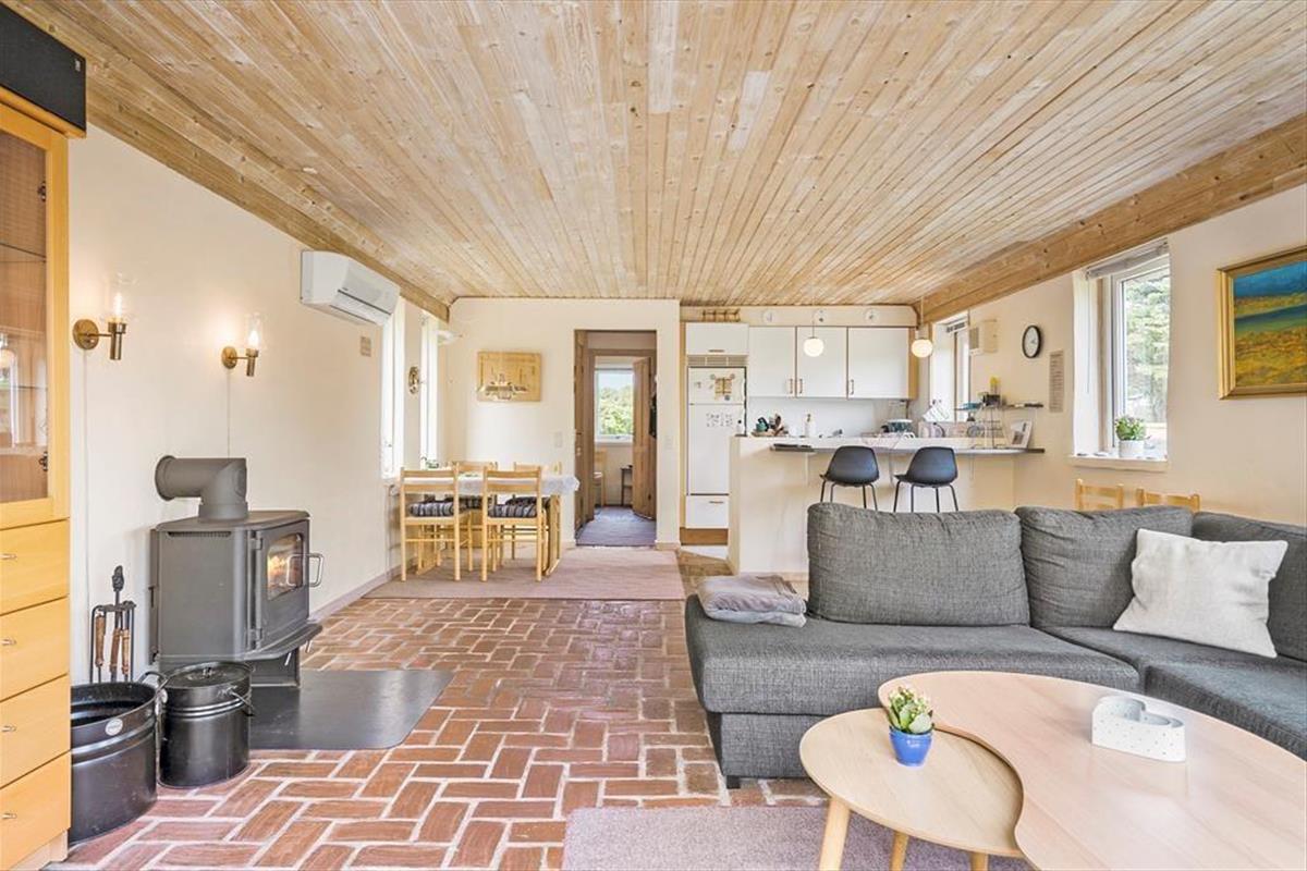 Die Schlafplätze für zwei Erwachsene und zwei Kinder verteilen sich auf zwei Schlafräume. Neben den beiden Schlafzimmern befindet sich das mit einer Duschnische ausgestattete Badezimmer. Das Herzstück des Hauses bildet der große, offenen Aufenthaltsraum, der die Küche und den Wohnraum offen in sich vereint., Die helle Küche ist gut ausgestattet und mit einer Waschmaschine versehen. Der Wohnraum unterteilt sich in einen Essbereich und in einen gemütlichen Bereich, in dem Sie mit einem großen Sofa, einem Fernseher und einem Kaminofen verwöhnt werden. WiFi ist vorhanden. Der Kaminofen wird durch eine Wärmepumpe unterstützt.