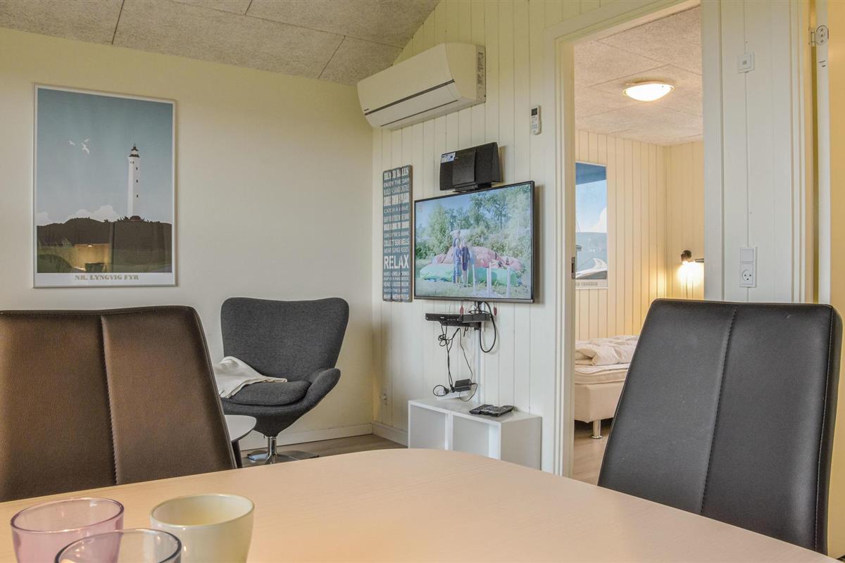 Bijzonder goed ingericht vakantiehuis in een prachtig landschap met uitzicht op de duinen in de verte. U verblijft in het vakantiepark Søndervig, dat in de eerste fase van ontwikkeling is gerealiseerd. De huizen liggen dicht bij het centrum van de stad, een stad met de gemakkelijkste toegang tot de Noordzee. Het stadje is dan ook een gerenommeerde badplaats die veel doet om het haar gasten naar de zin te maken. De ondernemers weten wat ze moeten doen om alle wensen van de gasten te vervullen. Zo kun je hier winkelen, eten, koffie drinken of je laten verwennen met wellness. Het zal je hier echt aan niets ontbreken. Niet ver van het vakantiepark ligt ook het oude Ringkøbing. Ook daar zult u zich snel welkom voelen, want het stadje is een van de best bewaarde van Denemarken. Hier reist u terug in de tijd als u de oude, lage huizen, de rode pannendaken en de glasramen ziet. Het centrum is sinds de 19e eeuw onveranderd gebleven en is een goede plek om je rondleiding door de stad te beginnen. U maakt een ontspannen wandeling door de geplaveide straatjes en leuke boetiekjes. De haven heeft een bijzondere sfeer. Op de pier kunt u genieten van de zon en een prachtig uitzicht op de fjord. Hvide Sande is ook leuk om te bezoeken. De haven is actief, er wordt veel vis aan land gebracht, maar toch vindt u altijd wel een visser die graag een praatje maakt. Aan beide kanten van het stadje vindt u activiteiten op en rond het water. Je voelt hier veel natuur, er is enorm veel ruimte voor iedereen, jong, oud, surfers, levensgenieters en actieve sporters.