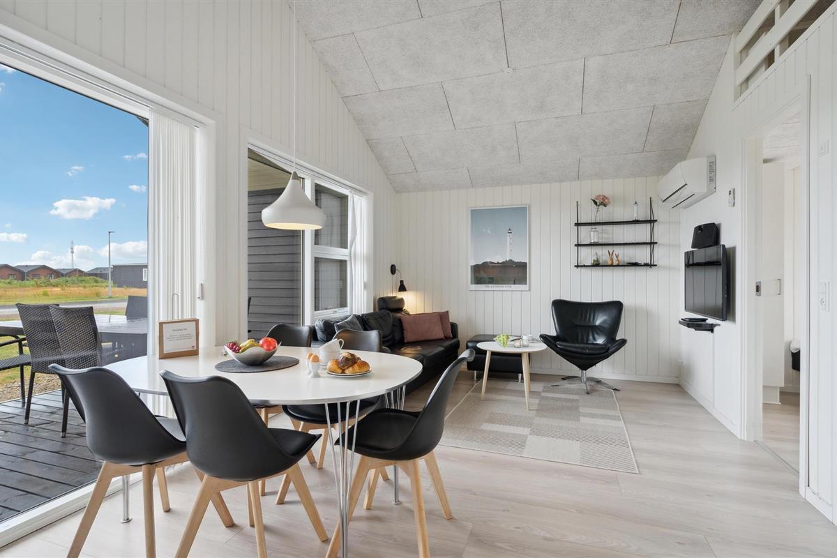 Bijzonder goed ingericht vakantiehuis in een prachtig landschap met uitzicht op de duinen in de verte. U verblijft in het vakantiepark Søndervig, dat in de eerste fase van ontwikkeling is gerealiseerd. De huizen liggen dicht bij het centrum van de stad, een stad met de gemakkelijkste toegang tot de Noordzee. Het stadje is dan ook een gerenommeerde badplaats die veel doet om het haar gasten naar de zin te maken. De ondernemers weten wat ze moeten doen om alle wensen van de gasten te vervullen. Zo kun je hier winkelen, eten, koffie drinken of je laten verwennen met wellness. Het zal je hier echt aan niets ontbreken. Niet ver van het vakantiepark ligt ook het oude Ringkøbing. Ook daar zult u zich snel welkom voelen, want het stadje is een van de best bewaarde van Denemarken. Hier reist u terug in de tijd als u de oude, lage huizen, de rode pannendaken en de glasramen ziet. Het centrum is sinds de 19e eeuw onveranderd gebleven en is een goede plek om je rondleiding door de stad te beginnen. U maakt een ontspannen wandeling door de geplaveide straatjes en leuke boetiekjes. De haven heeft een bijzondere sfeer. Op de pier kunt u genieten van de zon en een prachtig uitzicht op de fjord. Hvide Sande is ook leuk om te bezoeken. De haven is actief, er wordt veel vis aan land gebracht, maar toch vindt u altijd wel een visser die graag een praatje maakt. Aan beide kanten van het stadje vindt u activiteiten op en rond het water. Je voelt hier veel natuur, er is enorm veel ruimte voor iedereen, jong, oud, surfers, levensgenieters en actieve sporters.