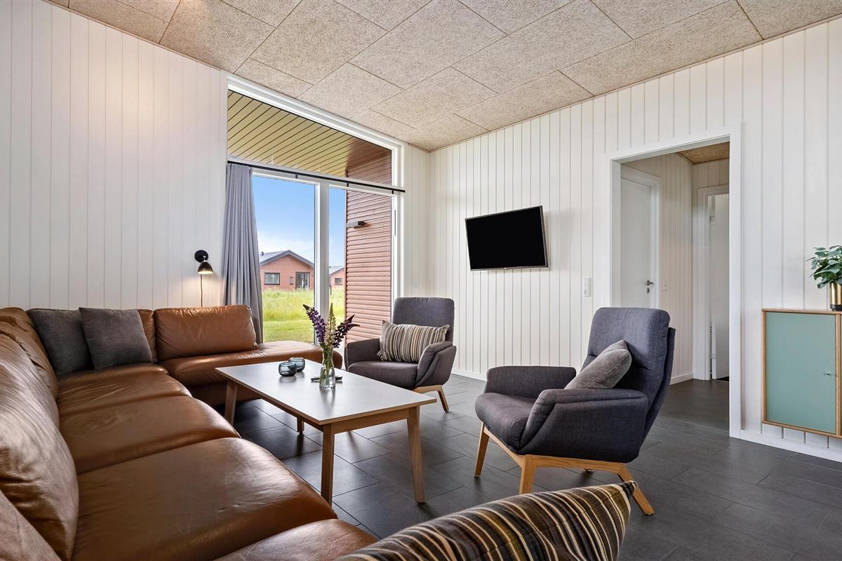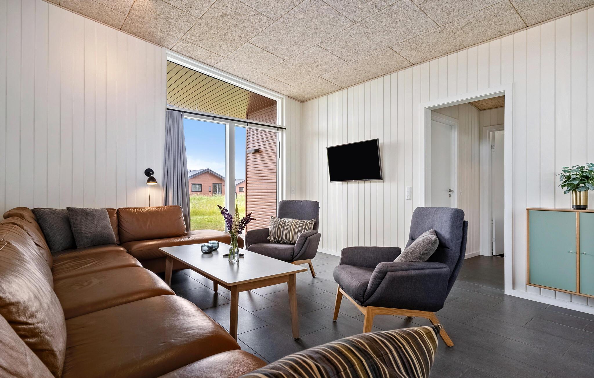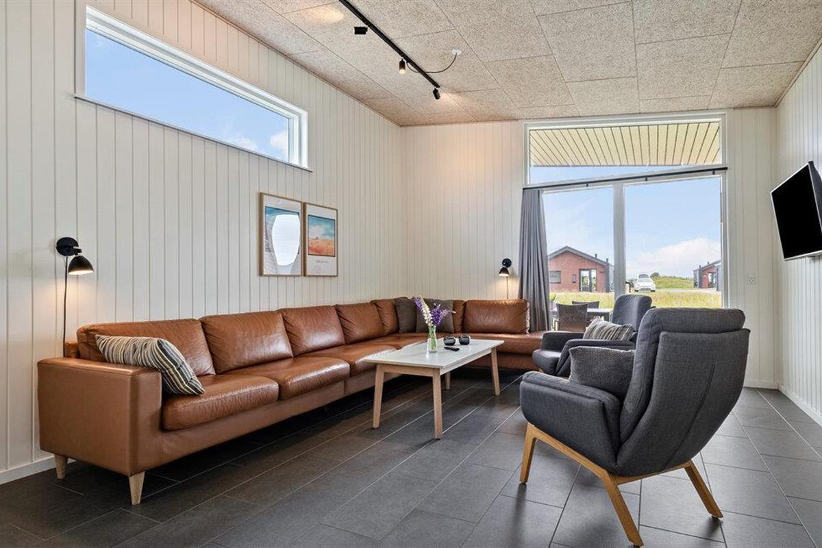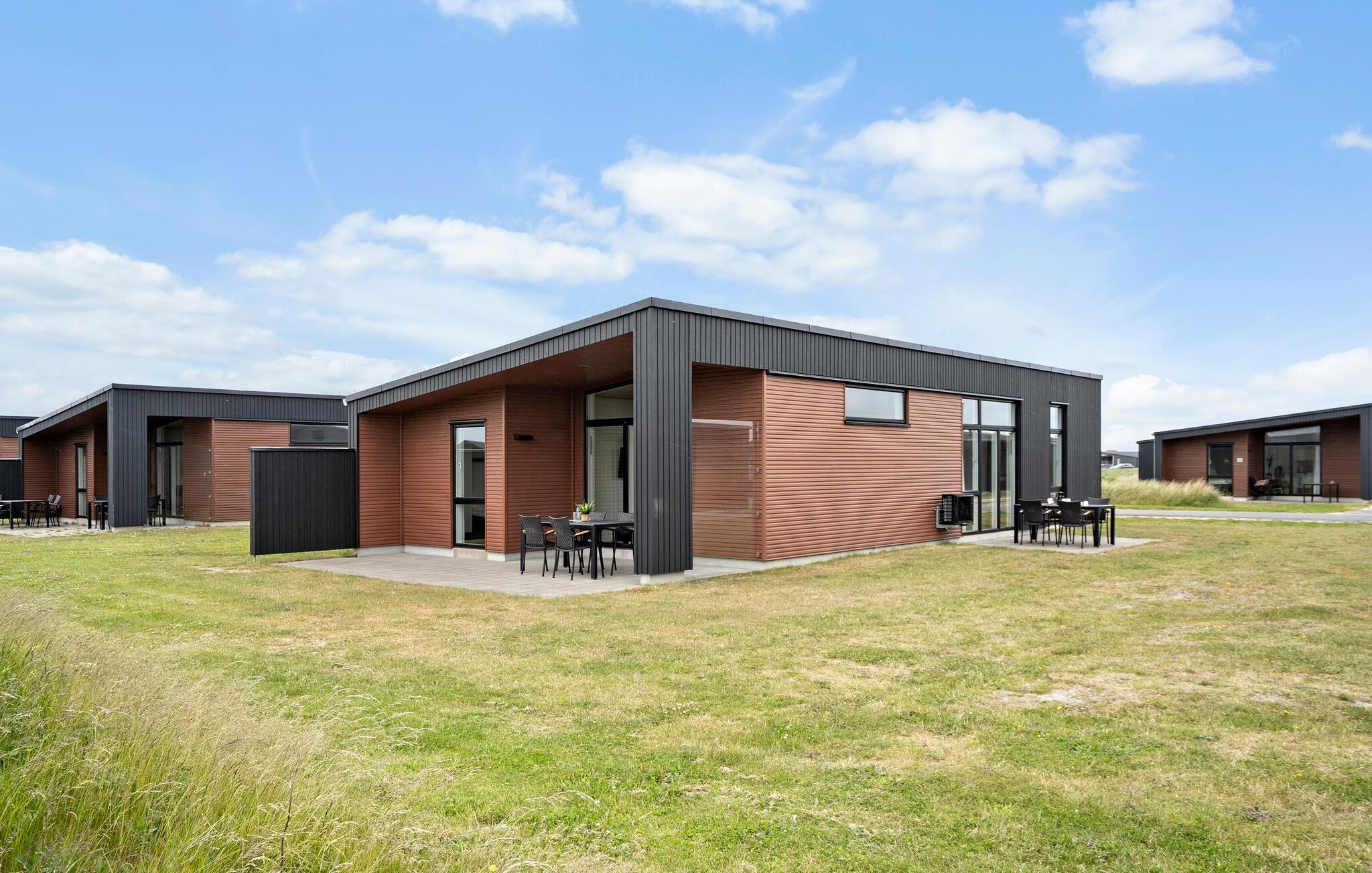 Modern vakantiehuis in Søndervig, dichtbij strand, duinen en golfbaan, perfect voor een ontspannen gezinsvakantie.