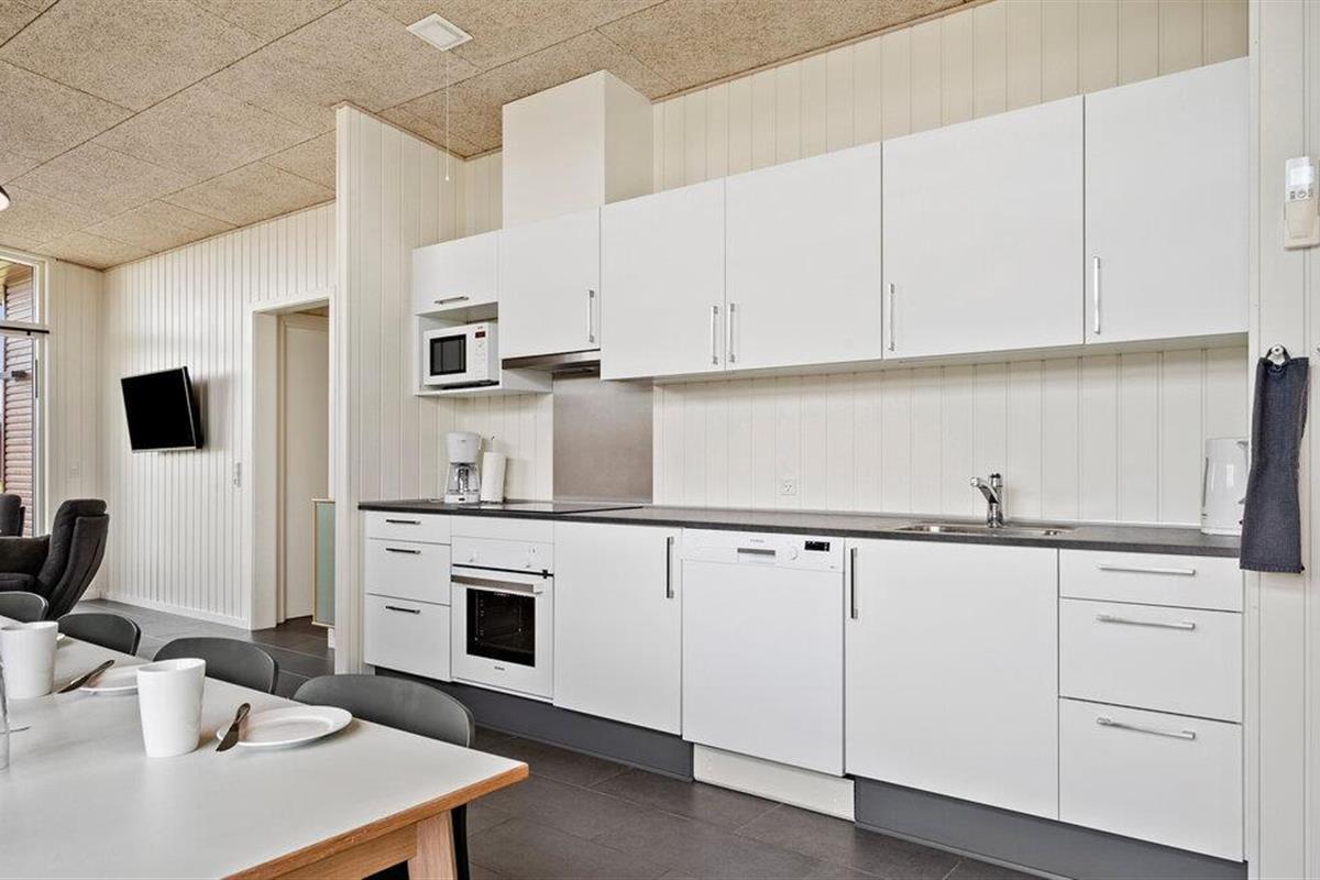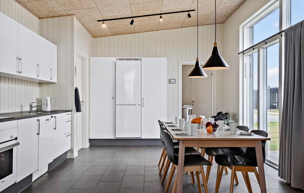 Geniet van je verblijf in dit comfortabele vakantiehuis, dat ideale omstandigheden biedt voor een ontspannen gezinsvakantie. Ervaar een sfeer waar functionaliteit en gezelligheid elkaar ontmoeten. De woonkamer heeft een open ontwerp en combineert een woonkeuken, eethoek en zithoek tot een uitnodigende ruimte. Maak het jezelf gemakkelijk op de grote bank of ontmoet elkaar aan de lange eettafel om samen spelletjes te spelen. Bereid je favoriete gerechten in de moderne keuken en profiteer van de lichte en vriendelijke sfeer dankzij de grote ramen.