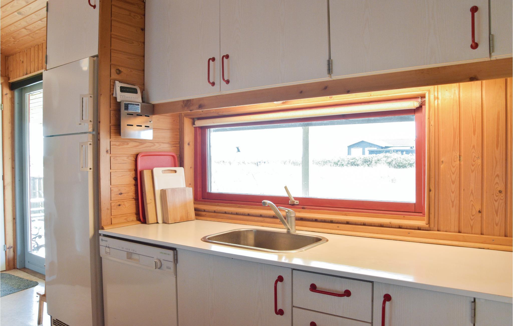 Het vakantiehuis ligt op een groot perceel met ruimte om te spelen met de bal en meer. Binnen vindt u drie slaapkamers en een keuken-woonkamer, evenals een badkamer met douche en wasmachine. Het is anderhalve kilometer naar Søndervig, dat in de zomer in het teken staat van het bruisende vakantieleven. Hier vindt u het grote activiteitencentrum Beach Bowl, cafés, restaurants, fietsverhuur, supermarkt, overdekt zwembad en minigolf. Ringkøbing ligt op 11 km van het huis, een leuk stadje met geplaveide straatjes, haven en voetgangerszone. Hvide Sande, een echt vissersstadje, ligt op 16 km afstand. Een sluis scheidt de stad met het fjord van de Noordzee. Hier kunt u goed vissen. Maar u kunt in de haven ook verse vis en zeevruchten kopen. In dit gebied vindt u een netwerk van wandel- en fietspaden. Surfers van alle niveaus vinden in de fjord ideale omstandigheden.