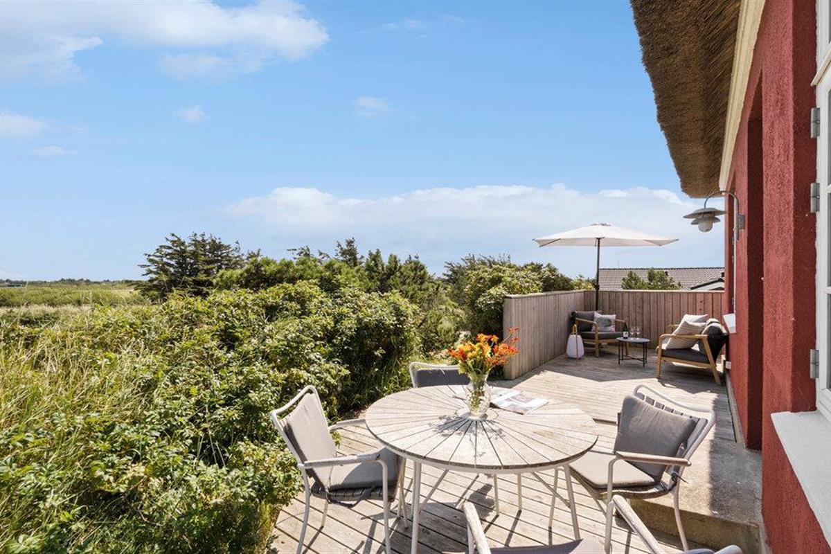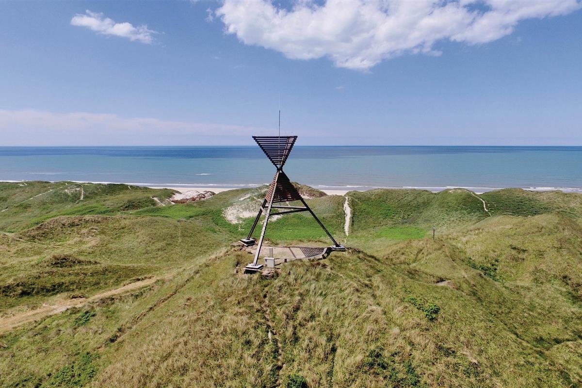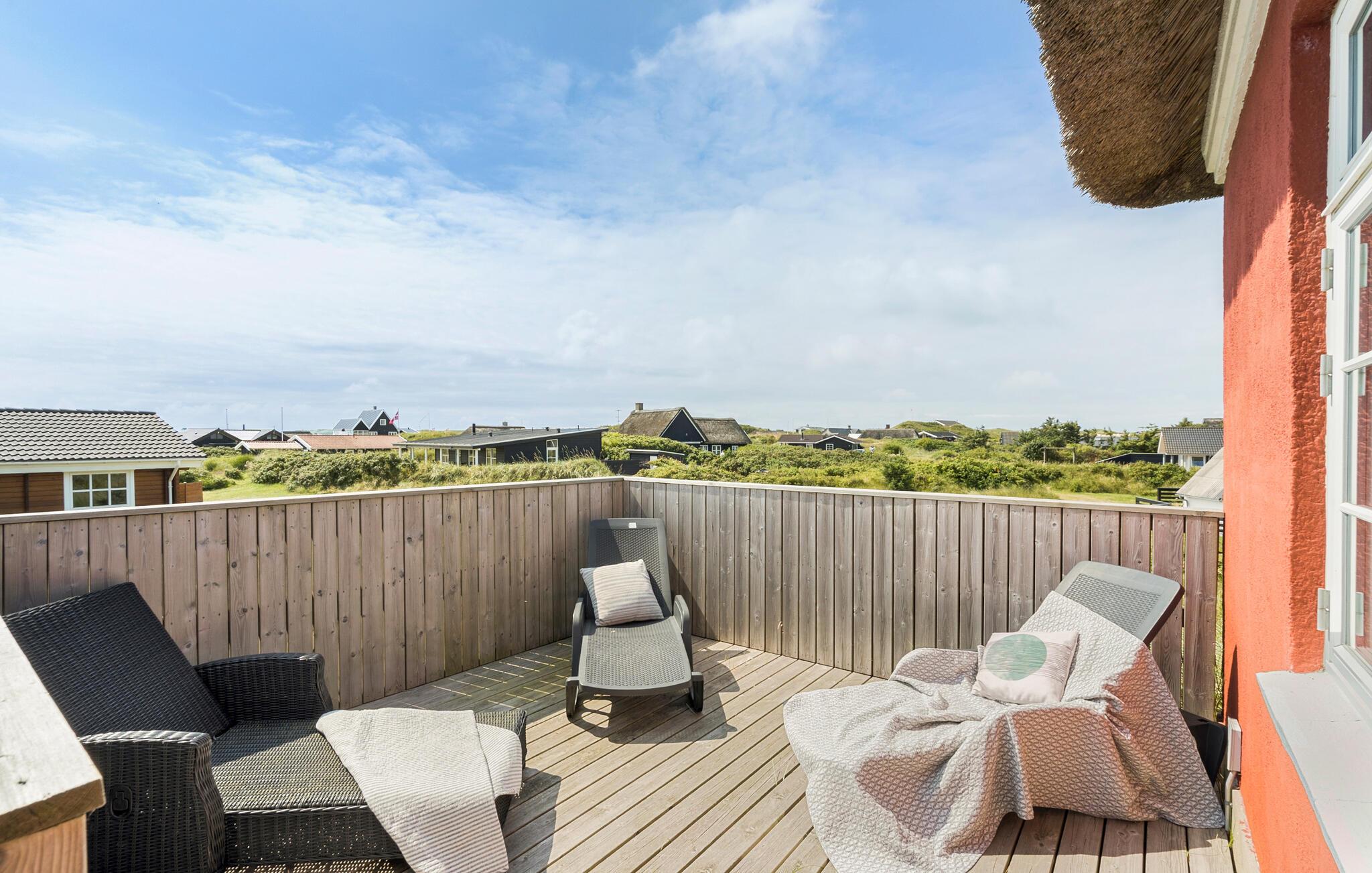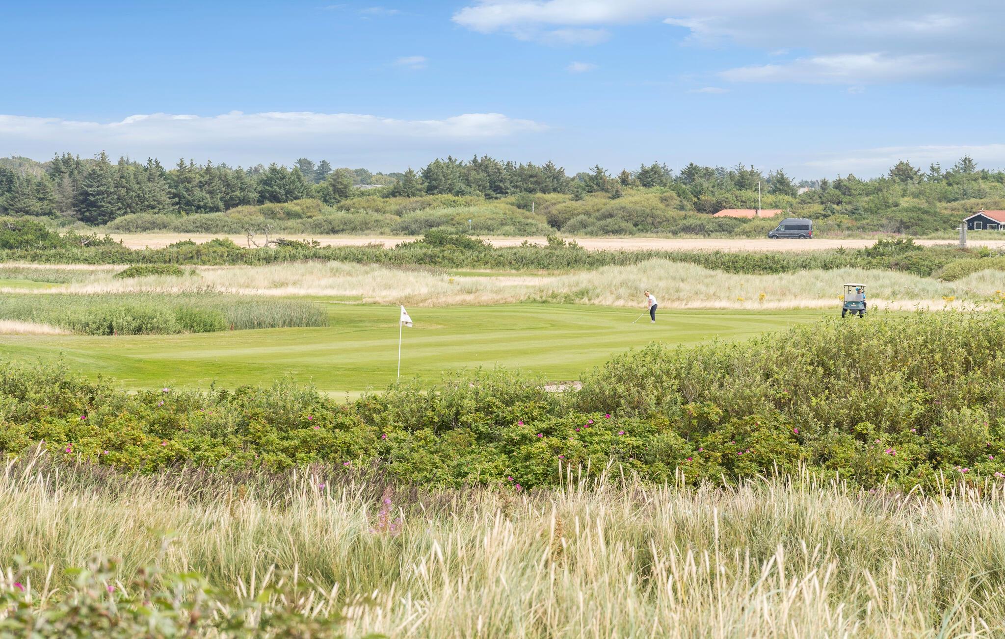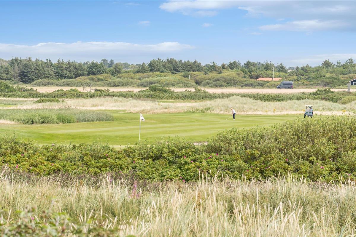 Gezellig vakantiehuis nabij Søndervig met uitzicht op duinen, vlakbij zee, golfbaan en wandelroutes voor een ontspannen verblijf.