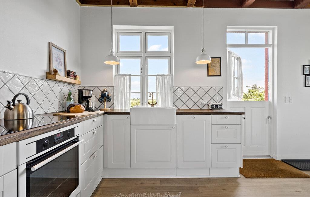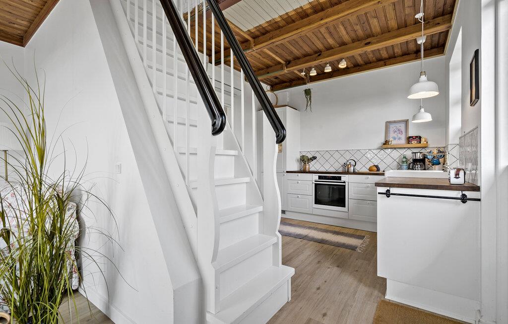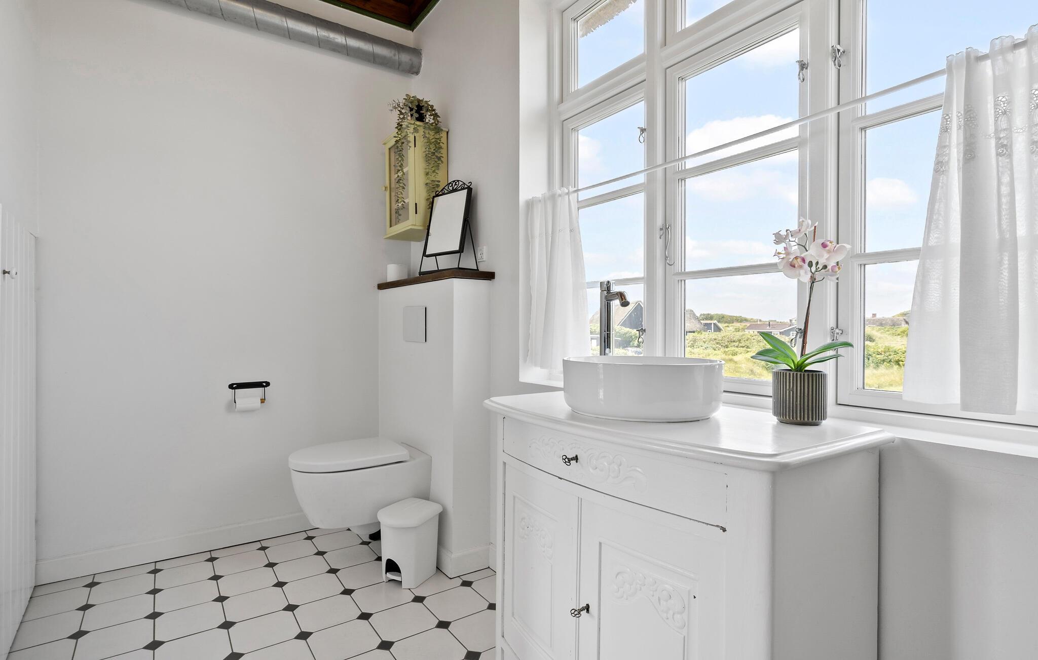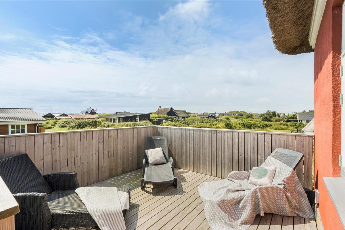 Dit gezellige vakantiehuis ligt op minder dan twee kilometer van het populaire vakantieoord Søndervig. Hier is in de zomer veel te beleven, met activiteiten voor alle leeftijden. Het is zeer geschikt voor een klein gezin. Twee open slaapkamers bevinden zich op de bovenverdieping, keuken en badkamer bevinden zich op de begane grond samen met een badkamer, inclusief douche. In dit gebied zijn er goede visgronden in verschillende vismeren en op slechts een paar minuten van het huis ligt een prachtige golfbaan. Er zijn hier kilometers aan wandel- en fietspaden, ze zijn goed aangelegd en onderhouden. Hier aan de Noordzee is het in elk seizoen prachtig. Er zijn prachtige zandsculpturen op het strand van Søndervig. Søndervig heeft ook interessante winkels en goede eetgelegenheden. Naar het noorden en zuiden toe lijkt het Noordzeestrand eindeloos en nodigt uit tot een fantastisch verblijf in elk jaargetijde. Het Rinkøbing Fjord is een aanrader voor surfers, fietsers en wandelaars. Als u Baggers Dæmning oversteekt, ervaart u een bijzonder mooie natuur. Als u van zilte, frisse lucht houdt, is de Noordzeekust de juiste vakantiebestemming. Let op: Het vakantiehuis is vanwege de ligging en de trap naar de eerste verdieping niet geschikt voor gasten die slecht ter been zijn.