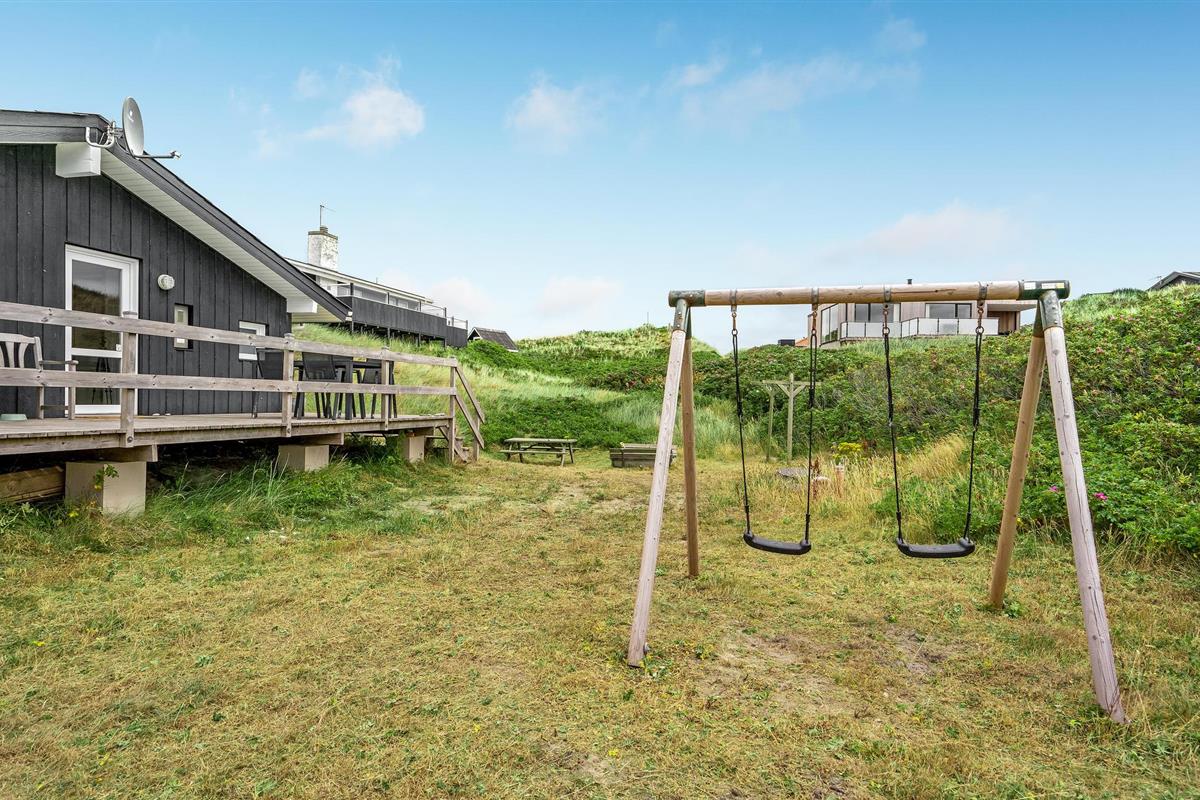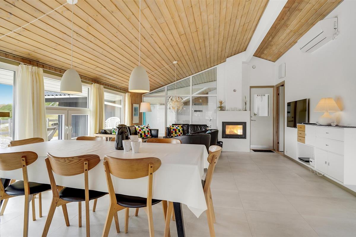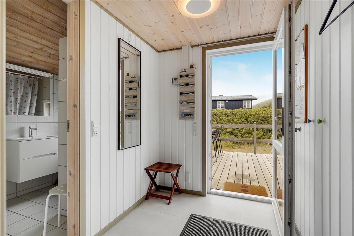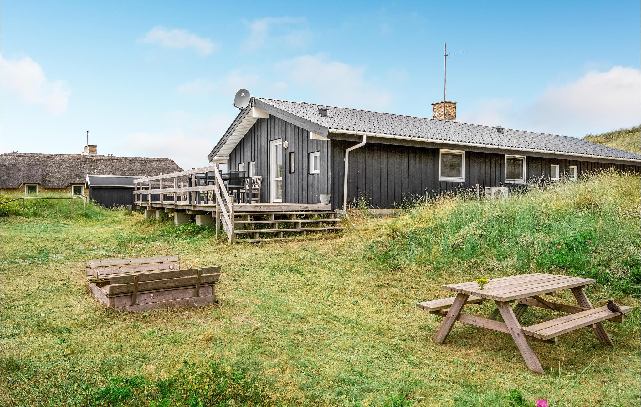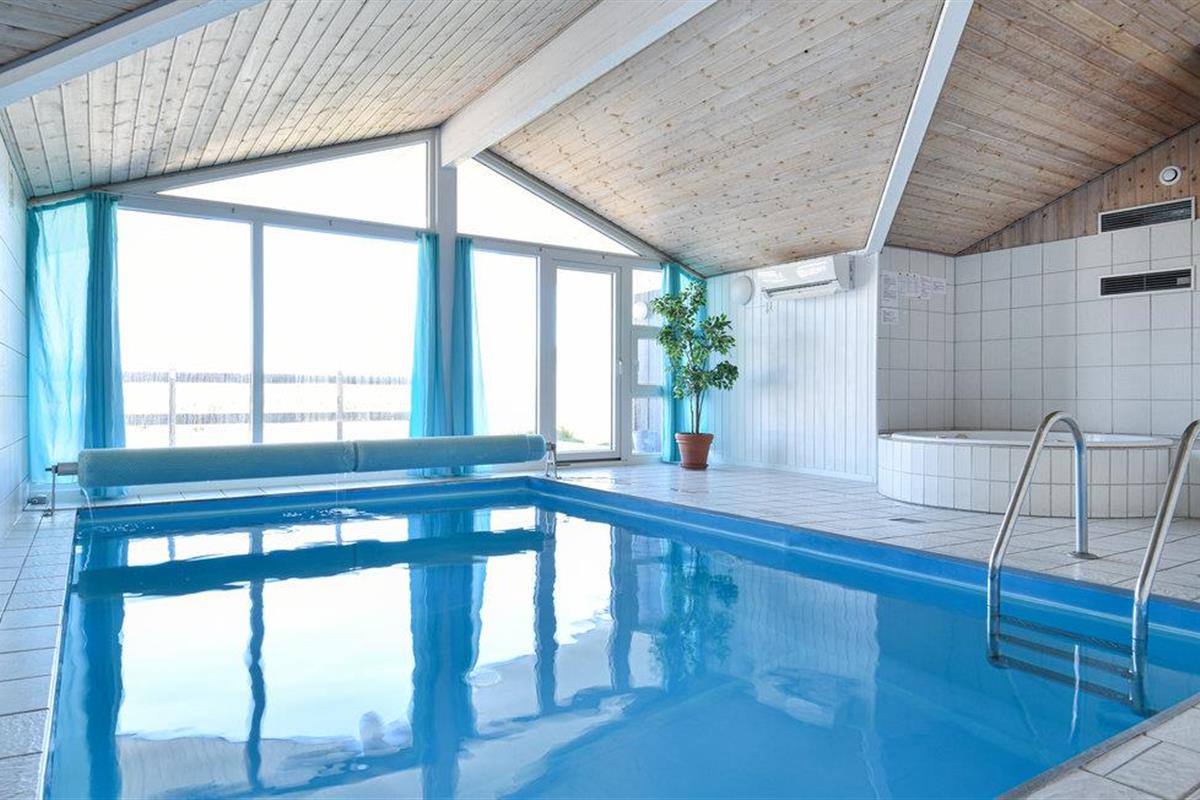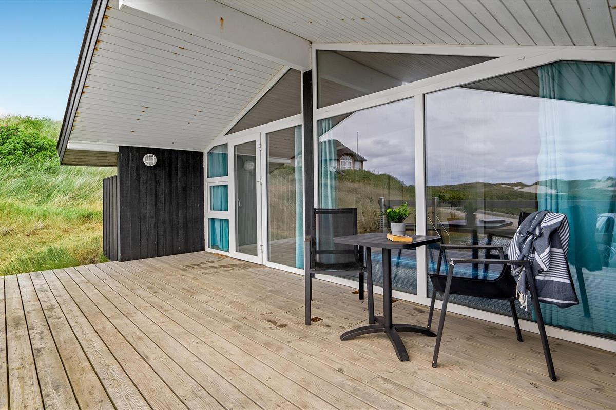 Dit vakantiehuis ligt aan de bebouwingslijn met uitzicht op het unieke duinlandschap. U loopt vanaf het huis over een eigen pad, ca. 200 m door de witte duinen, naar het strand richting zee. De blauwe lucht en de schuimende zee vormen een sprookjesachtige combinatie. Bij het huis hoort een groot terras, waar u kunt genieten van zonsondergangen en lange, heldere zomeravonden. U kunt hier ook spetteren in het grote zwembad of genieten van de onderwatermassage in de whirlpool. In het huis vindt u ook een gezellige houtkachel. Het huis is gerenoveerd en bevat warmtepompen voor het zwembadwater en de verwarming. In de woonkamer staat een grote flatscreen-tv, een Bluetooth-muzieksysteem met radio en cd. Hoewel openbare voorzieningen in de buurt zijn, kunt u hier genieten van een rustige en ontspannen vakantie. Er is uitzicht op zee vanaf een duin achter het huis. Het ligt niet ver van Søndervig als u iets wilt doen, zoals koffie drinken, bowlen, minigolf en tennis. Een golfbaan met 27 holes is vlakbij. Voor vissers zijn er hier veel mogelijkheden voor een goede vangst, in Put & Take meren of op het strand. Søndervig herbergt winkels met een goed assortiment en vermaak voor toeristen in de zomer. In Ringkøbing, het alom bekende 'gelukkige' stadje van Europa, staan in het centrum ongeveer 150 huizen uit 1820. Bezoek ook 'Strandgaarden', het museum over het leven van vissers en boeren in de jaren 1800, en het 'Vissershuis' in Hvide Sande. Daar vindt u de grootste sluis van Denemarken.