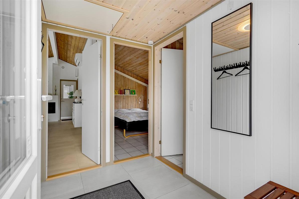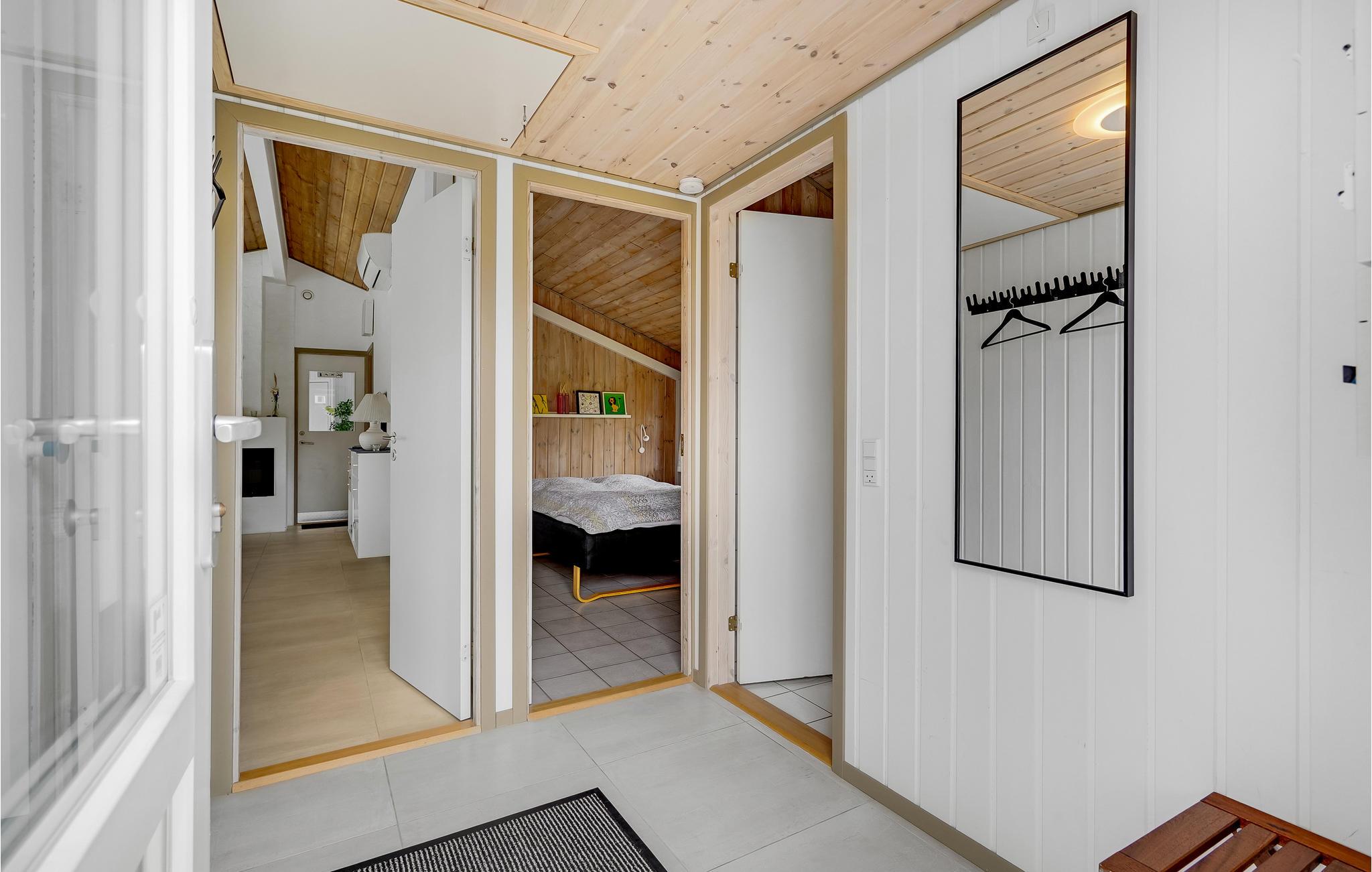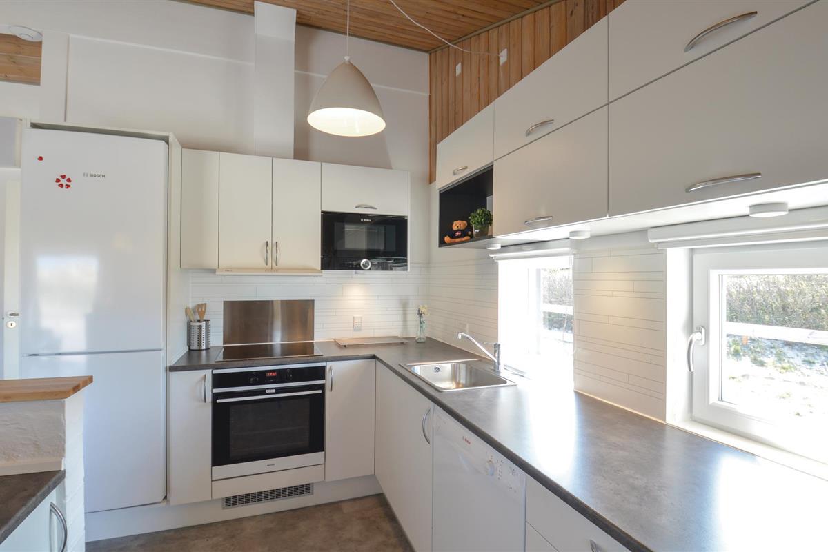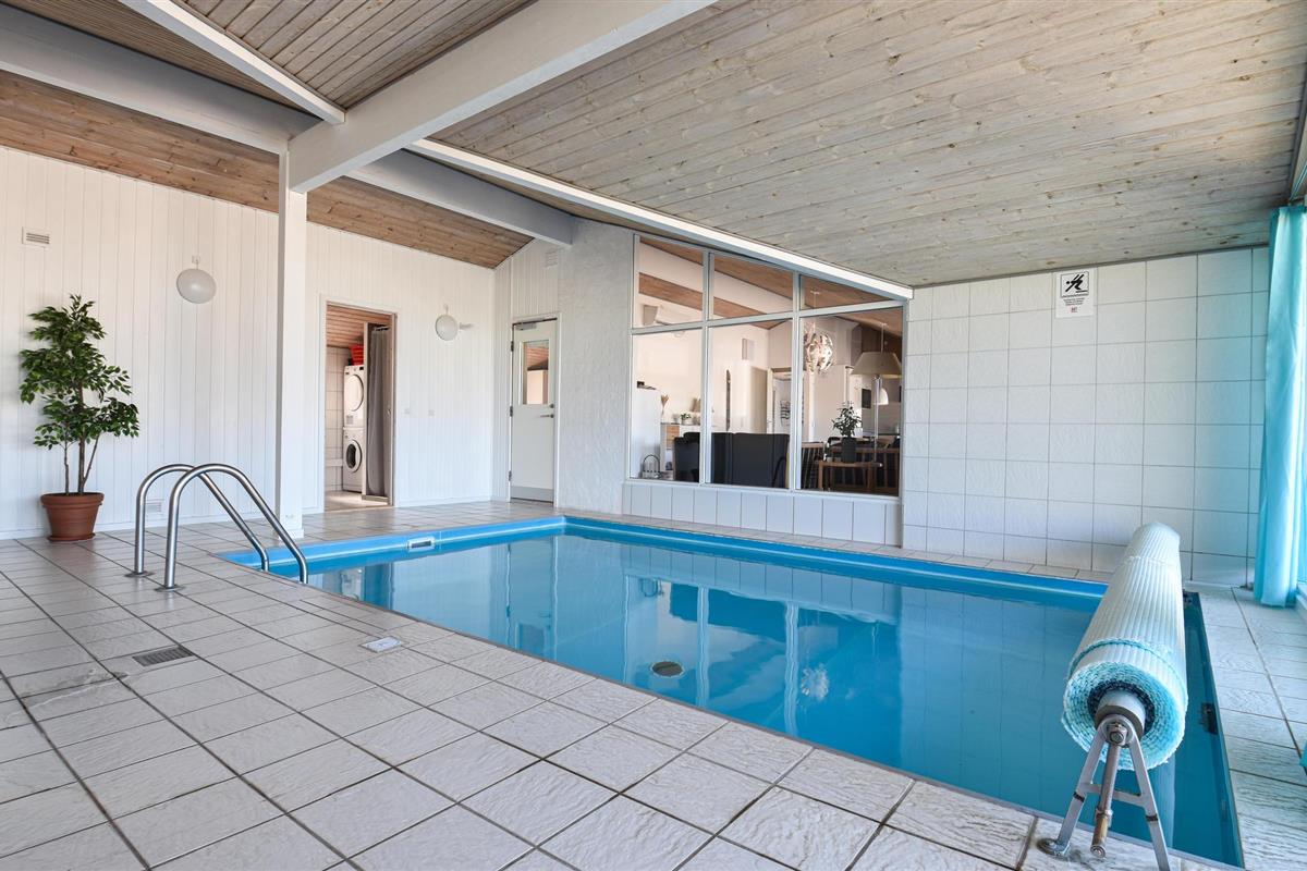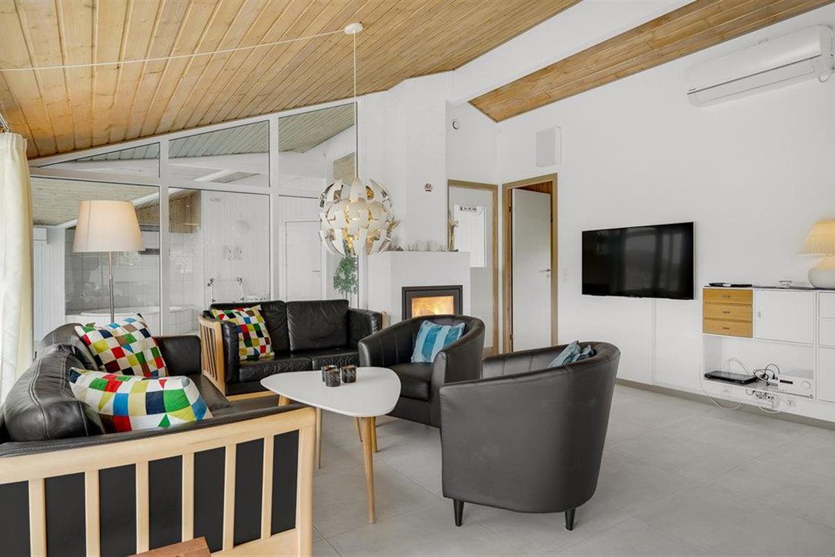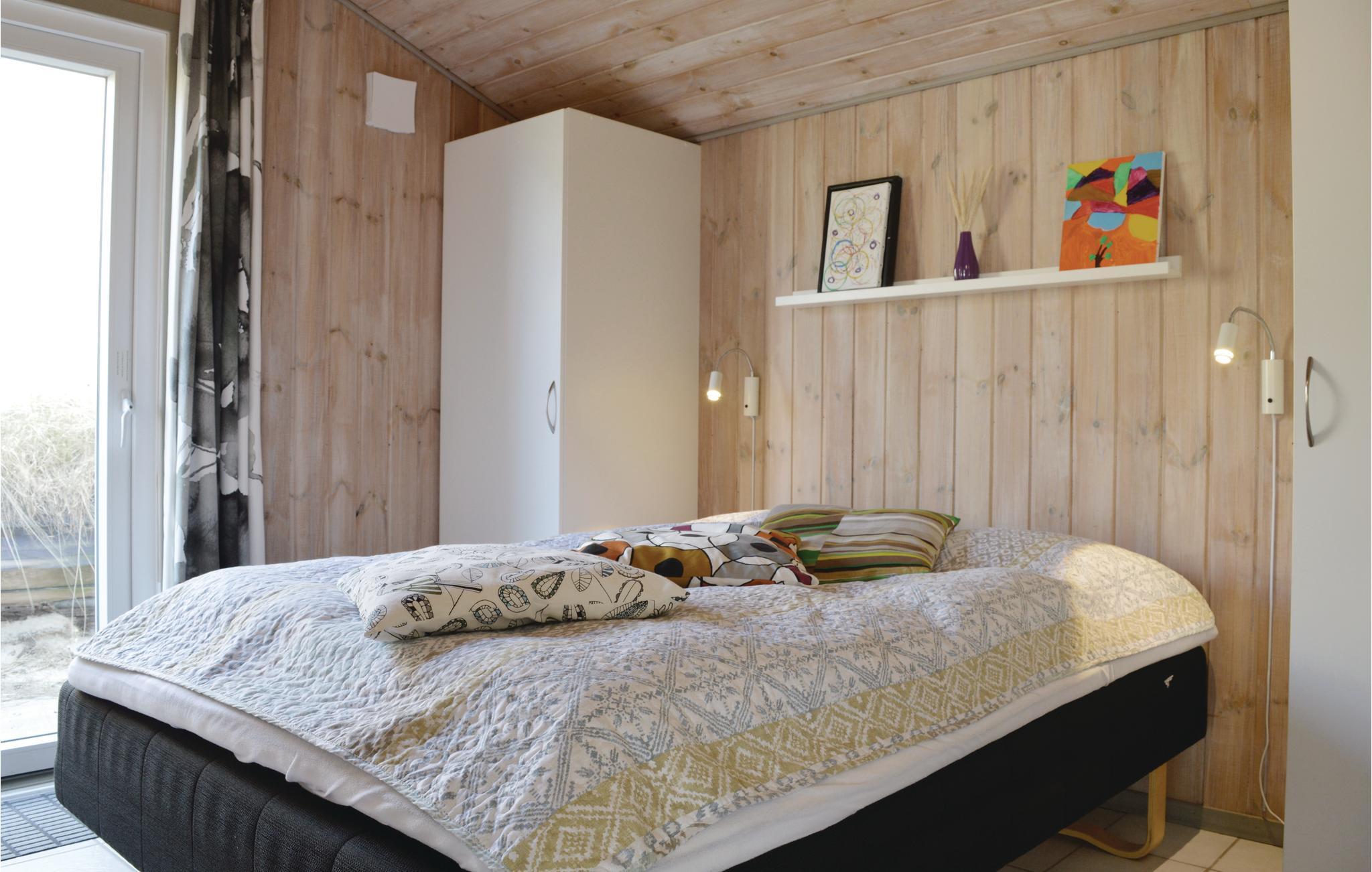 Dit vakantiehuis ligt aan de bebouwingslijn met uitzicht op het unieke duinlandschap. U loopt vanaf het huis over een eigen pad, ca. 200 m door de witte duinen, naar het strand richting zee. De blauwe lucht en de schuimende zee vormen een sprookjesachtige combinatie. Bij het huis hoort een groot terras, waar u kunt genieten van zonsondergangen en lange, heldere zomeravonden. U kunt hier ook spetteren in het grote zwembad of genieten van de onderwatermassage in de whirlpool. In het huis vindt u ook een gezellige houtkachel. Het huis is gerenoveerd en bevat warmtepompen voor het zwembadwater en de verwarming. In de woonkamer staat een grote flatscreen-tv, een Bluetooth-muzieksysteem met radio en cd. Hoewel openbare voorzieningen in de buurt zijn, kunt u hier genieten van een rustige en ontspannen vakantie. Er is uitzicht op zee vanaf een duin achter het huis. Het ligt niet ver van Søndervig als u iets wilt doen, zoals koffie drinken, bowlen, minigolf en tennis. Een golfbaan met 27 holes is vlakbij. Voor vissers zijn er hier veel mogelijkheden voor een goede vangst, in Put & Take meren of op het strand. Søndervig herbergt winkels met een goed assortiment en vermaak voor toeristen in de zomer. In Ringkøbing, het alom bekende 'gelukkige' stadje van Europa, staan in het centrum ongeveer 150 huizen uit 1820. Bezoek ook 'Strandgaarden', het museum over het leven van vissers en boeren in de jaren 1800, en het 'Vissershuis' in Hvide Sande. Daar vindt u de grootste sluis van Denemarken.