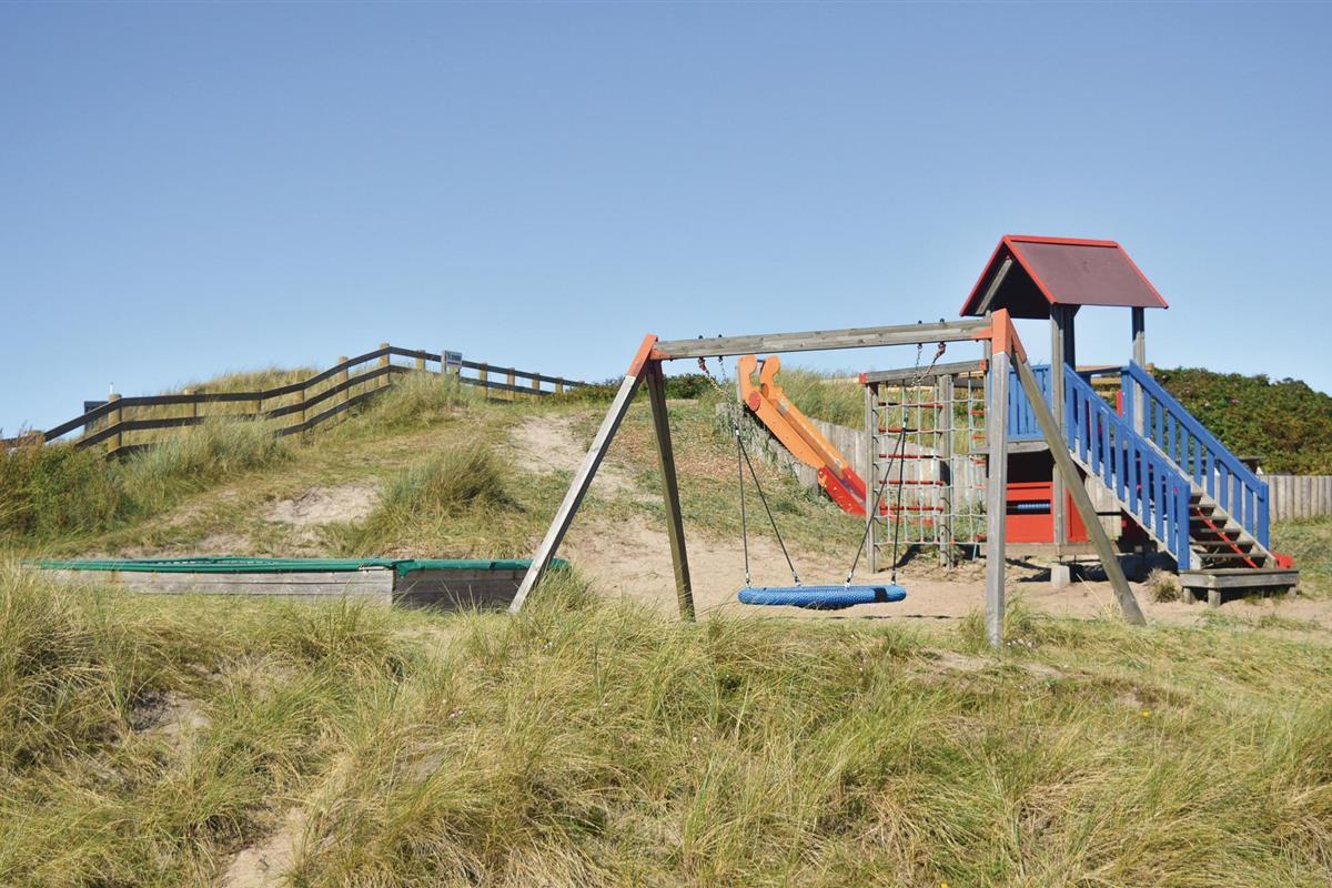 Slechts een paar meter scheiden je van de indrukwekkende Noordzee, waarvan de ruige schoonheid het hoogtepunt van de regio is. Maak lange strandwandelingen of geniet van de frisse zeelucht voor de deur. Voor gezinnen is er ook een speeltuin in de buurt die veel ruimte biedt voor avontuur voor kinderen. Je hebt ook gratis toegang tot het overdekte zwembad in Hvide Sande.