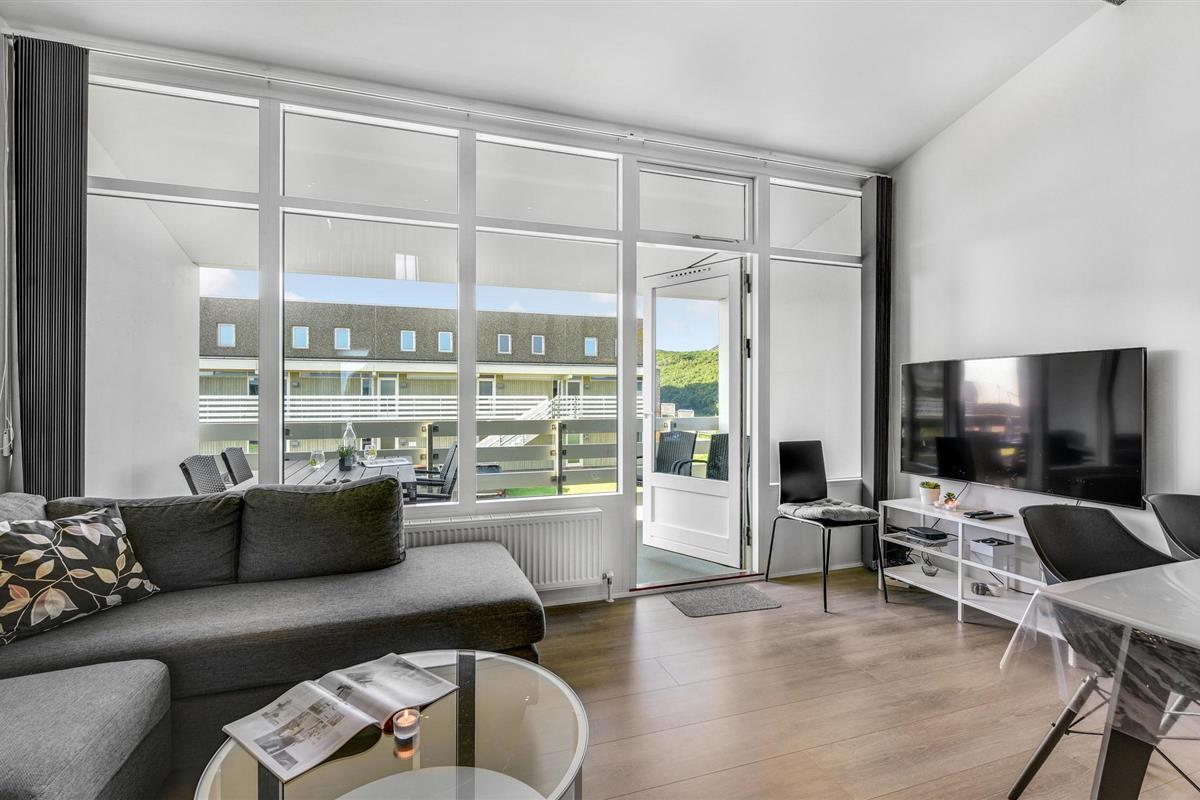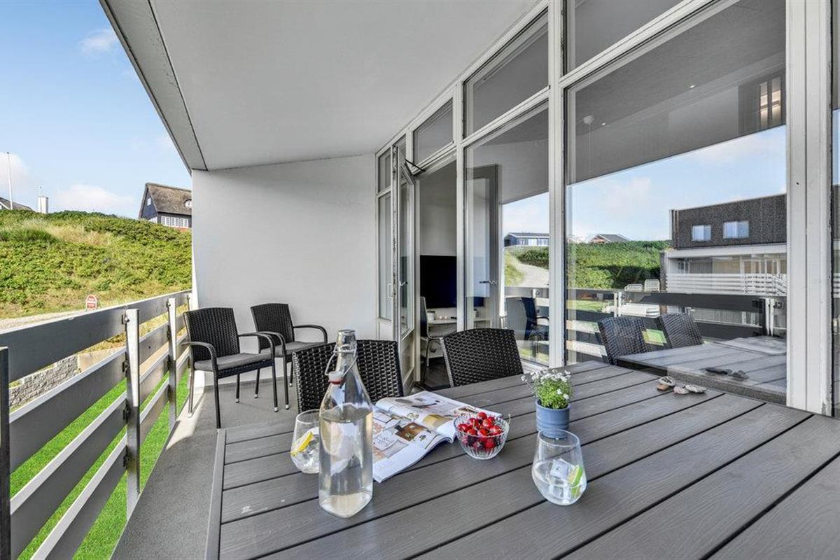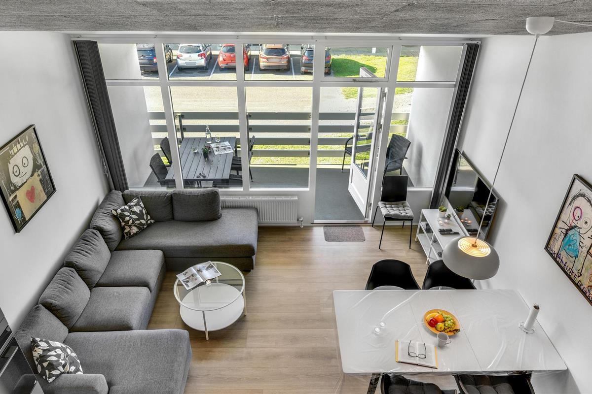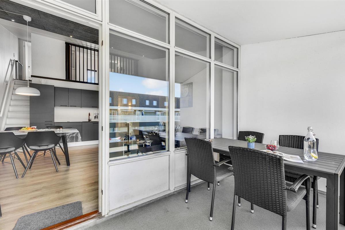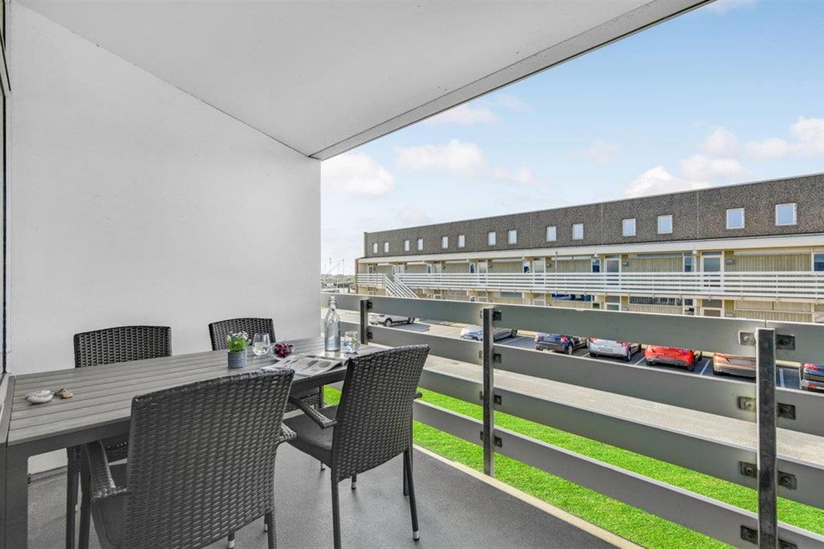 Vanuit de woonkamer heeft u toegang tot het balkon van de flat. Geniet hier van het eerste kopje koffie van de dag of breng de lange Deense zomeravonden buiten door met een glas wijn.