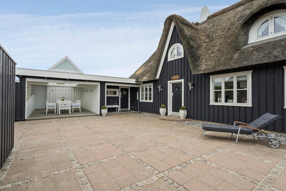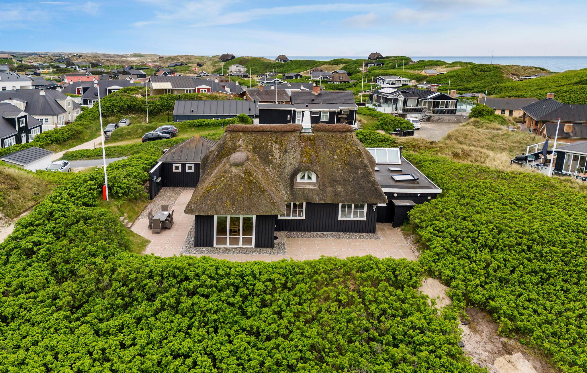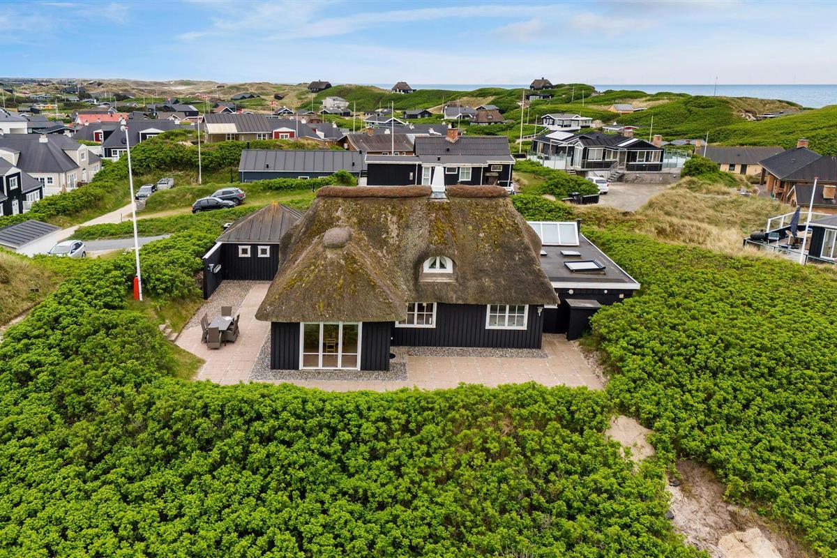 Stijlvol vakantiehuis met rieten dak en zeezicht in Søndervig, perfect voor een ontspannen kustvakantie.