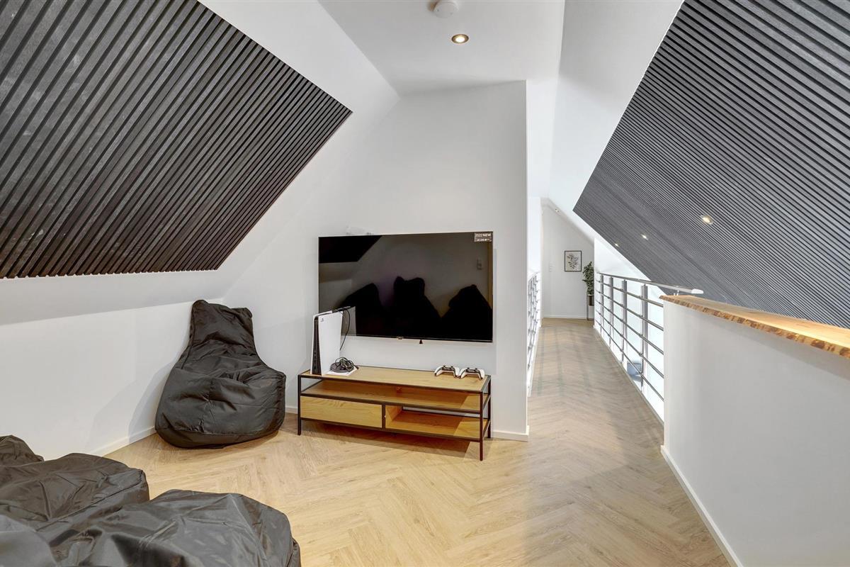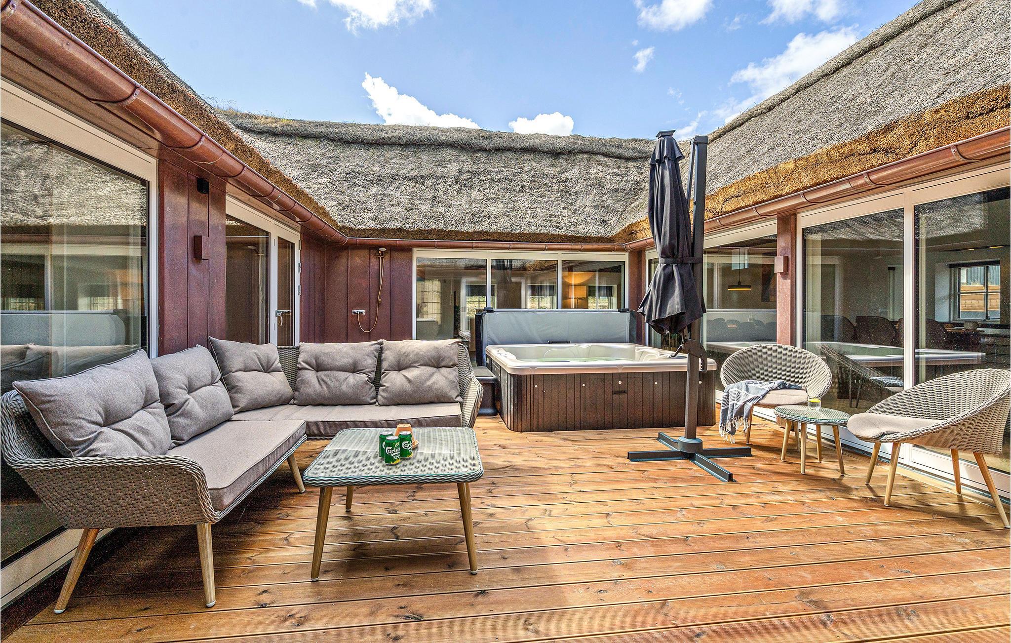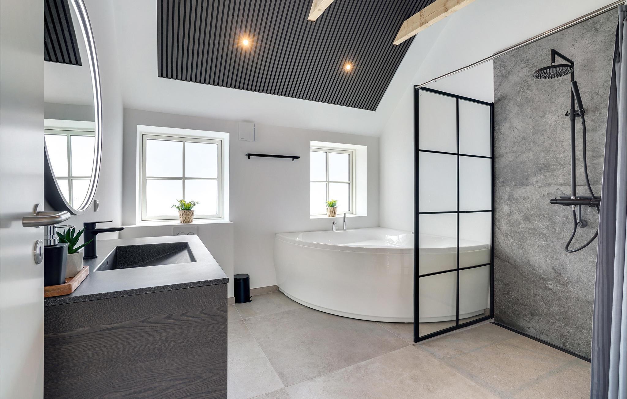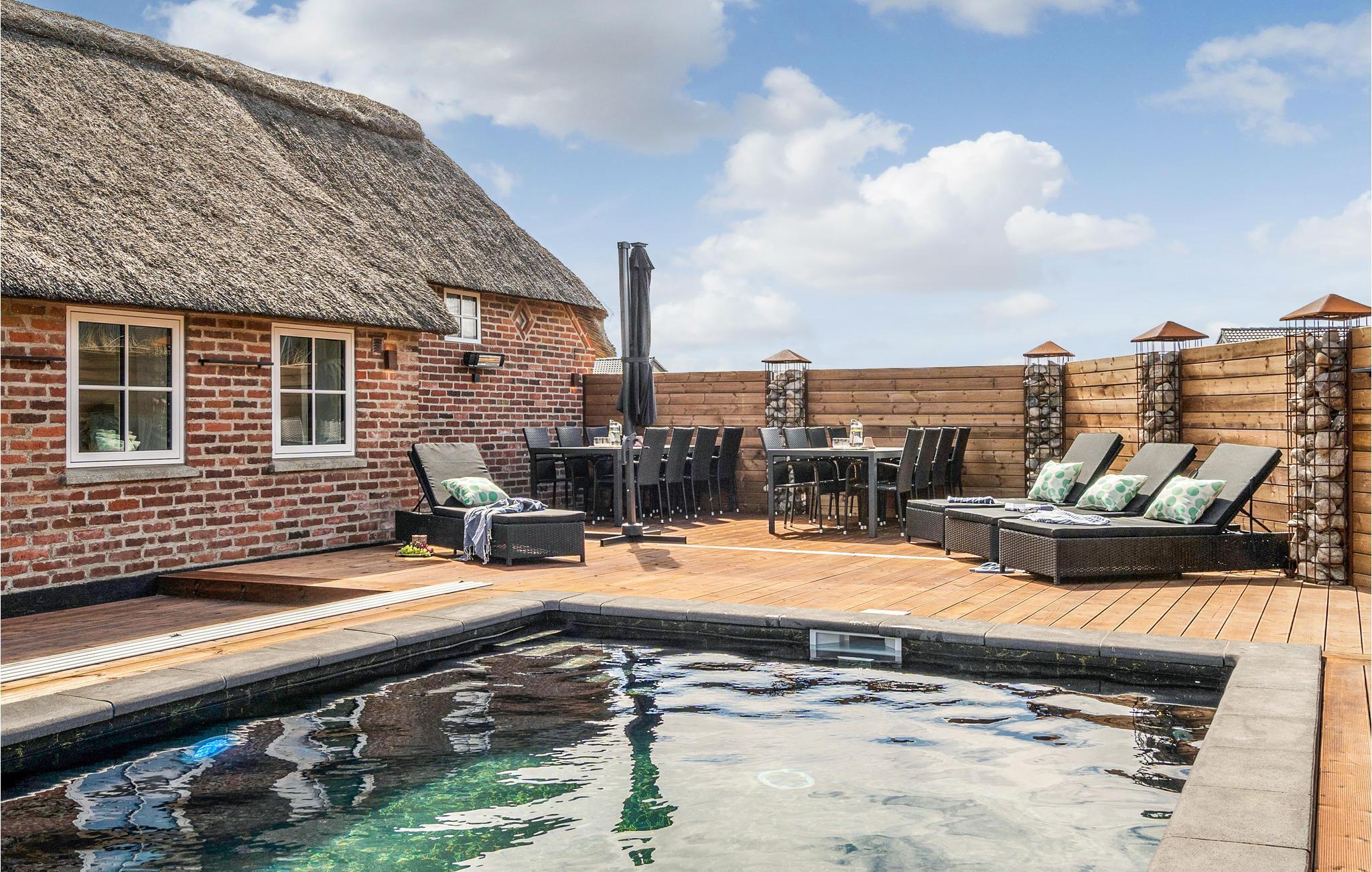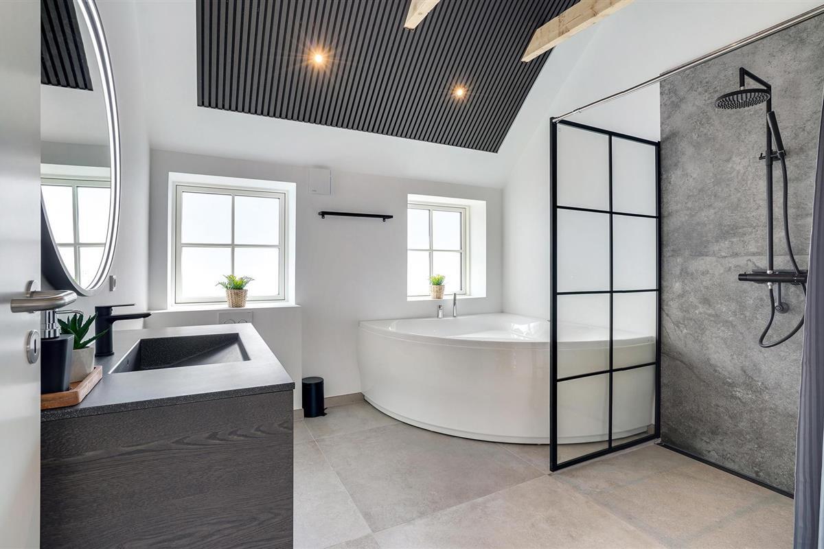 De wellnesservaring gaat verder in het midden van het huis, waar je een atriumbinnenplaats vindt met een houten terras. Hier bevindt zich de buitenspa van het vakantiehuis naast het loungemeubilair, waar je gezellige uurtjes kunt doorbrengen. Vanaf hier is er directe toegang tot de tweede sauna van het vakantiehuis. Een wellnessavond in huis ligt hier dus voor de hand!