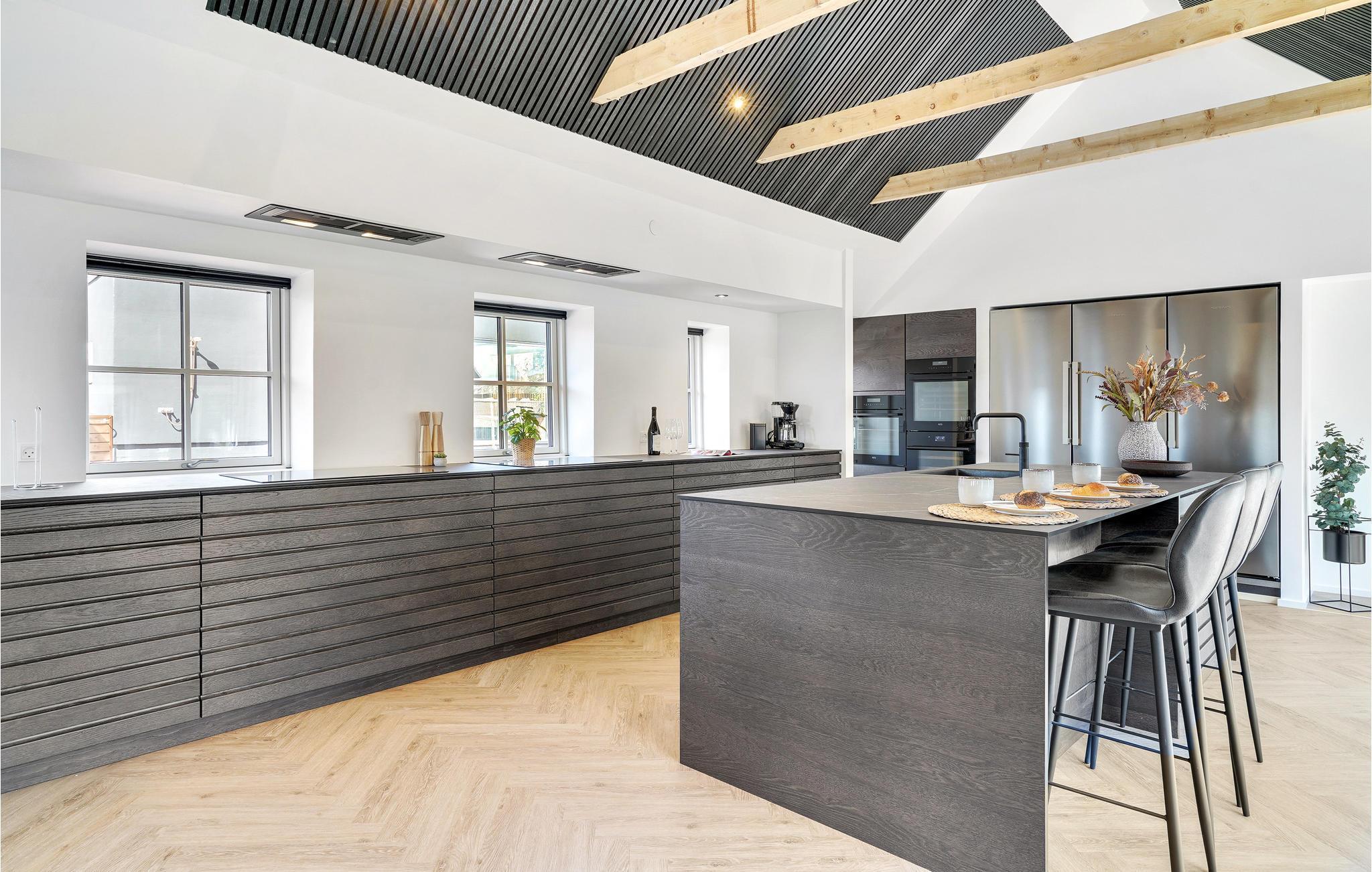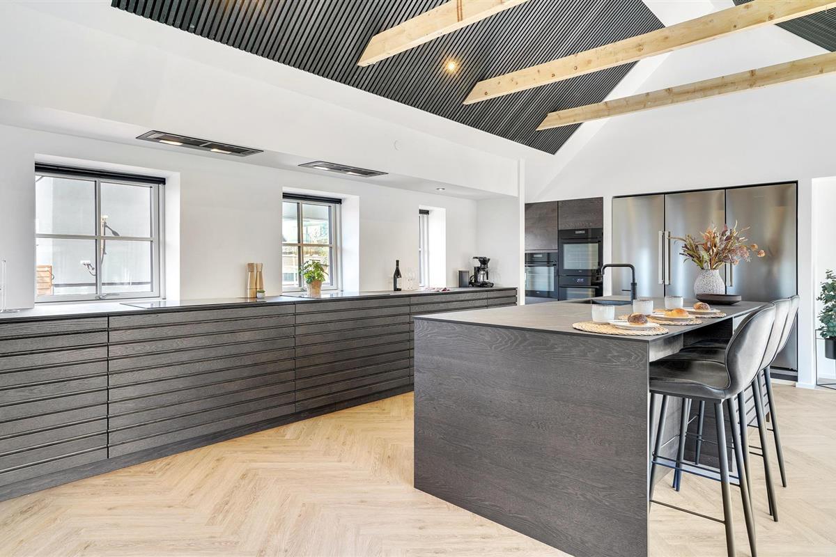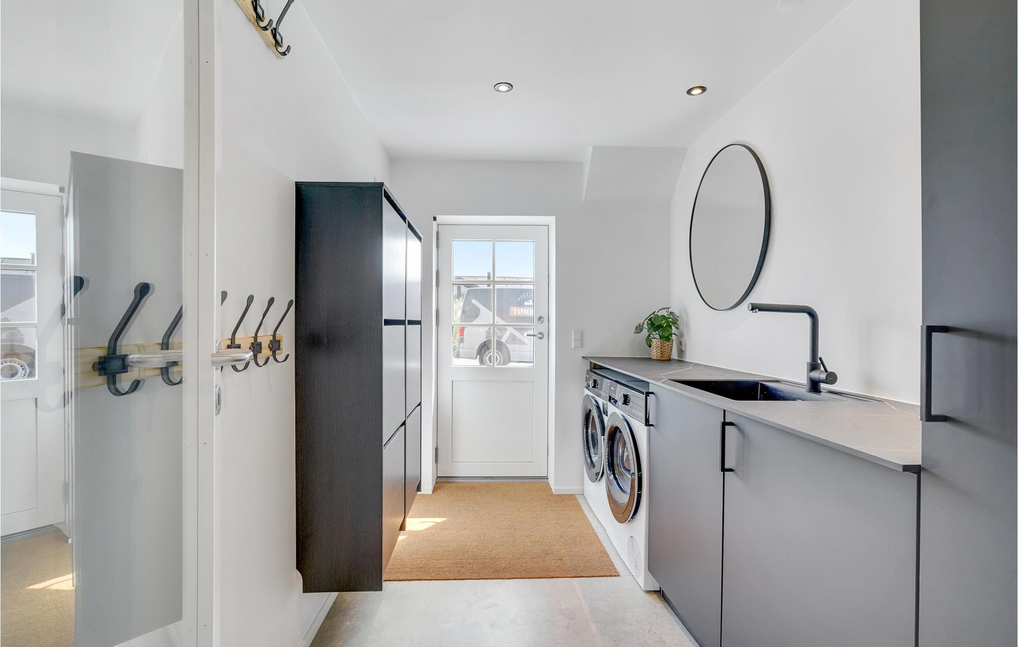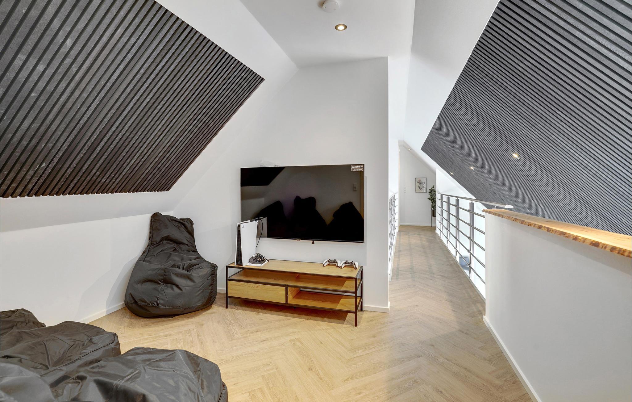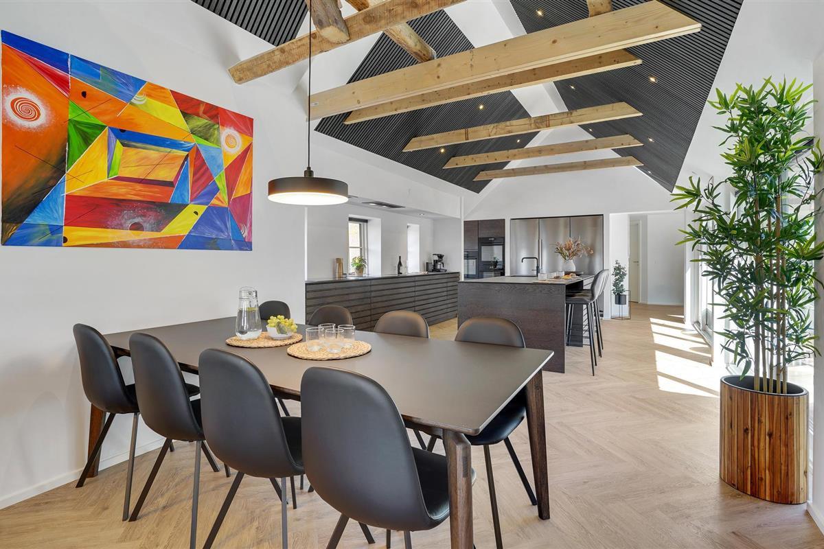 Het middelpunt van het luxe huis is de grote keukenruimte, waar de keuken en het woongedeelte zijn gecombineerd tot één grote, lichte ruimte. In de goed uitgeruste keuken is er genoeg ruimte om te koken en de mogelijkheid om met de hele bende te dineren aan de lange eettafel. Er is ook een comfortabele bank in de kamer waar je kunt ontspannen en genieten van een film, een spelletje of iets anders.
