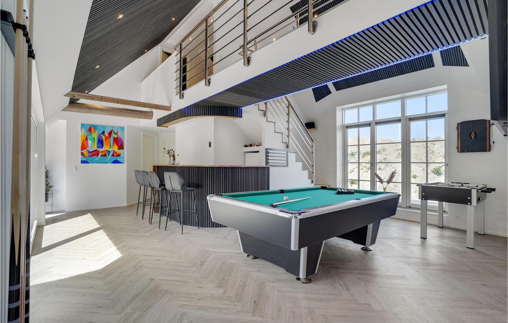 Als de gezellige avonden niet worden doorgebracht in de wellnessfaciliteiten, kunnen ze worden doorgebracht in de activiteitenruimte van het vakantiehuis. De activiteitenruimte bevindt zich in een eigen huisje, waar je kunt biljarten, darten, tafelvoetballen en tafeltennissen.