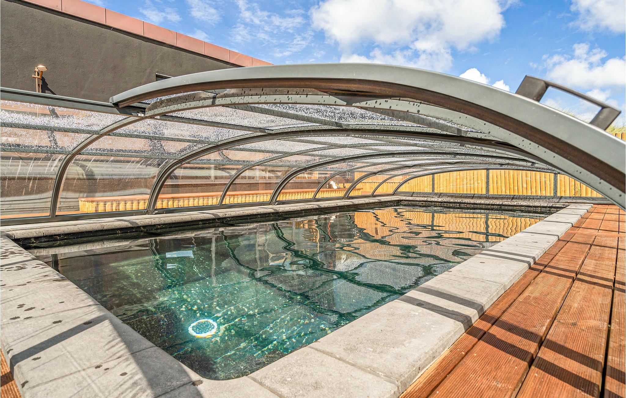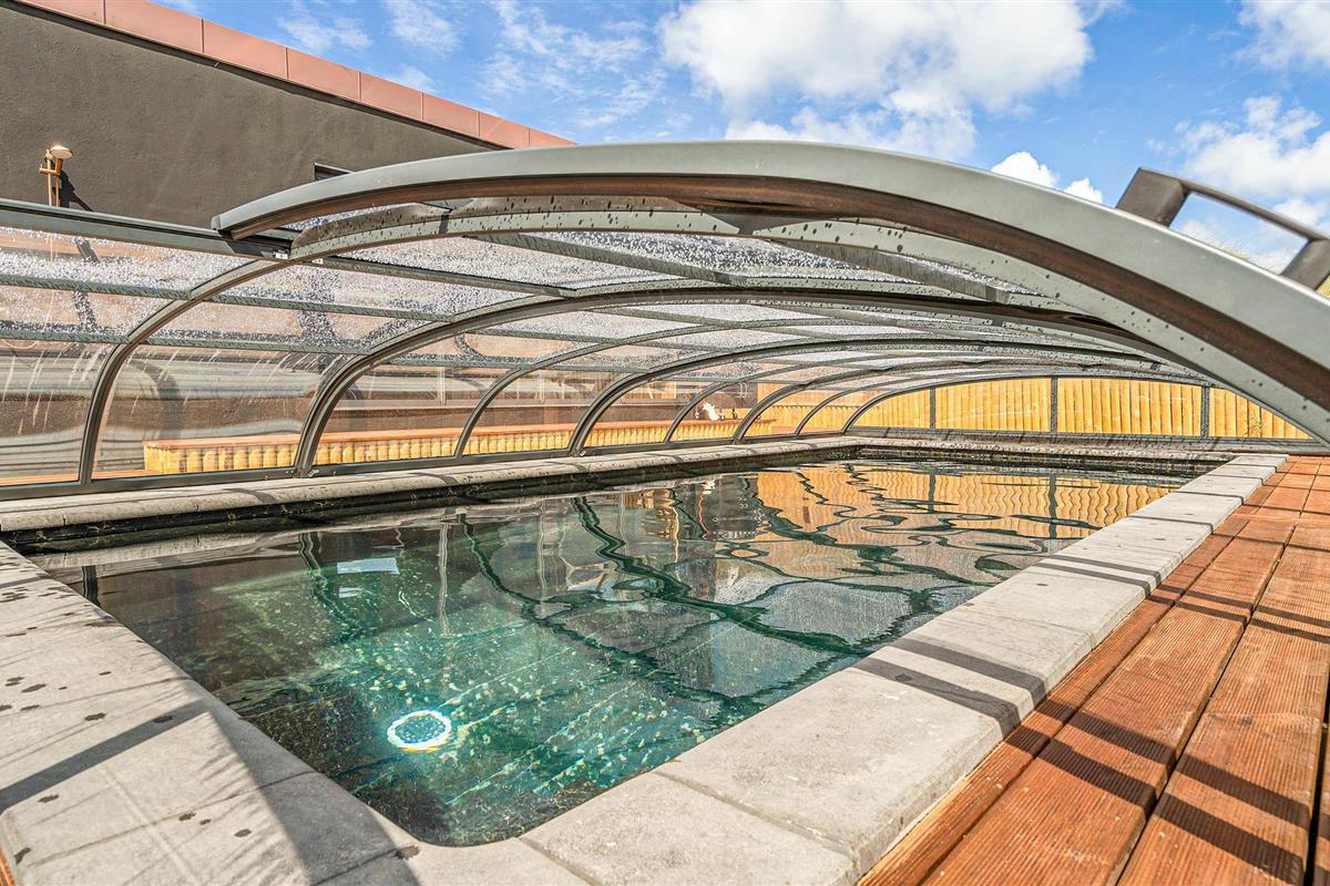 Naast de barbecue, het tuinmeubilair en het prachtige uitzicht, is er ook een buitensauna en een buitenzwembad. Na een duik in de buitenlucht kun je genieten van een verfrissing onder het overdekte gedeelte van het terras bij het zwembad.
