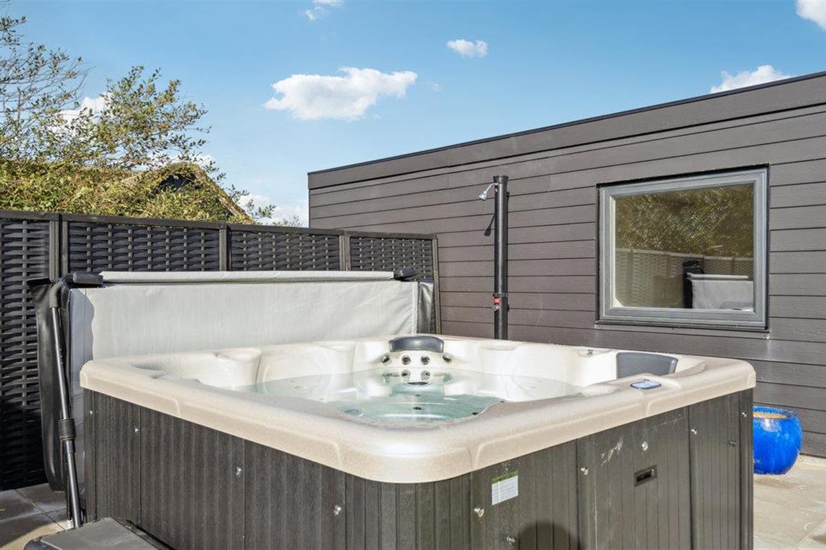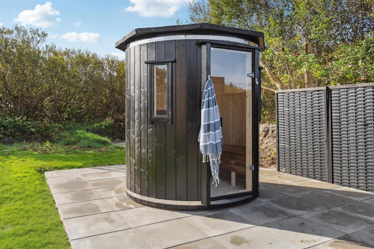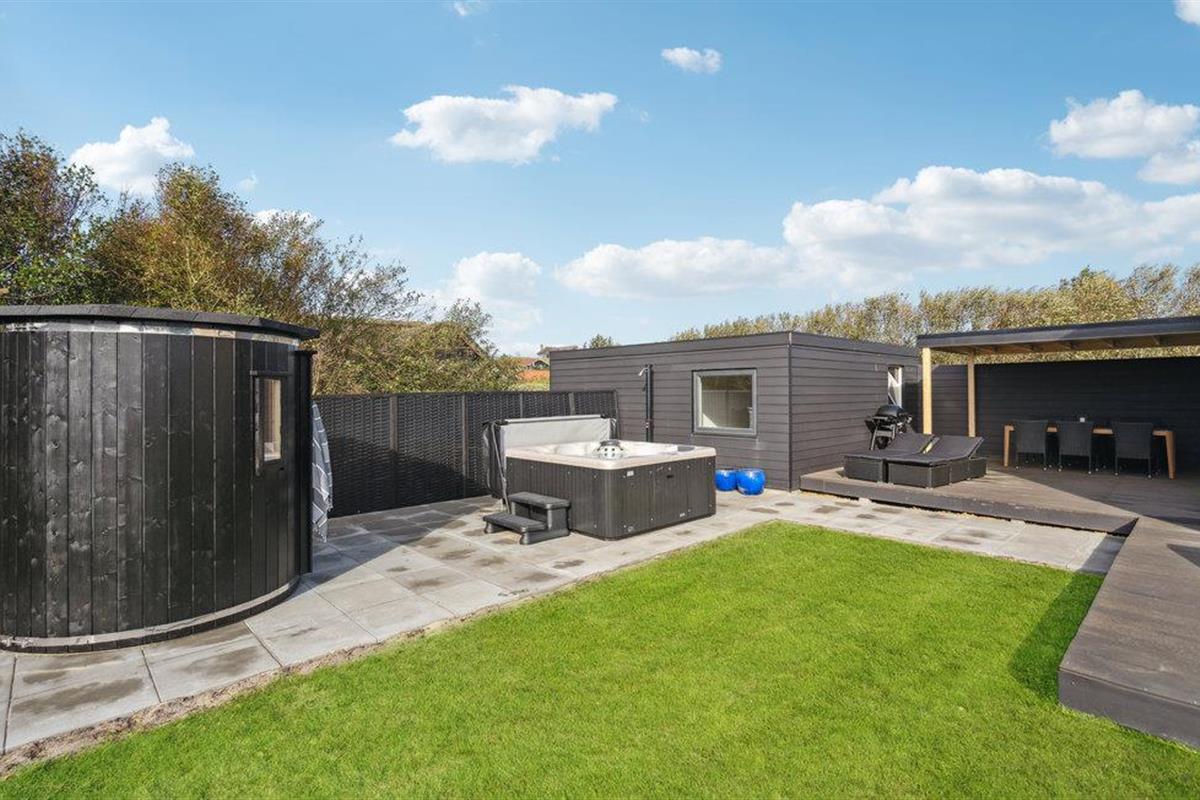 De buitenruimte van het huis heeft ook veel te bieden. Neem een zonnebad op het terras en geniet van de lange zomeravonden buiten met heerlijke gerechten van de barbecue. Ontspan in de buitensauna en jacuzzi aan het einde van een heerlijke vakantiedag.
