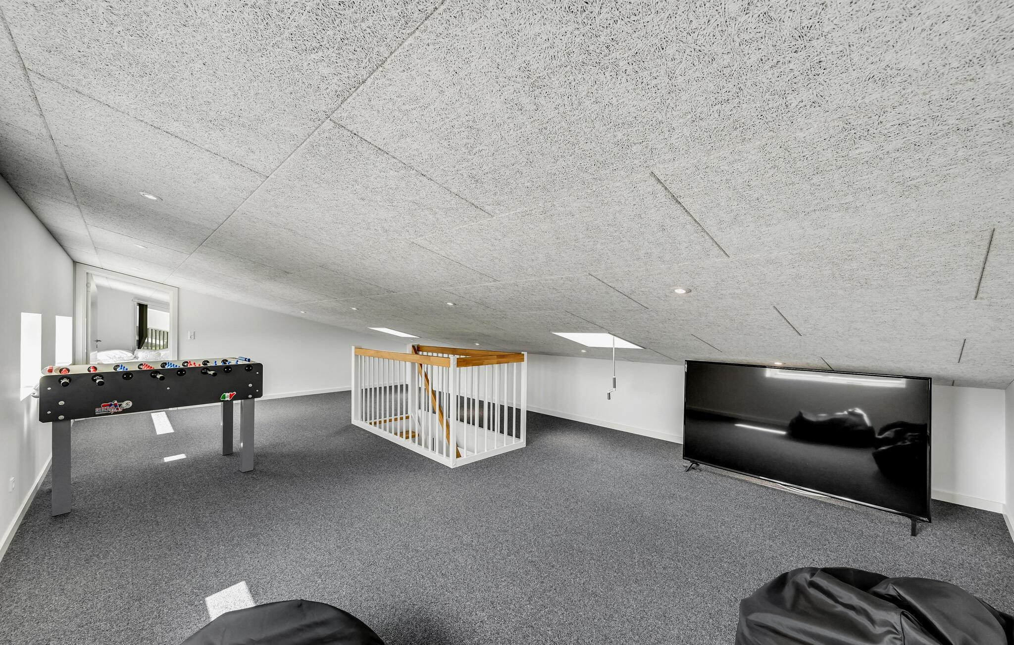 Dit sensationele vakantiehuis is de ideale plek voor langverwachte familiereünies of gezellige dagen met een grote groep vrienden. Verheug je op vrolijke kookevenementen en maaltijden in grote groepen, trakteer jezelf op ontspanning in de sauna terwijl anderen zich vermaken met tafelvoetbal of airhockey, organiseer gezellige tv-avonden of gebruik de vele knusse schuilplaatsen voor rustige uurtjes lezen.