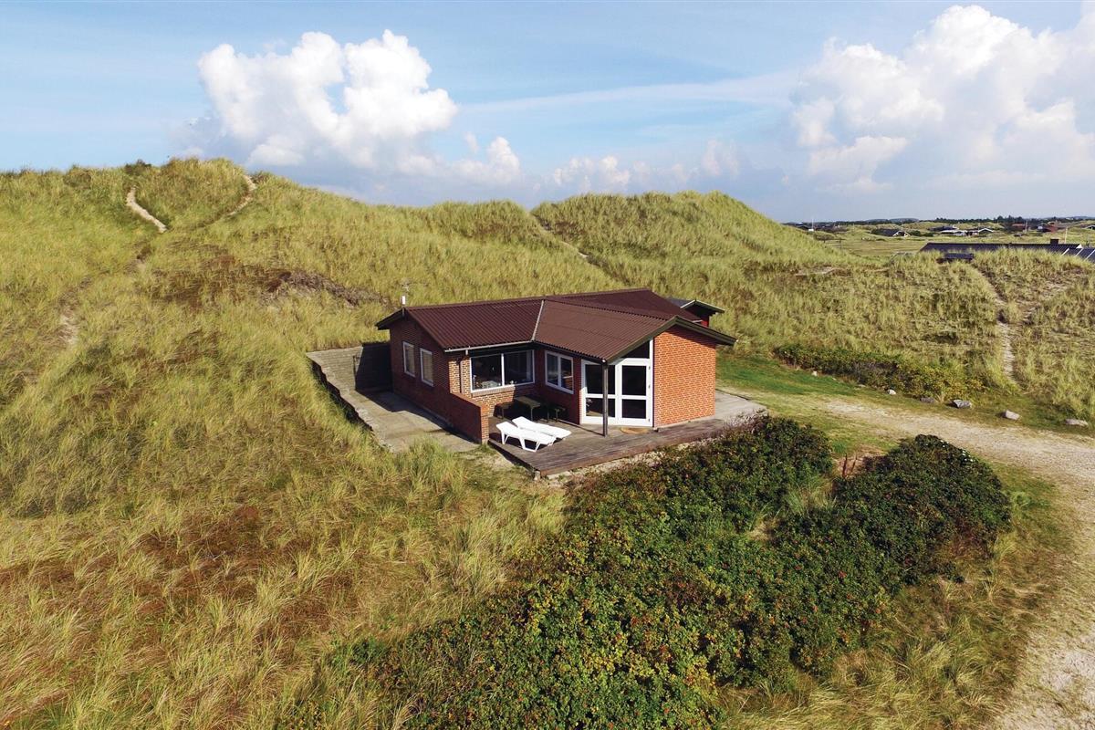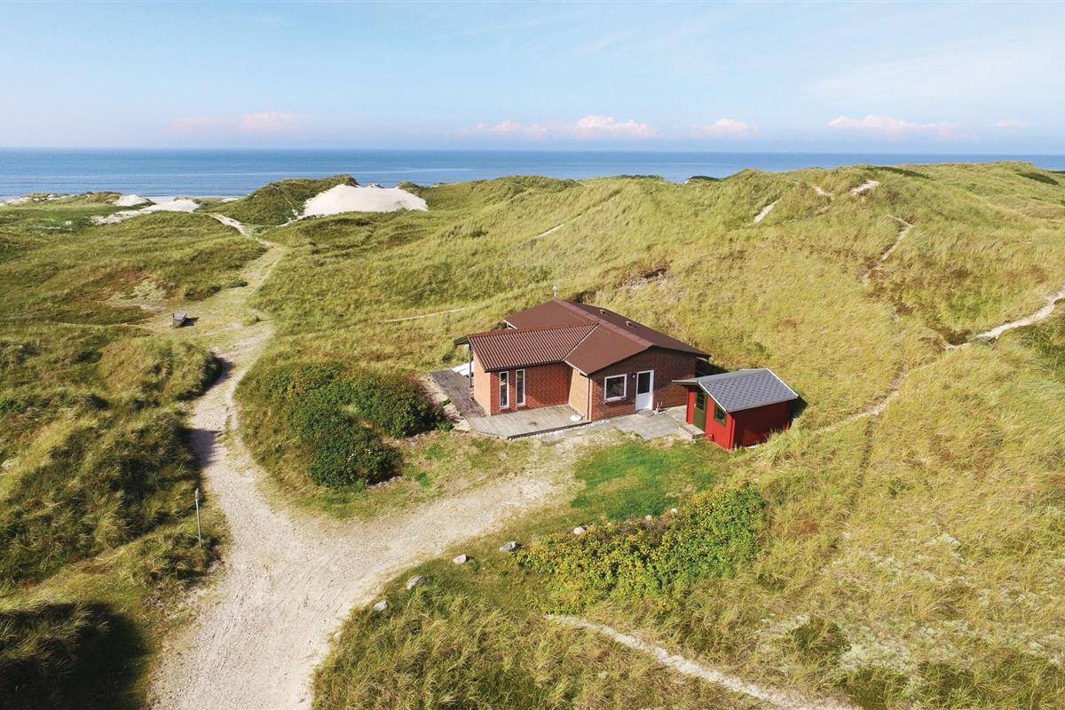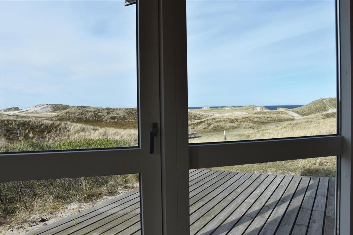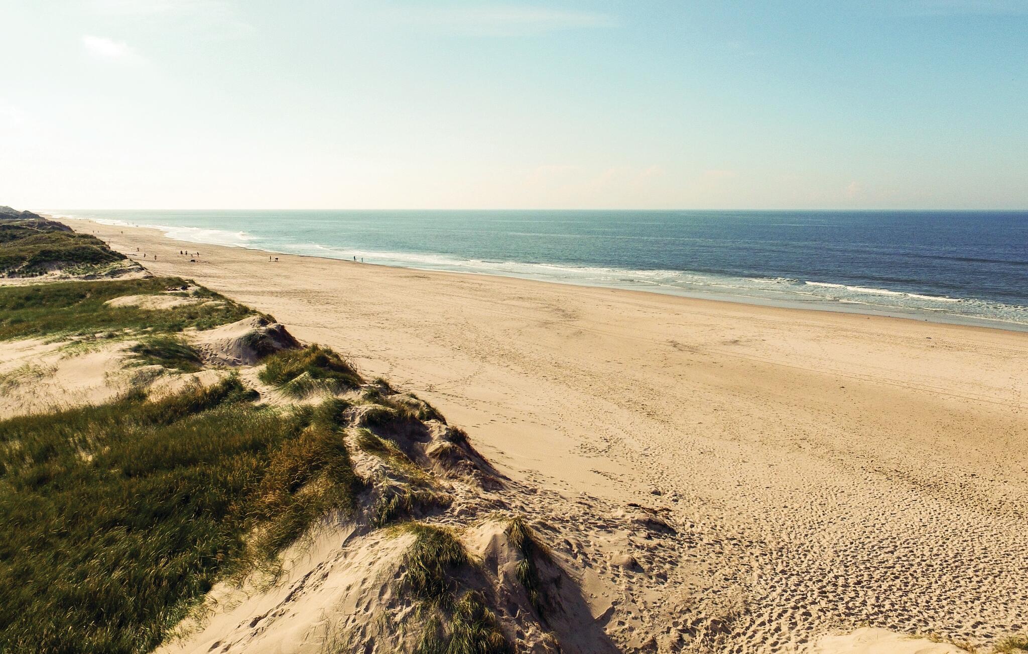Uniek panoramisch uitzicht en dus een perfect gekozen vakantiehuis! Geniet van het prachtige uitzicht vanuit deze beeldschone omgeving. Het huis is de laatste van een groep voor de Noordzee en slechts enkele minuten lopen van de kust. De inrichting is gezellig. Er zijn twee slaapkamers, een mooie badkamer en een woon-, keukengedeelte met uitzicht op de duinen en de zee. U kunt van dit uitzicht genieten tijdens het eten en vanaf de bankgroep, maar ook vanaf het terras. Op slechts 3,5 km afstand lonkt Søndervig met goede restaurants en sportieve activiteiten. Er is daar een goed netwerk van wandelpaden, u wordt niet gestoord door verkeer. Tijdens een uitstapje naar Ringkøbing ervaart u rustige geplaveide straatjes. Hvide Sande heeft ook de flair van een vissersstadje en een visafslag in de haven. Elke leeftijdsgroep voelt zich thuis aan de Noordzeekust.