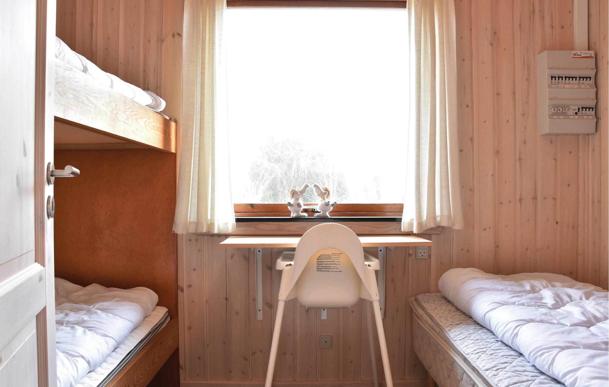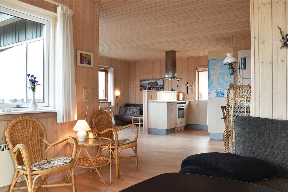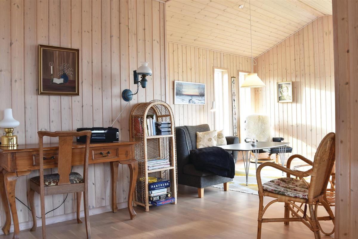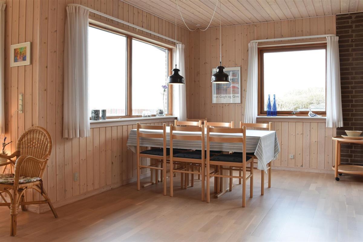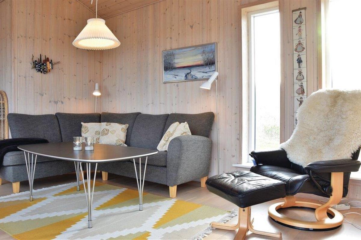 Uniek panoramisch uitzicht en dus een perfect gekozen vakantiehuis! Geniet van het prachtige uitzicht vanuit deze beeldschone omgeving. Het huis is de laatste van een groep voor de Noordzee en slechts enkele minuten lopen van de kust. De inrichting is gezellig. Er zijn twee slaapkamers, een mooie badkamer en een woon-, keukengedeelte met uitzicht op de duinen en de zee. U kunt van dit uitzicht genieten tijdens het eten en vanaf de bankgroep, maar ook vanaf het terras. Op slechts 3,5 km afstand lonkt Søndervig met goede restaurants en sportieve activiteiten. Er is daar een goed netwerk van wandelpaden, u wordt niet gestoord door verkeer. Tijdens een uitstapje naar Ringkøbing ervaart u rustige geplaveide straatjes. Hvide Sande heeft ook de flair van een vissersstadje en een visafslag in de haven. Elke leeftijdsgroep voelt zich thuis aan de Noordzeekust.