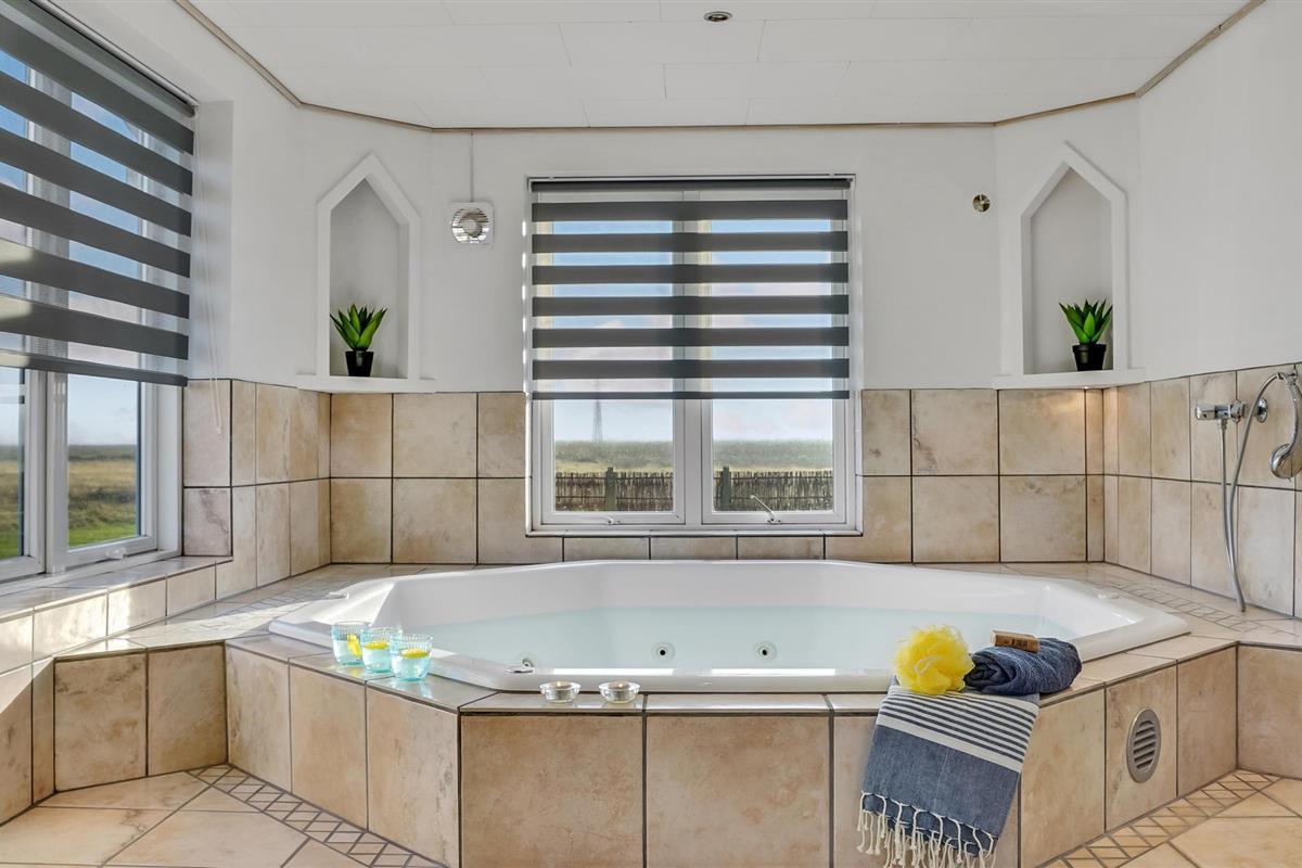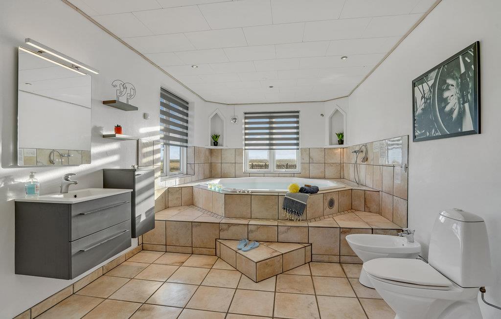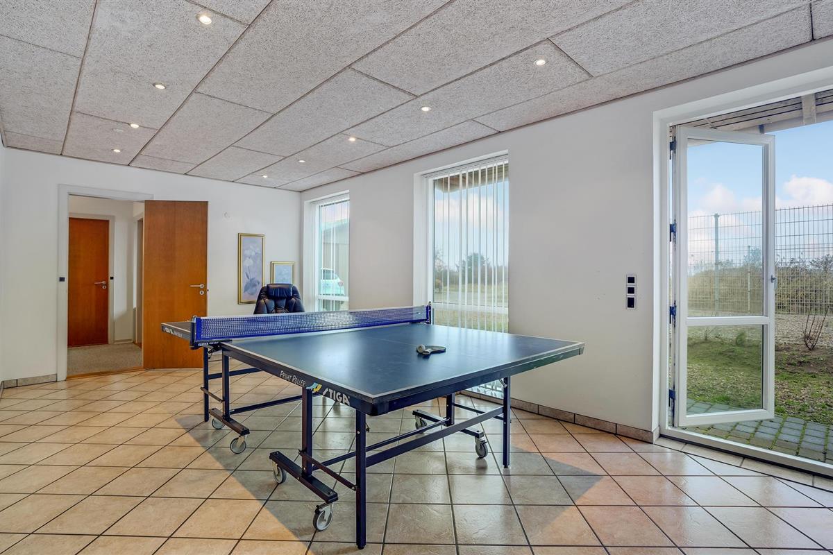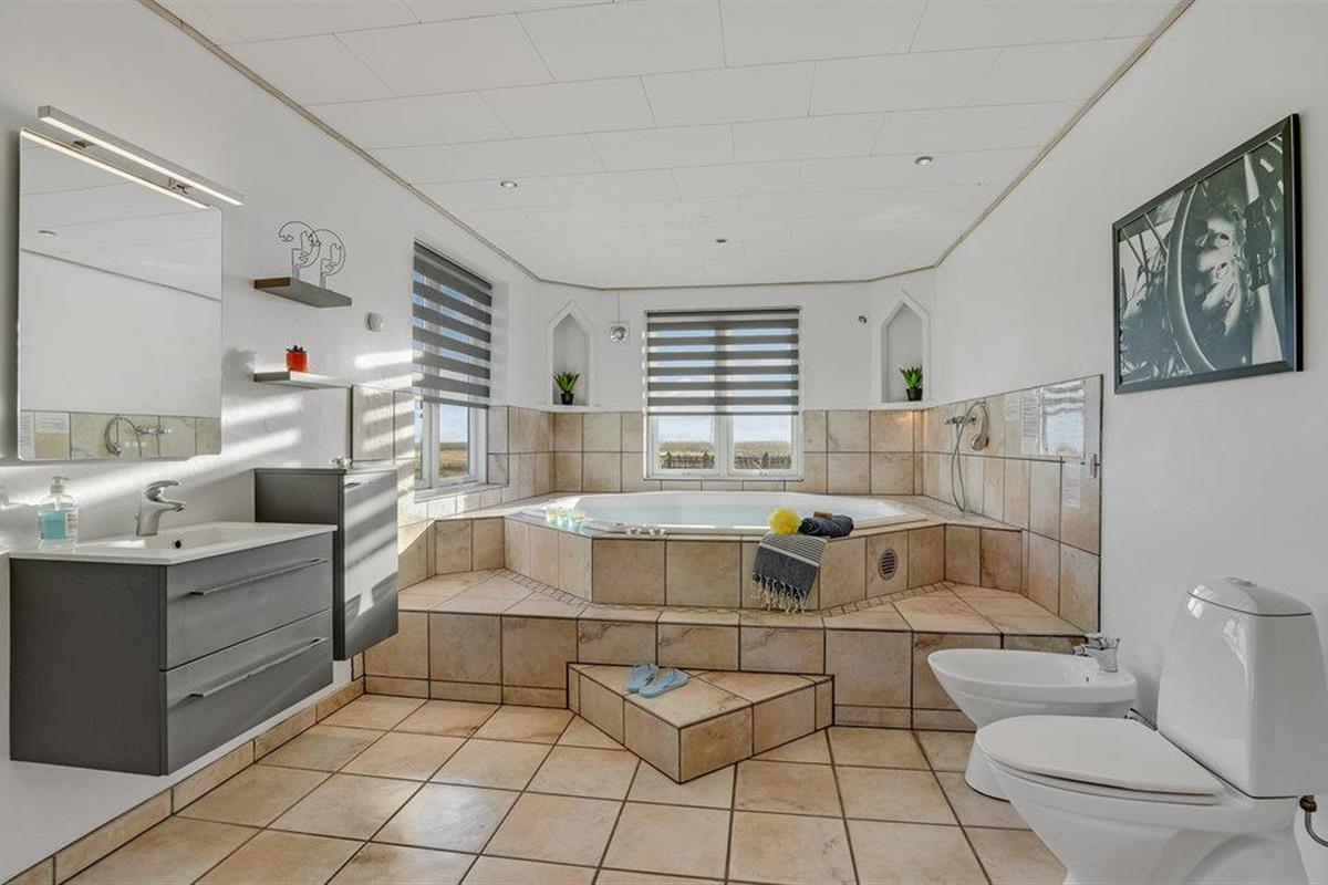 In een rustige omgeving dicht bij het fjord van Ringkøbing ligt dit grote en ongelooflijk mooie gerenoveerde vakantiehuis op een zeer groot natuurgrondstuk. Kwaliteit en ruimtelijkheid kenmerken het goed ingerichte huis. De grote badkamer is uitgerust met een whirlpool voor 7 personen en een grote sauna. Er is ook een grote activiteitenruimte met tafeltennistafel en een klein gezellig hoekje. In het hele huis is grote nadruk gelegd op functionaliteit en interessante details. De open haard kan worden gebruikt als extra warmtebron. Het draagt bij aan de gezellige sfeer in het huis - niet in de laatste plaats op korte en koude dagen. Op warme zomerdagen zult u de voorkeur geven aan het grote terras.