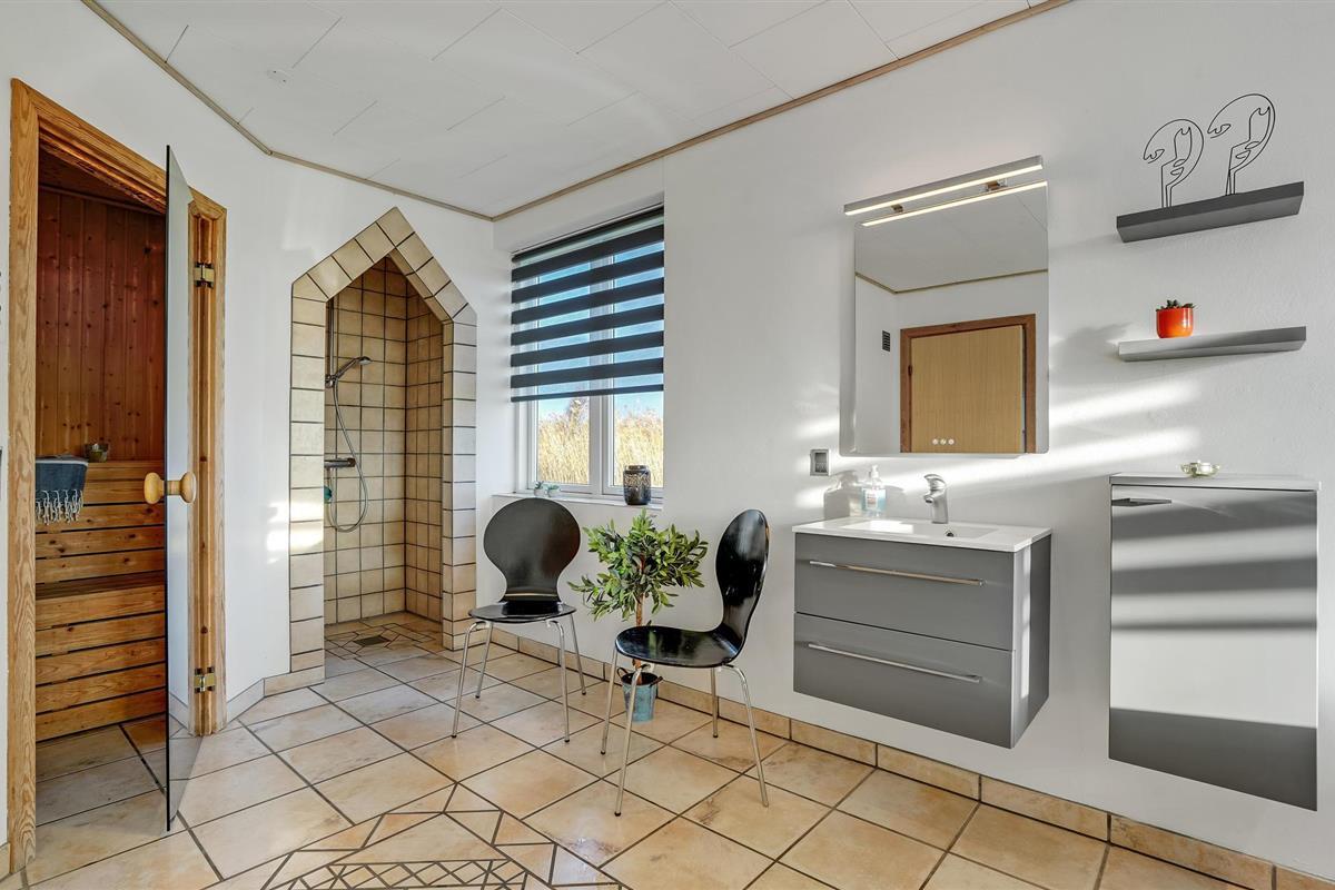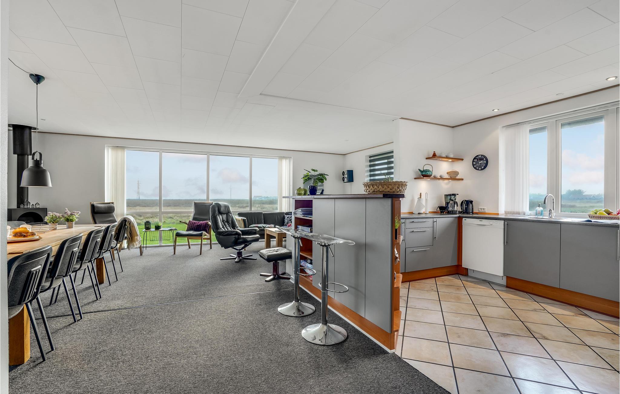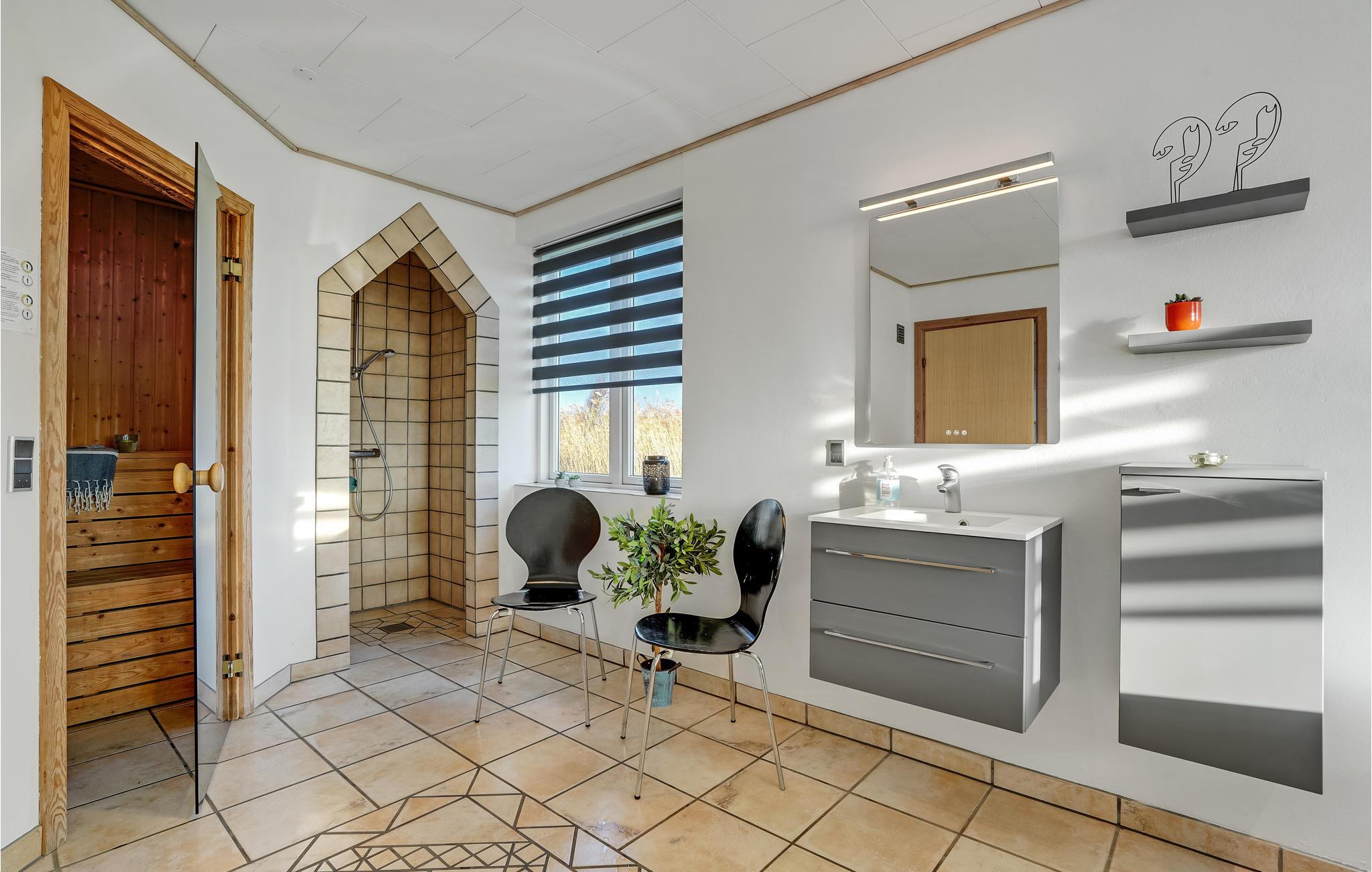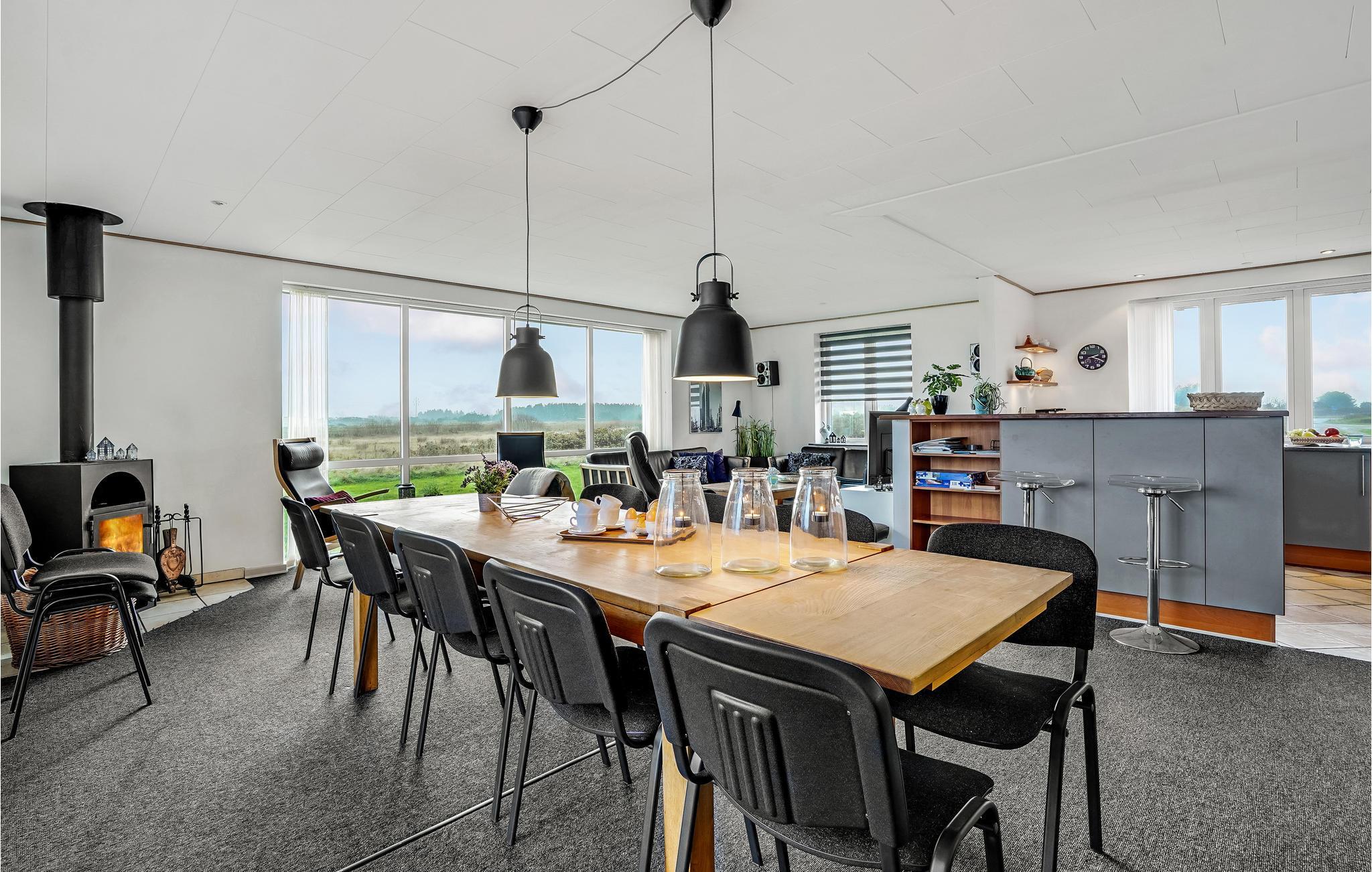 In een rustige omgeving dicht bij het fjord van Ringkøbing ligt dit grote en ongelooflijk mooie gerenoveerde vakantiehuis op een zeer groot natuurgrondstuk. Kwaliteit en ruimtelijkheid kenmerken het goed ingerichte huis. De grote badkamer is uitgerust met een whirlpool voor 7 personen en een grote sauna. Er is ook een grote activiteitenruimte met tafeltennistafel en een klein gezellig hoekje. In het hele huis is grote nadruk gelegd op functionaliteit en interessante details. De open haard kan worden gebruikt als extra warmtebron. Het draagt bij aan de gezellige sfeer in het huis - niet in de laatste plaats op korte en koude dagen. Op warme zomerdagen zult u de voorkeur geven aan het grote terras.