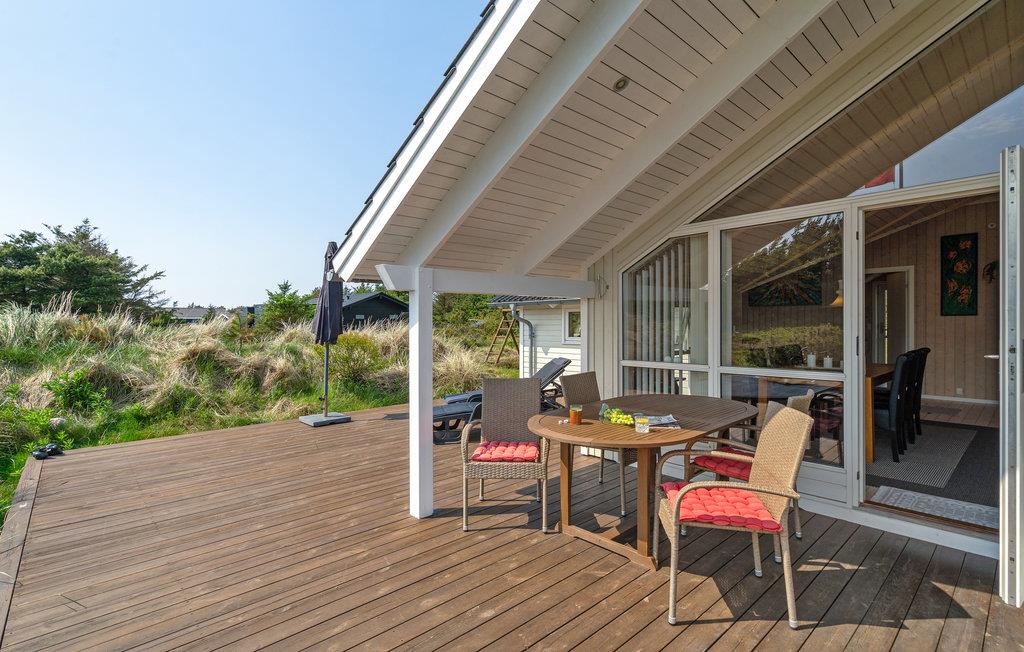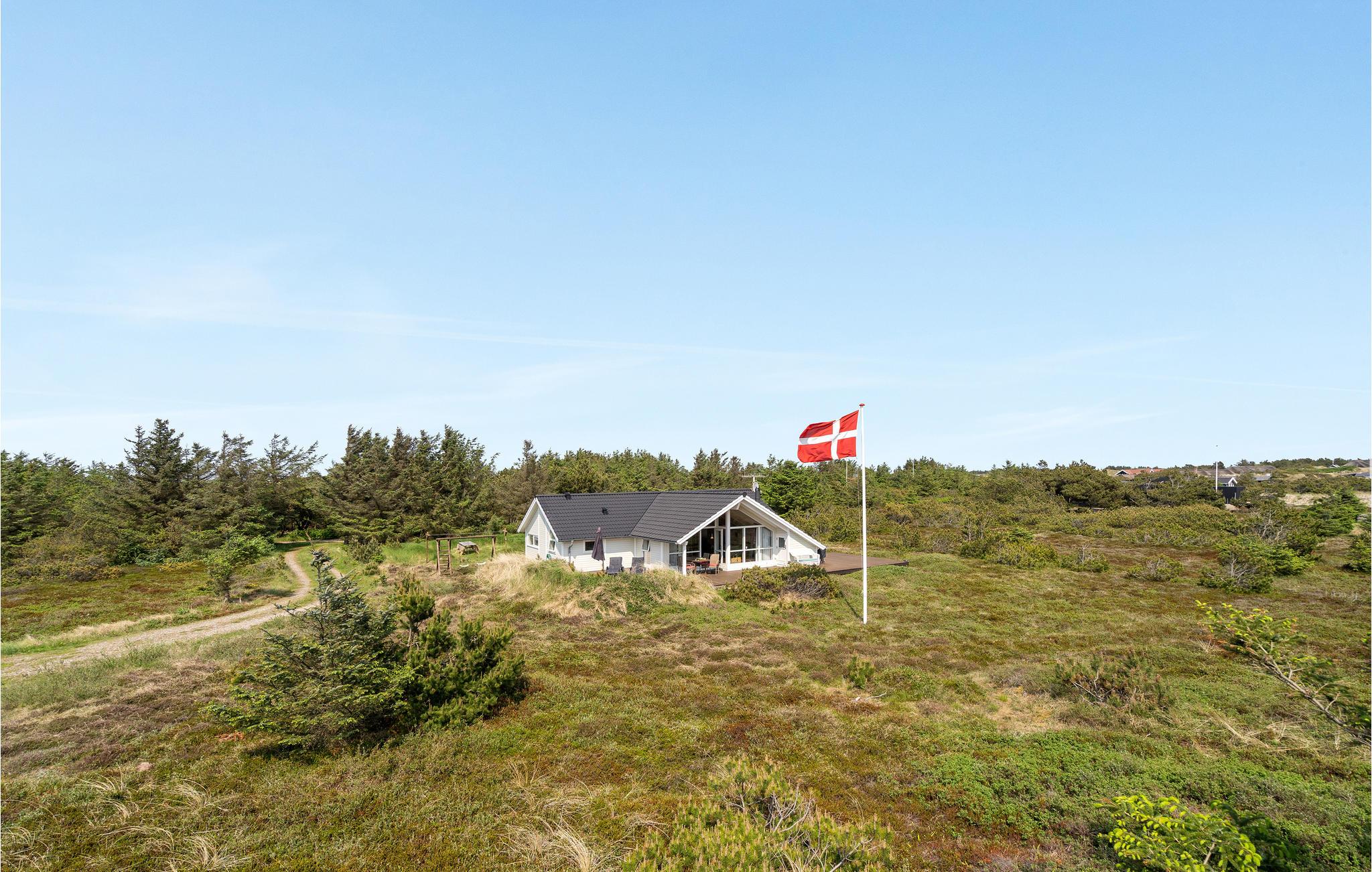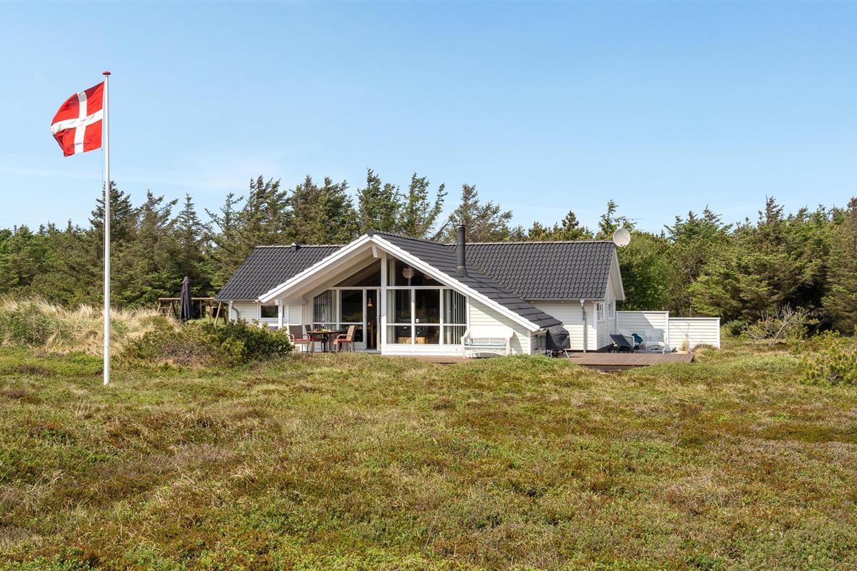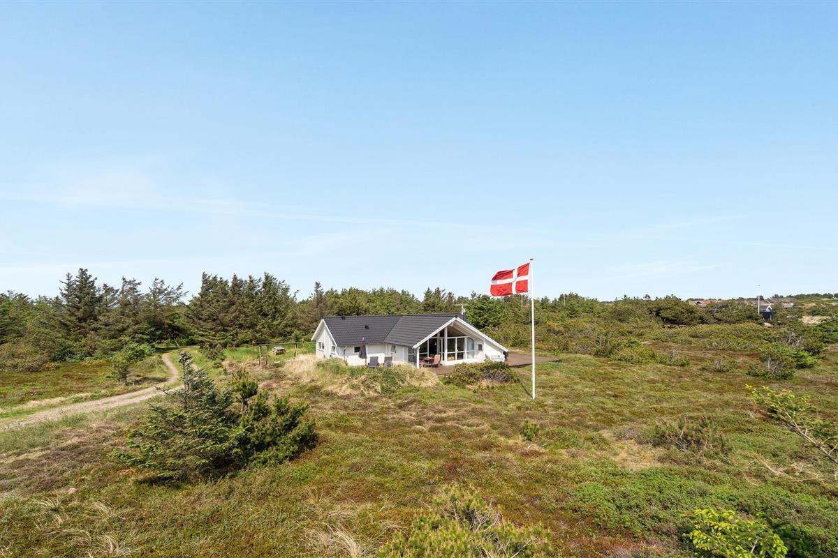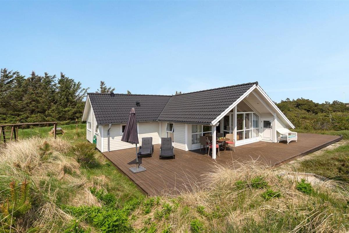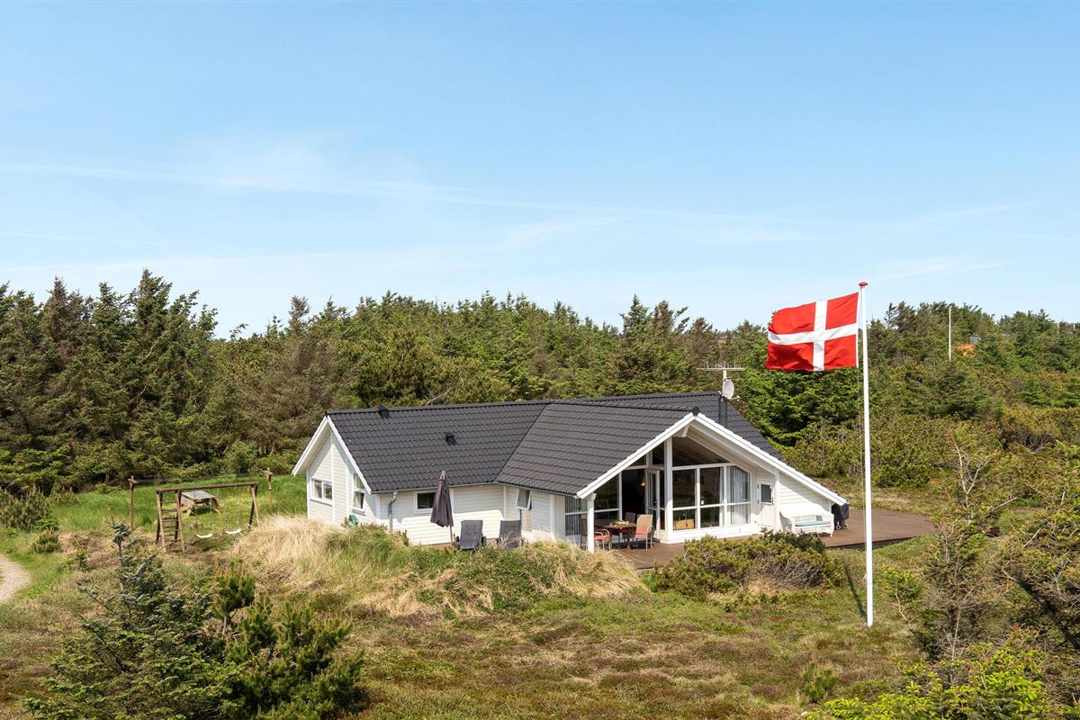 Golvende woning in aantrekkelijk vakantiehuisgebied bij de badplaats Søndervig. Het vakantiehuis bevat alles wat u zich kunt wensen voor een geslaagd verblijf. Het is niet alleen ruim, het heeft ook een mooie keuken-woonkamer en een terras ervoor, van waaruit u altijd uitzicht heeft op de heide en de duinen. Eén badkamer is uitgerust met een sauna en whirlpool en alle slaapkamers hebben goede tweepersoonsbedden. Er is ook een acoven. U kunt ook fietsen naar Ringkøbing en Hvide Sande. Om te vissen kunt u kiezen uit verschillende vismeren of de pier in Hvide Sande proberen.