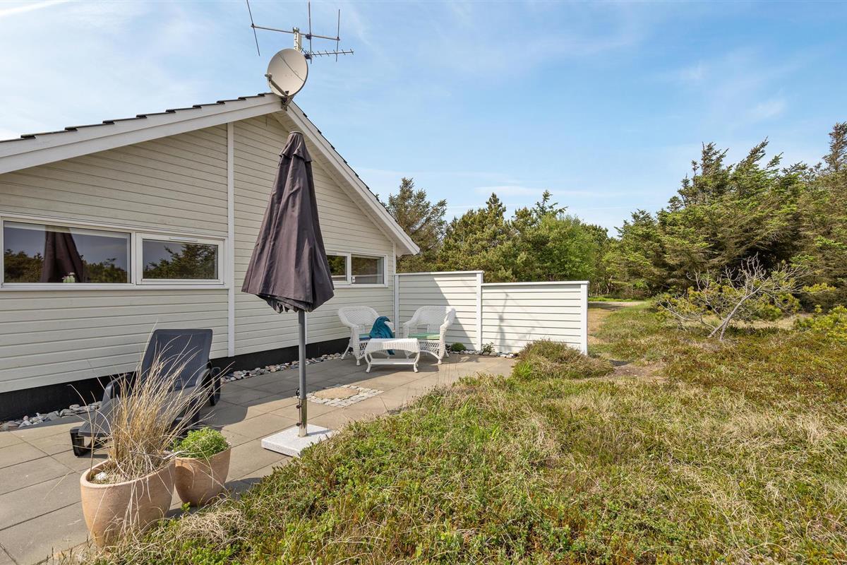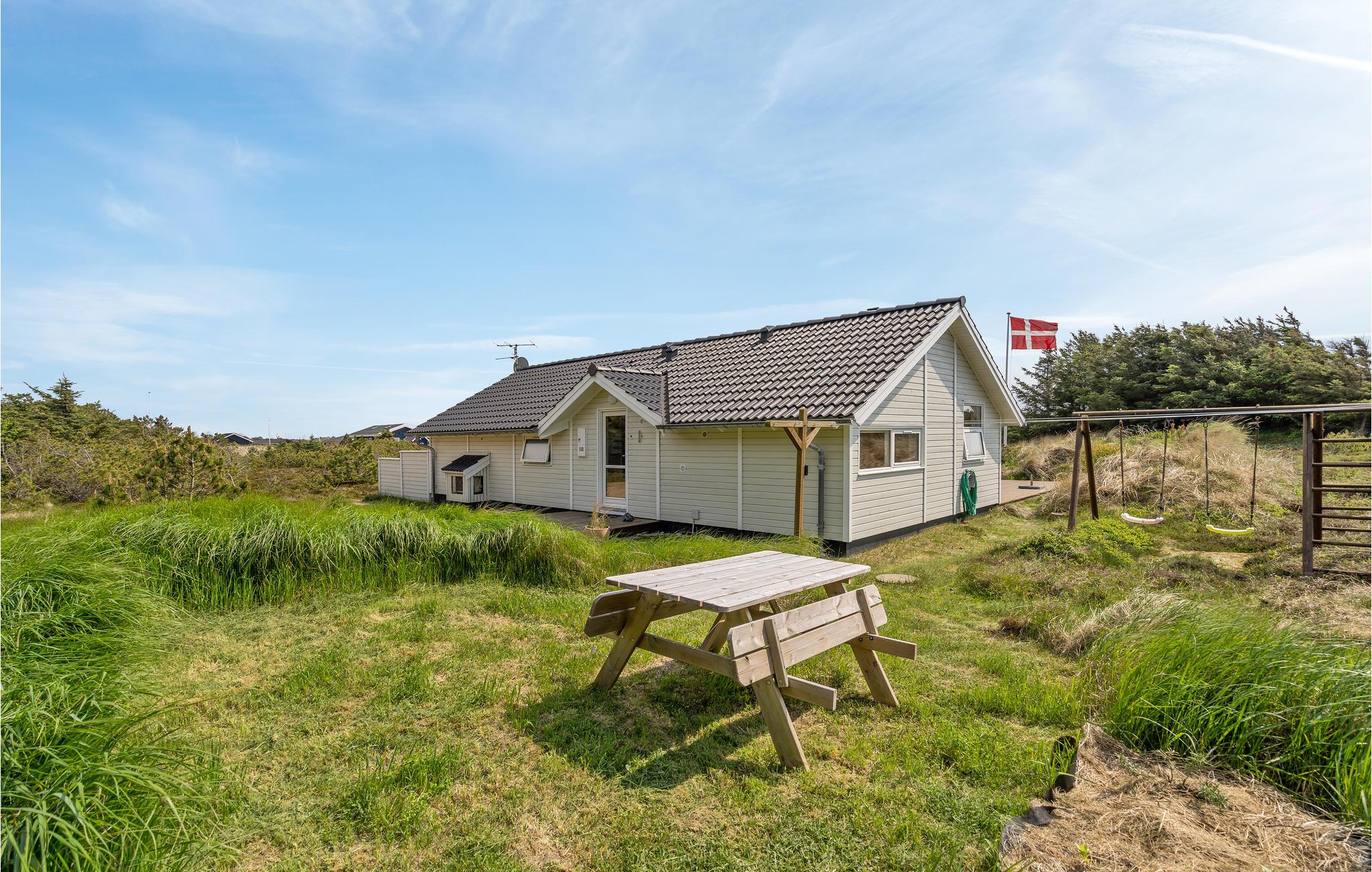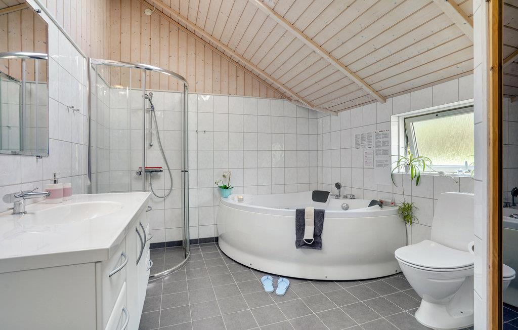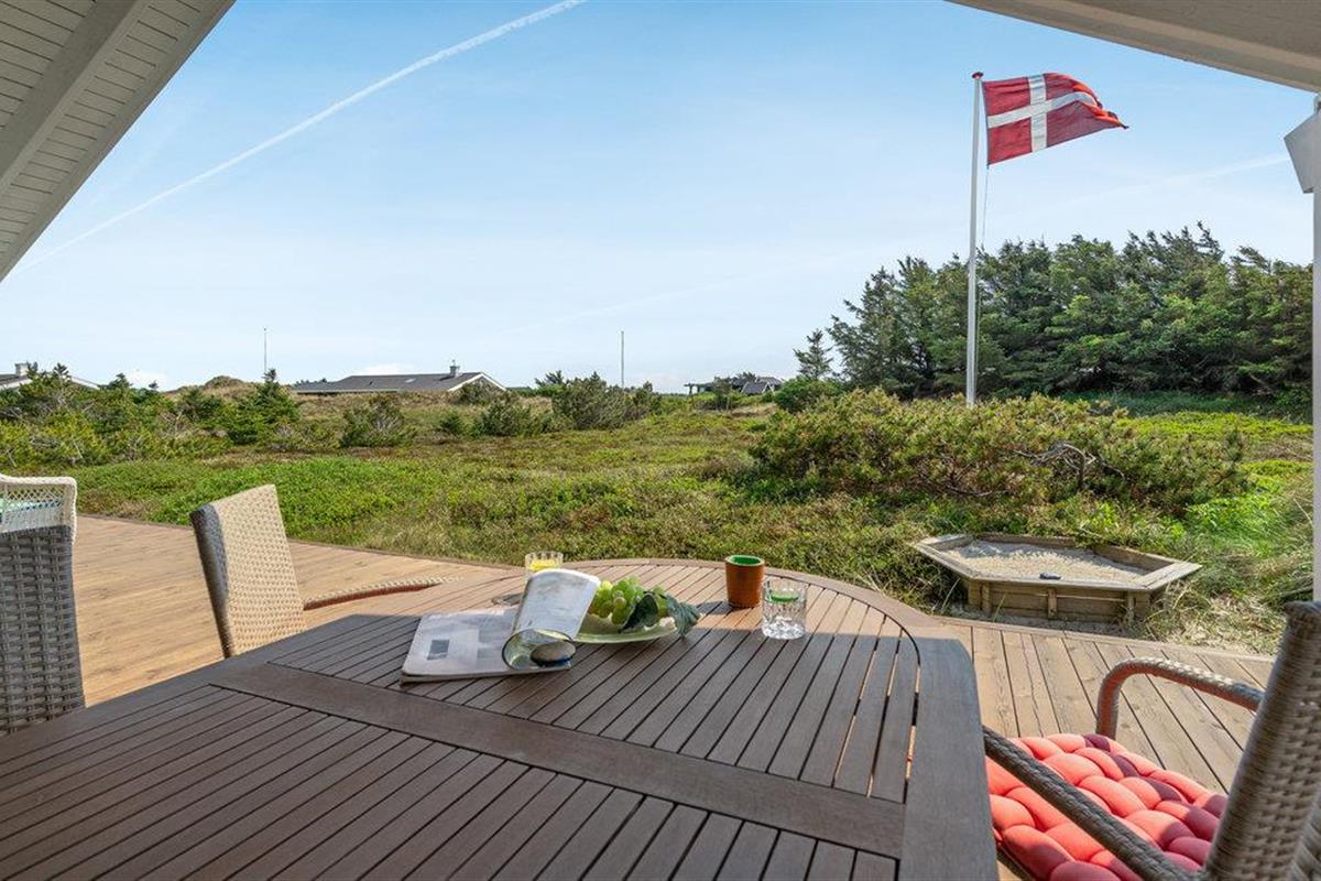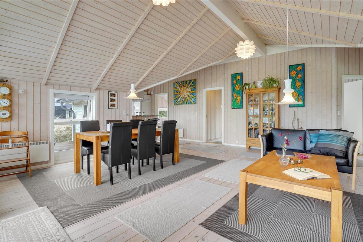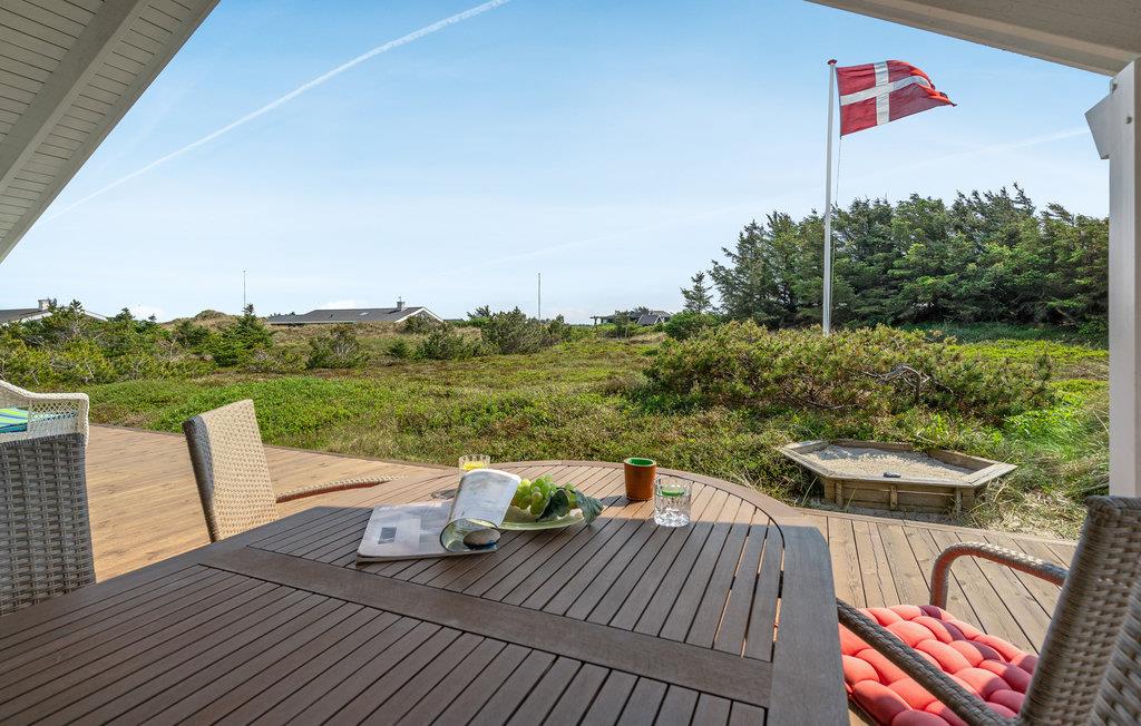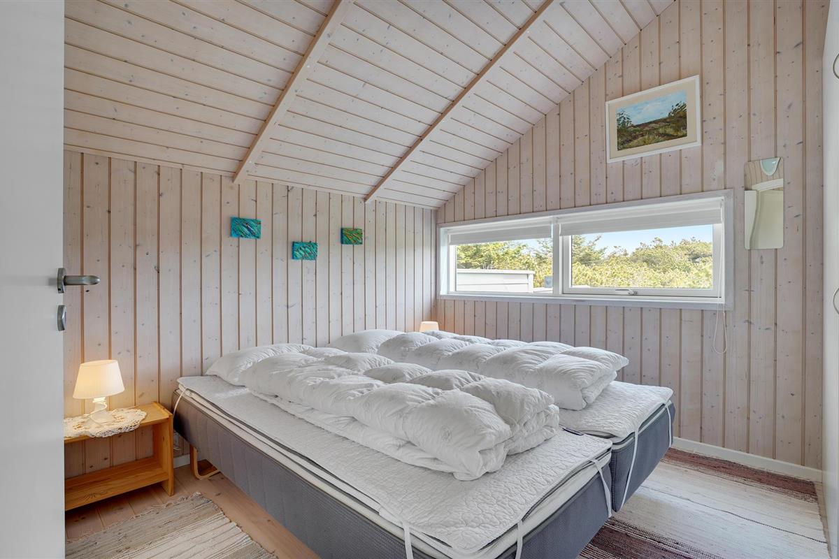 Golvende woning in aantrekkelijk vakantiehuisgebied bij de badplaats Søndervig. Het vakantiehuis bevat alles wat u zich kunt wensen voor een geslaagd verblijf. Het is niet alleen ruim, het heeft ook een mooie keuken-woonkamer en een terras ervoor, van waaruit u altijd uitzicht heeft op de heide en de duinen. Eén badkamer is uitgerust met een sauna en whirlpool en alle slaapkamers hebben goede tweepersoonsbedden. Er is ook een acoven. U kunt ook fietsen naar Ringkøbing en Hvide Sande. Om te vissen kunt u kiezen uit verschillende vismeren of de pier in Hvide Sande proberen.