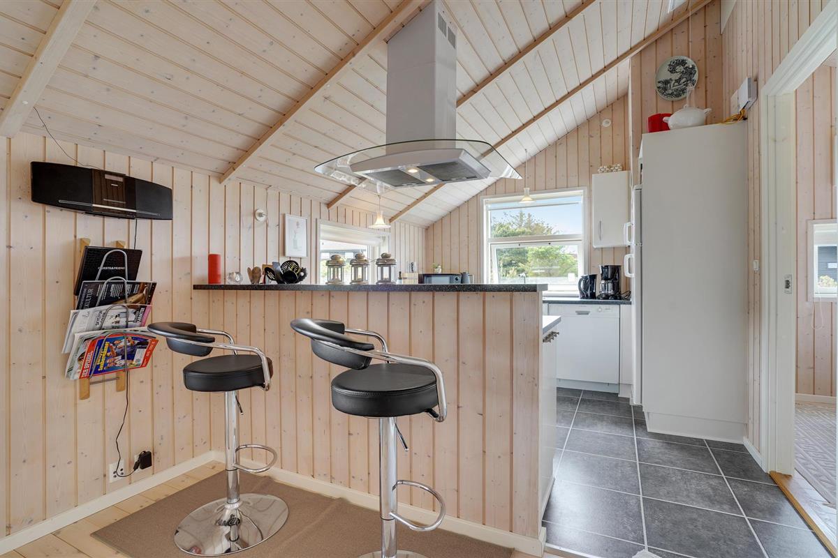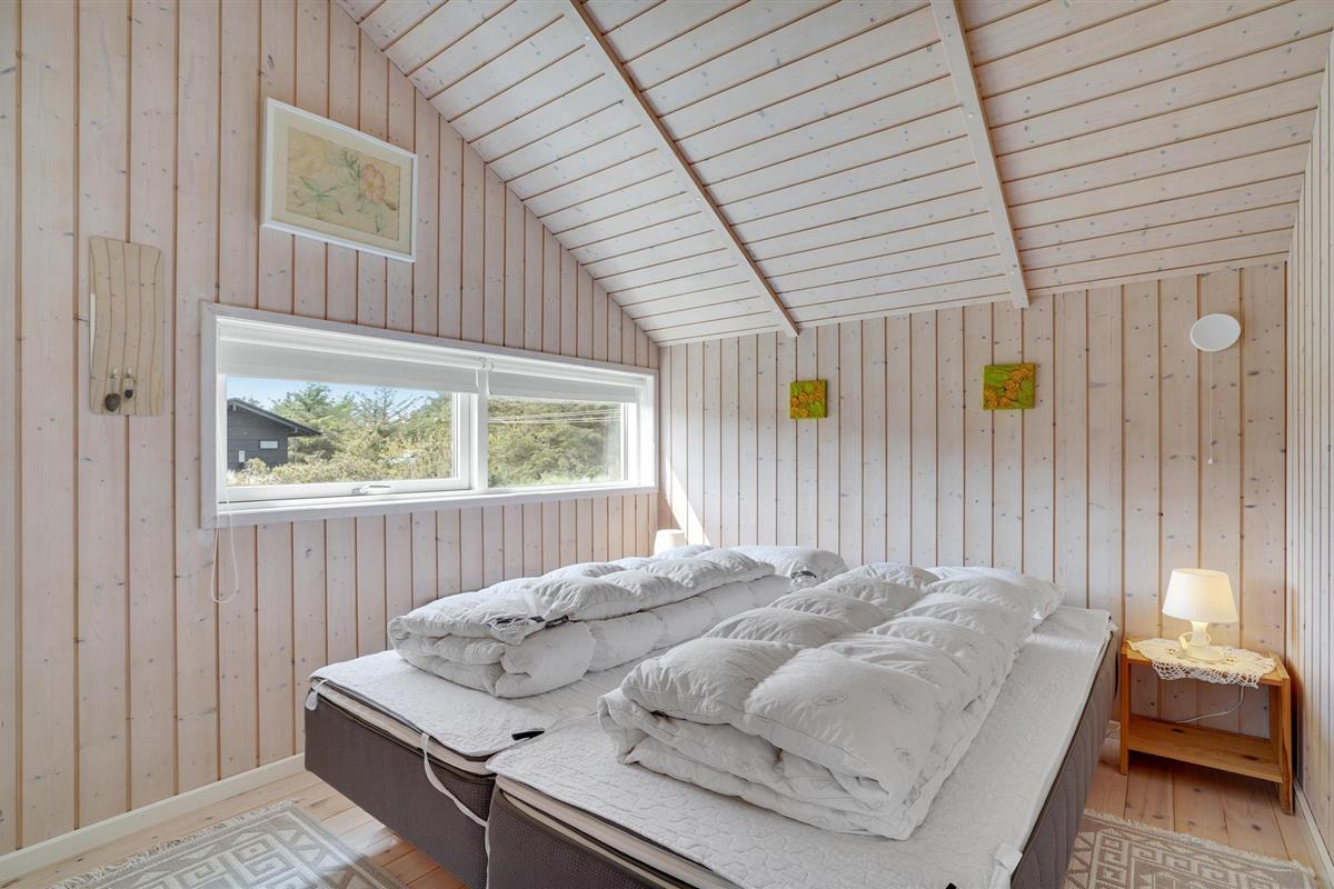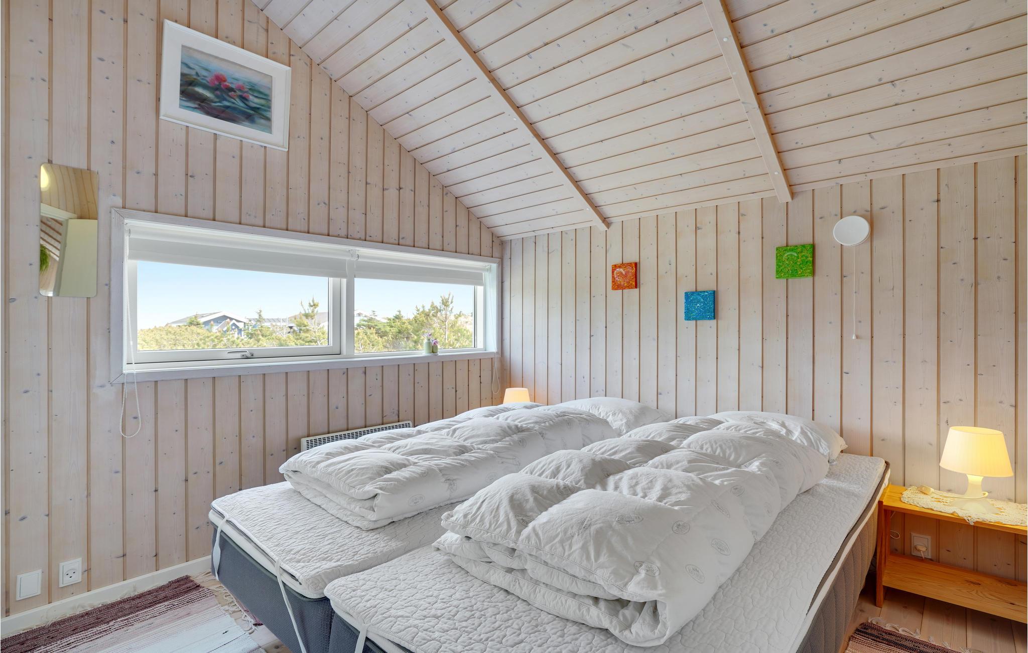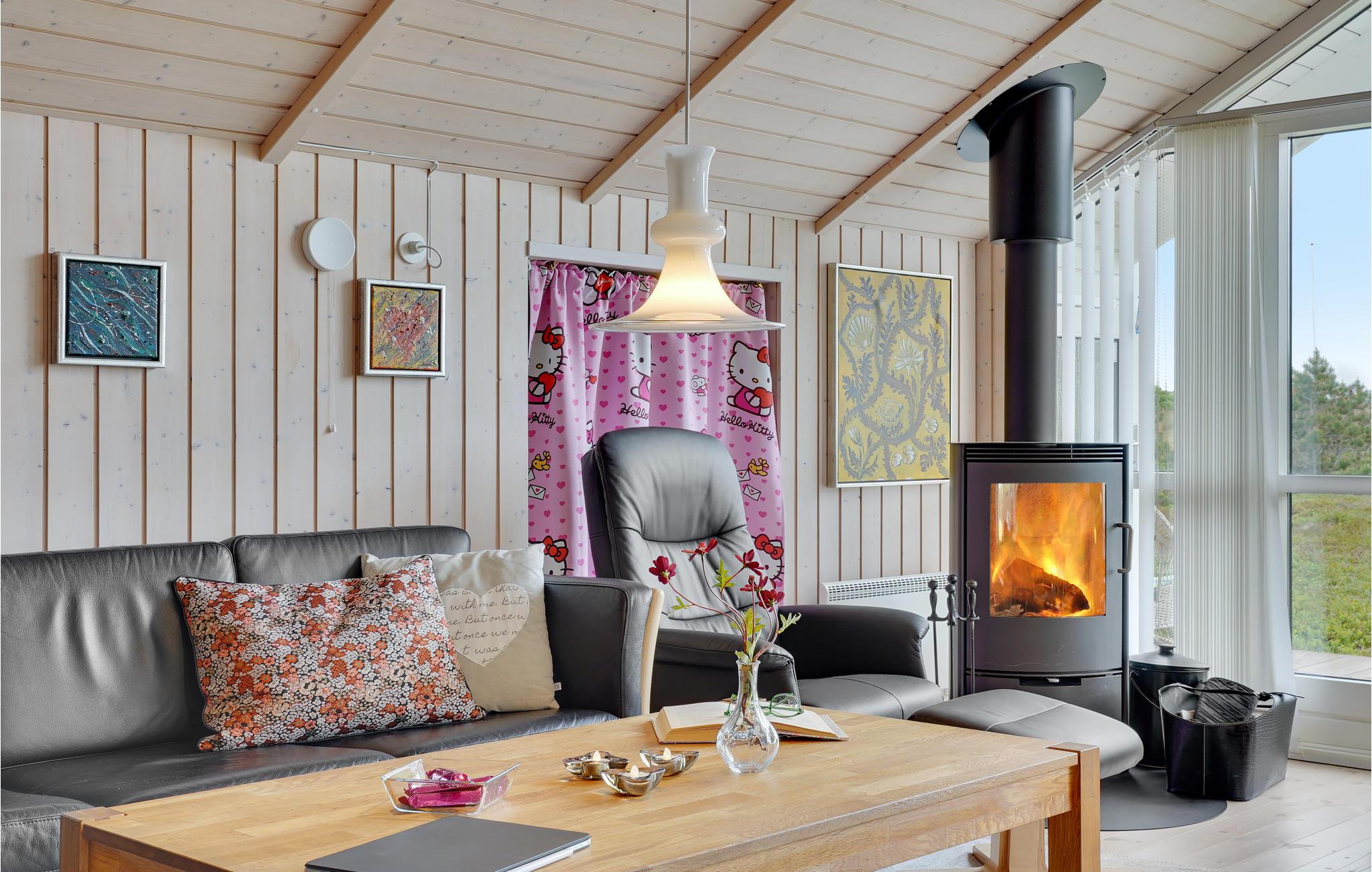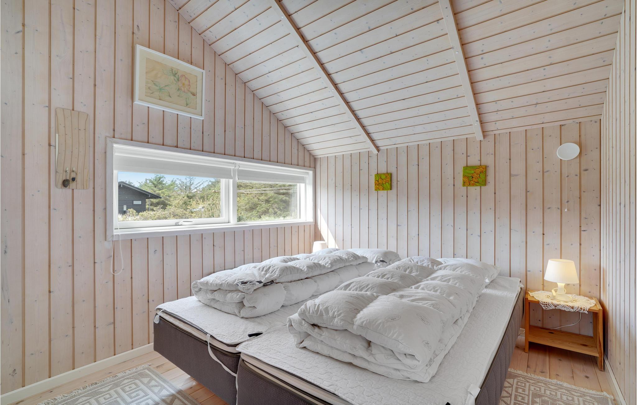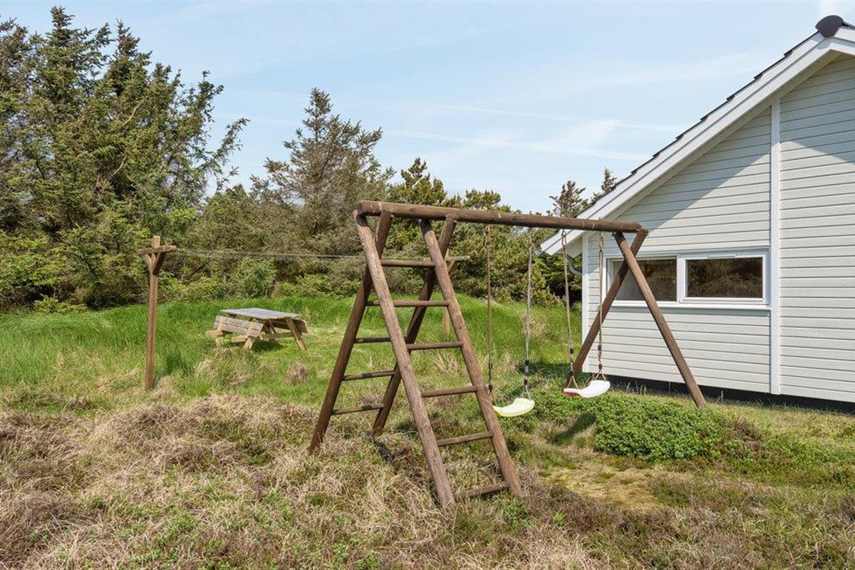 Golvende woning in aantrekkelijk vakantiehuisgebied bij de badplaats Søndervig. Het vakantiehuis bevat alles wat u zich kunt wensen voor een geslaagd verblijf. Het is niet alleen ruim, het heeft ook een mooie keuken-woonkamer en een terras ervoor, van waaruit u altijd uitzicht heeft op de heide en de duinen. Eén badkamer is uitgerust met een sauna en whirlpool en alle slaapkamers hebben goede tweepersoonsbedden. Er is ook een acoven. U kunt ook fietsen naar Ringkøbing en Hvide Sande. Om te vissen kunt u kiezen uit verschillende vismeren of de pier in Hvide Sande proberen.