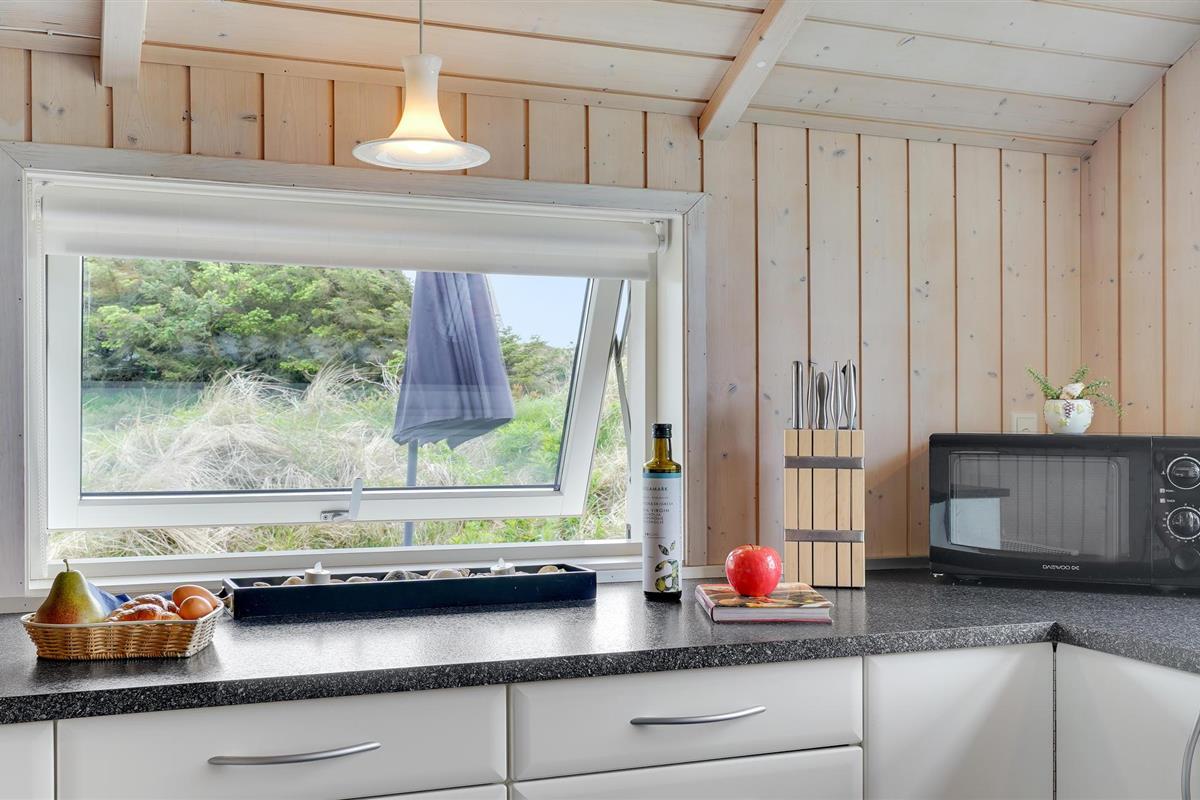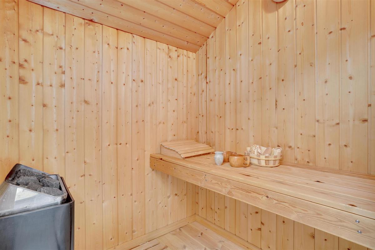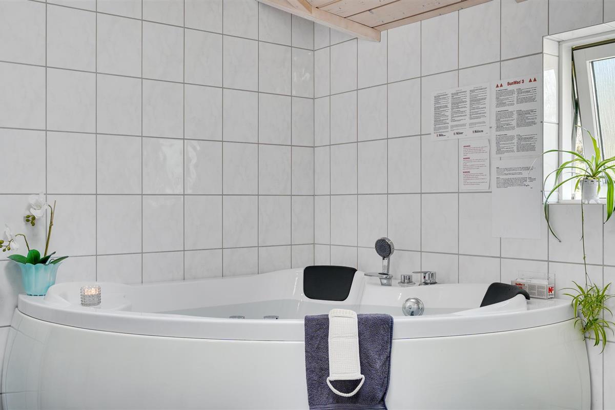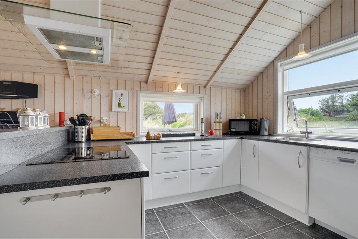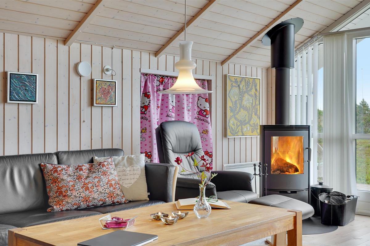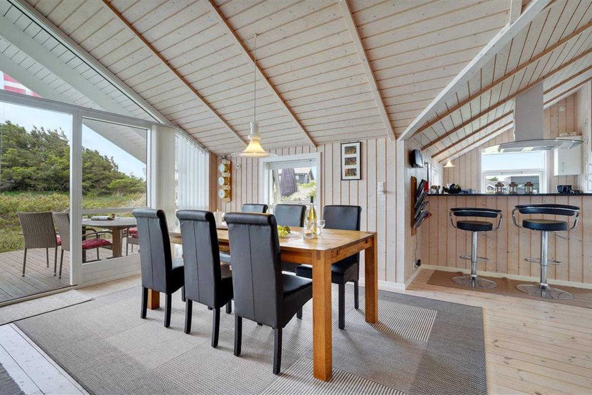 Golvende woning in aantrekkelijk vakantiehuisgebied bij de badplaats Søndervig. Het vakantiehuis bevat alles wat u zich kunt wensen voor een geslaagd verblijf. Het is niet alleen ruim, het heeft ook een mooie keuken-woonkamer en een terras ervoor, van waaruit u altijd uitzicht heeft op de heide en de duinen. Eén badkamer is uitgerust met een sauna en whirlpool en alle slaapkamers hebben goede tweepersoonsbedden. Er is ook een acoven. U kunt ook fietsen naar Ringkøbing en Hvide Sande. Om te vissen kunt u kiezen uit verschillende vismeren of de pier in Hvide Sande proberen.