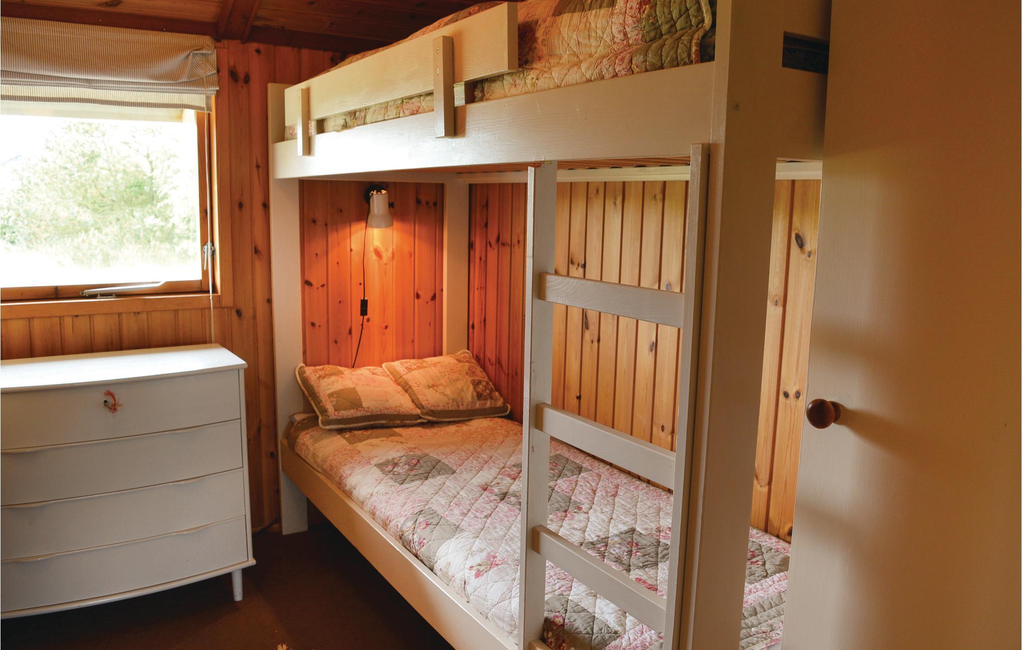 Gezellig vakantiehuis op een mooi, groot duingrondstuk. U beschikt over een gezellige woonkeuken met houtkachel en een terras ervoor. Er zijn drie slaapkamers en een badkamer. Het huis is bijzonder uitnodigend voor een gezellig verblijf. In de buurt is de badplaats Søndervig, ontdek restaurants, winkels met gespecialiseerde aanbiedingen, kruidenierswinkels, fietsverhuur en bowlingbanen. In de natuur vindt u duinen, zee, fjord en vele goed onderhouden paden om te wandelen, joggen en fietsen. Een direct wandelpad gaat van het huis naar de Noordzee. Als de hengel tot uw vakantiebagage behoort, vindt u het Søndervig Put & Take vismeer vlakbij het huis. Faciliteiten bij het meer zijn onder andere een fileerplaats, tafels, banken en een speeltuin. Het Rinkøbing Fjord kan worden aanbevolen voor windsurfen. Tussen Ringkøbing en Søndervig is er een parkeerplaats met WC, een goed startpunt om te surfen. Als u thuiskomt van een actieve vakantiedag, geniet dan van het knapperend vuur in de houtkachel.