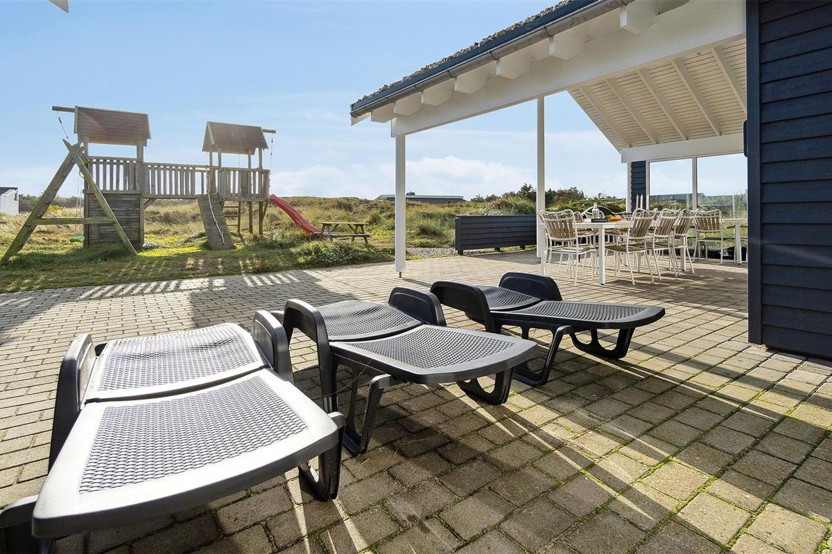 Vlakbij de badplaats Søndervig, waar veel aanbiedingen zijn en een heerlijk strand, wacht dit prachtige poolhouse op u. Binnen vindt u alle denkbare comfort en veel luxe. En het vakantiehuis is zo groot dat het ook zeer geschikt is voor een gezamenlijke vakantie van meerdere gezinnen. De slaapkamers zijn verdeeld over 2 ruimtes met eigen badkamers. Ook zijn er 2 grote slaapzolders met ruimte voor 4 personen. De plafonds zijn geluiddicht, dit zorgt ervoor dat u zich in het hele huis comfortabel kunt verspreiden. In de indrukwekkende zwembadkamer bevindt zich een groot zwembad met glijbaan, een whirlpool voor 4 personen en een grote sauna. In de speelkamer vindt u biljart, tafeltennis, darts, tafelvoetbal, PS3 en een Wii. In de keuken staan 2 fornuizen en 2 vaatwassers en 2 koelkasten en vriezers. Meerdere koks kunnen hier dus vakantiegerechten bereiden. Er is ook een bar voor koele drankjes. Een gedeeltelijk overdekt terras om van het Deense zomerweer te genieten en een schommel en zandbak zijn ook aanwezig.