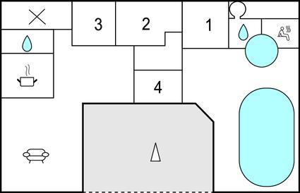 Badkamer (nr. 1) - Toilet: warm en koud water. Douche