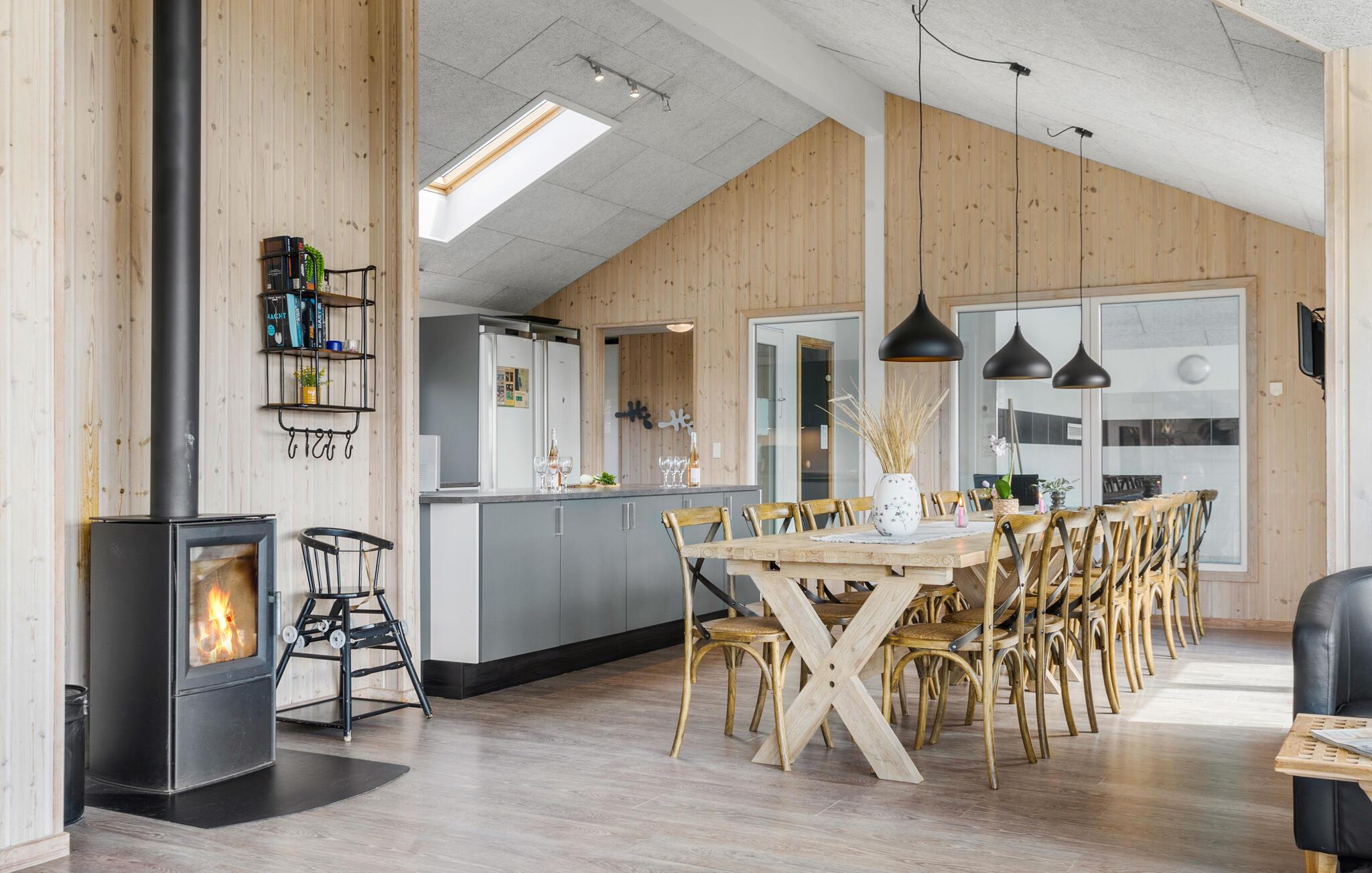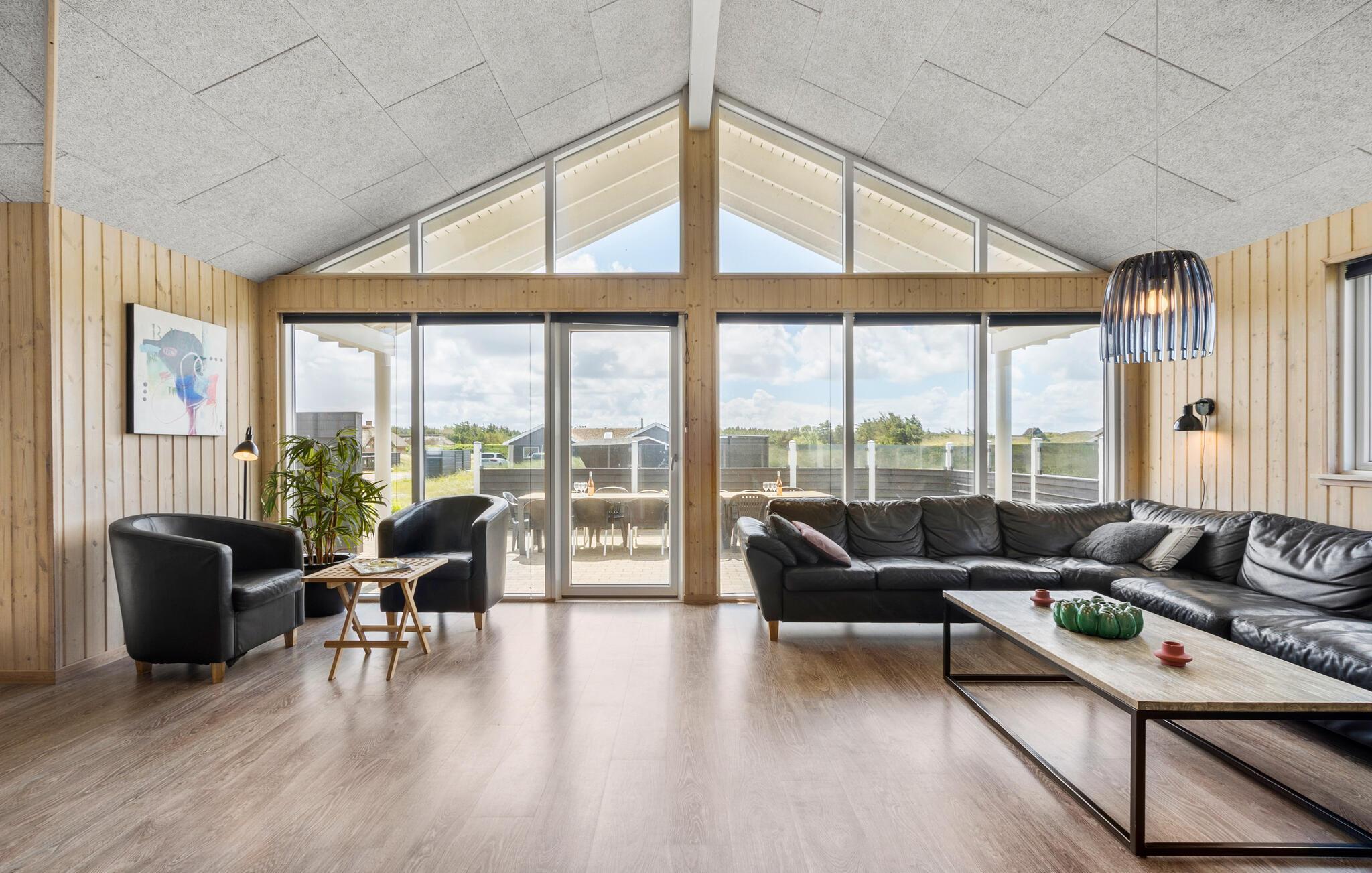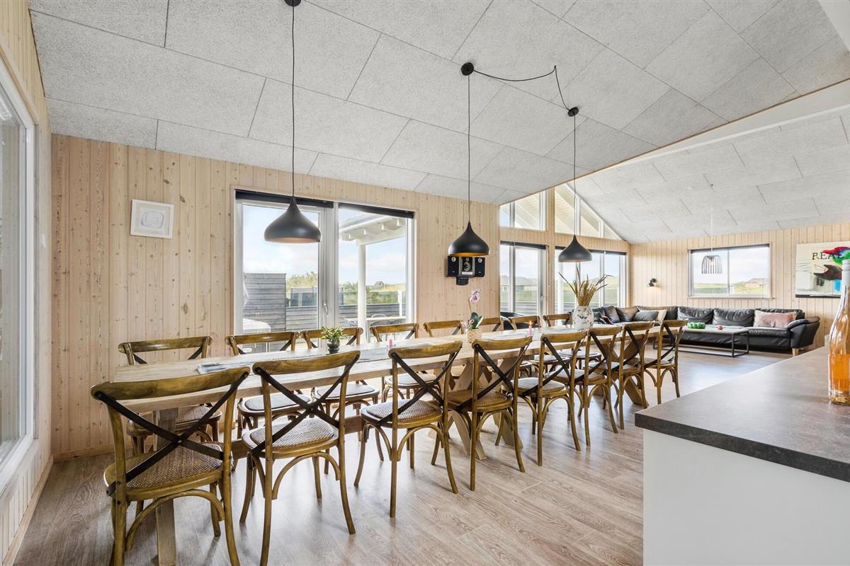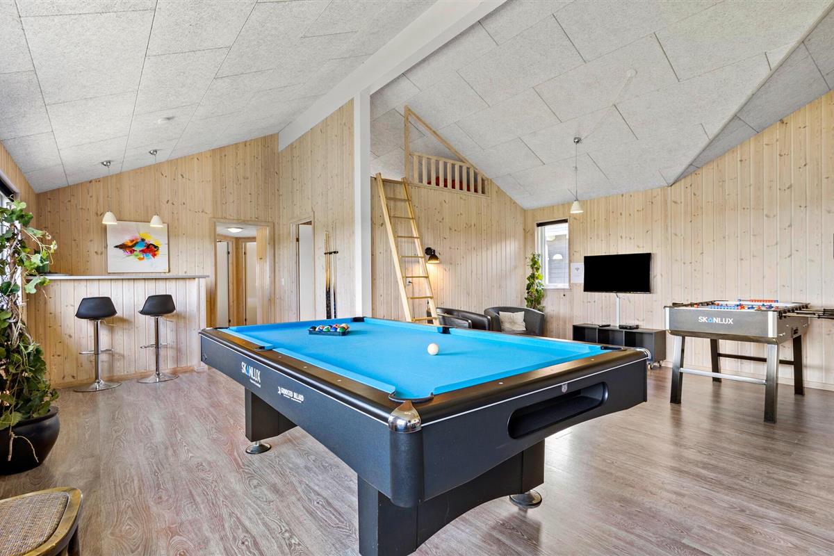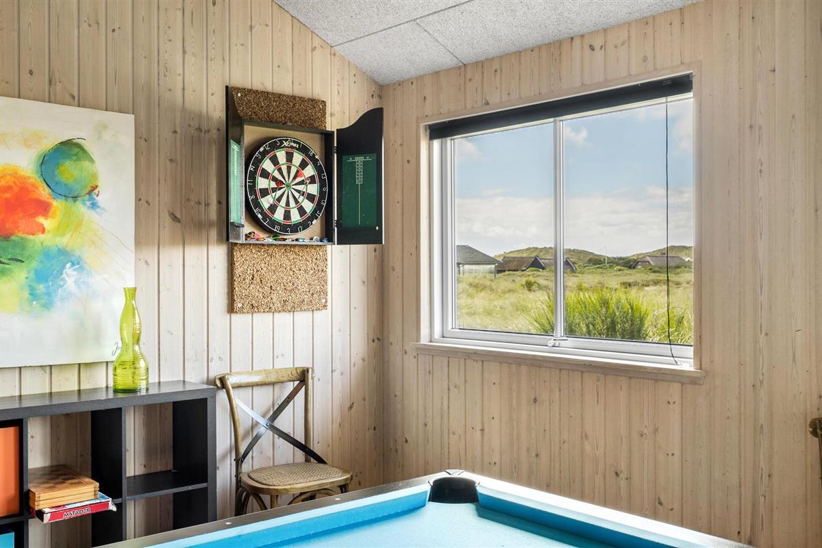 Vlakbij de Noordzee en in een prachtig natuurgebied ligt dit grote vakantiehuis met ruimte voor 18 personen. Het huis heeft zeven goede slaapkamers en een vide, drie badkamers, een grote, lichte en open keuken en een grote activiteitenruimte met zwembad, whirlpool en sauna. De ligging van het huis tussen Søndervig en Hvide Sande biedt voor elk wat wils, of je nu zin hebt in een actieve vakantie of liever een tandje terugschakelt en ontspant. Er zijn veel mogelijkheden: Bowlen, minigolf, golf, surfen, vissen, zwemmen, fitness, fietsen en joggen of lange wandelingen door de natuur, ijs eten met het gezin, spelen op het strand of sightseeing.